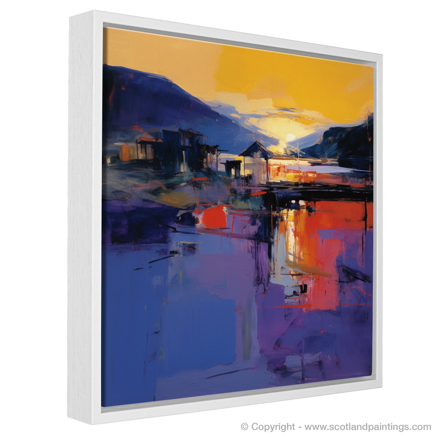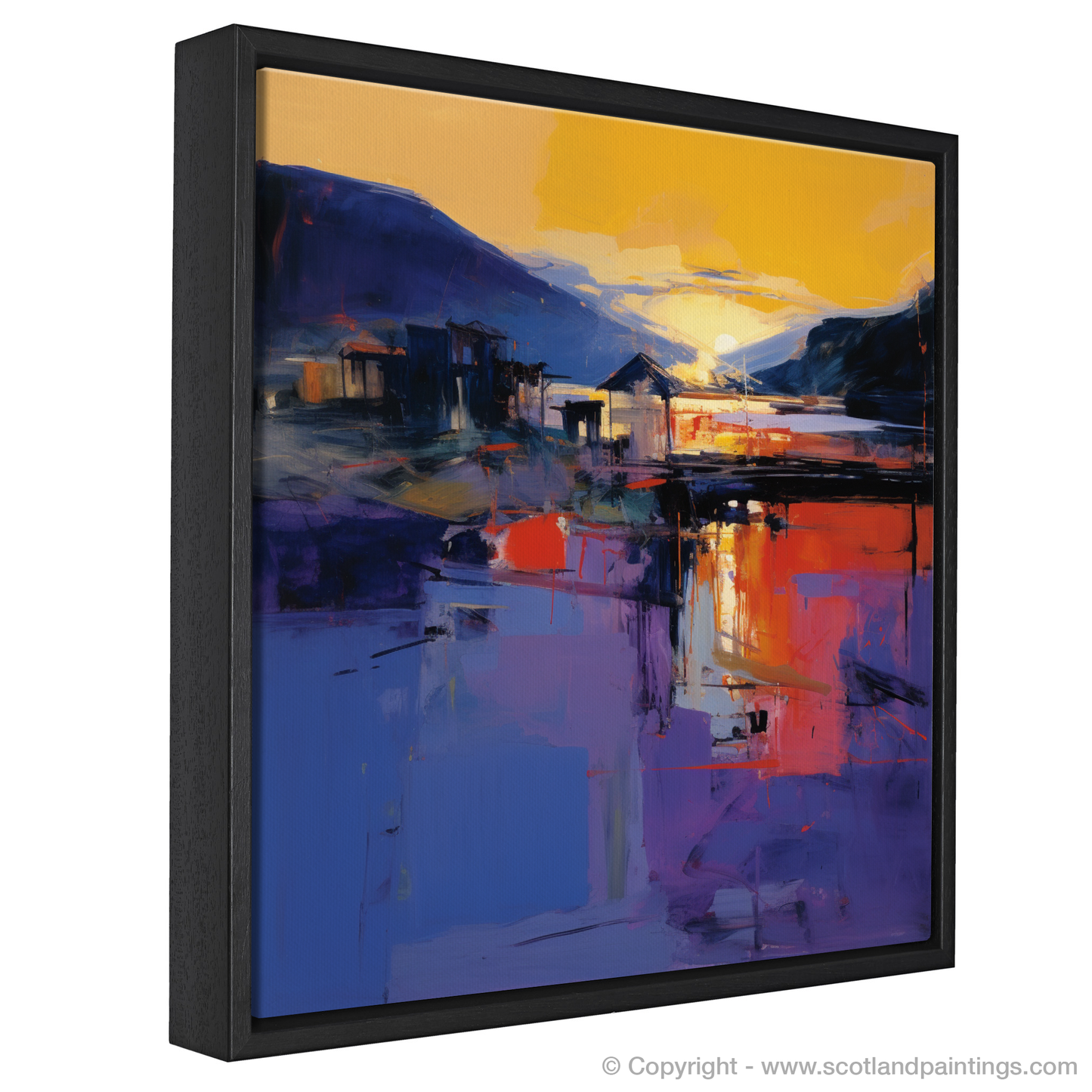 Immerse yourself in the breathtaking vibrancy of dusk as it cascades over Isleornsay Harbour, captured here in an evocative blend of emotion and colour. Each brushstroke on this exquisite print is a testament to the essence of Abstract Expressionism, where bold hues and dynamic shapes come together to evoke the tranquil yet spirited atmosphere of the Scottish waterside.