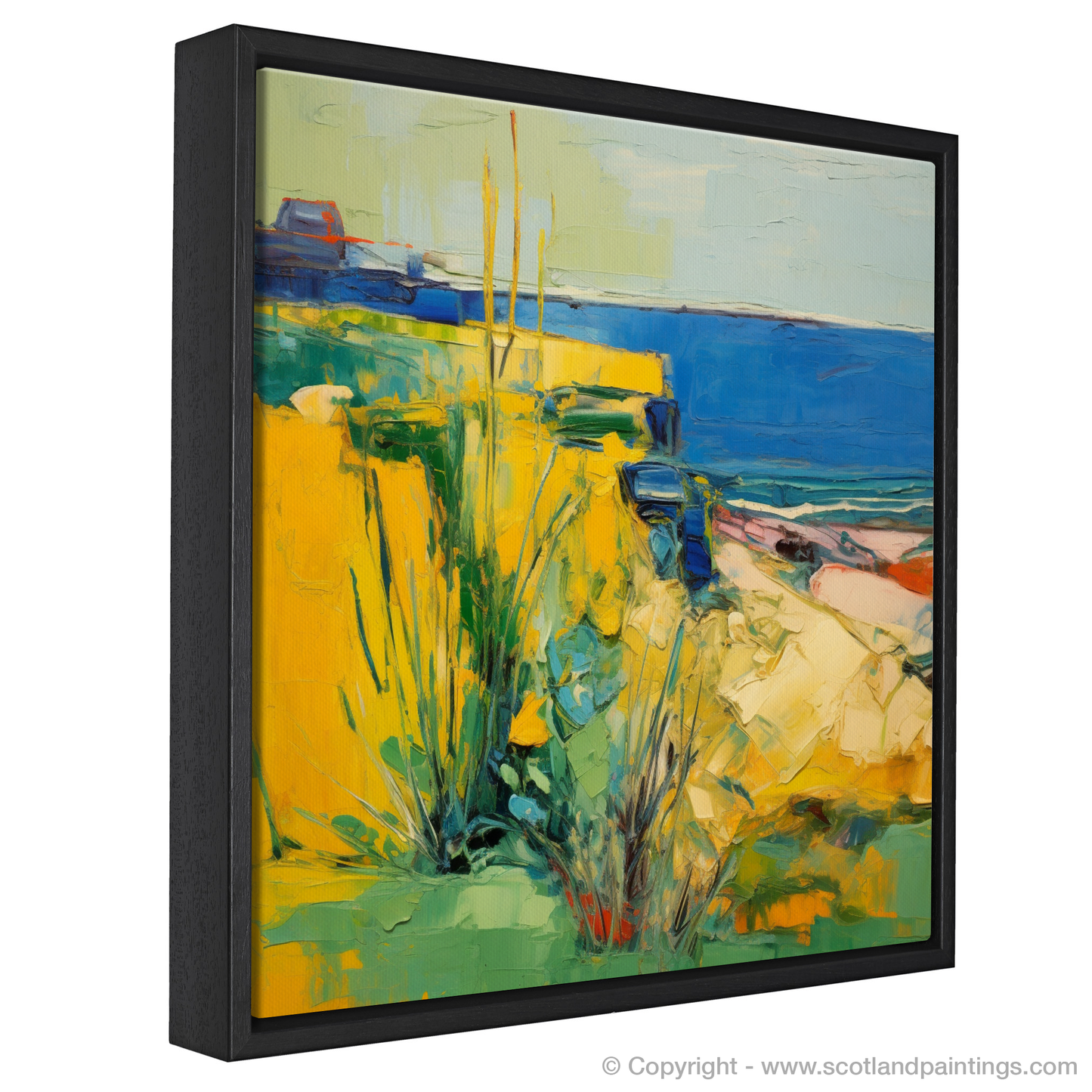 Bask in the vibrant hues and textured strokes of a piece that captures the wild essence of Golden samphire blanketing the dramatic cliffs of Berwick-upon-Tweed. This interpretative work, nestled within the 'Scottish Flowers and Flora' collection, evokes the unbridled spirit of Abstract Expressionism, transporting the viewer to the gusty shores where rugged nature meets the artistic soul.