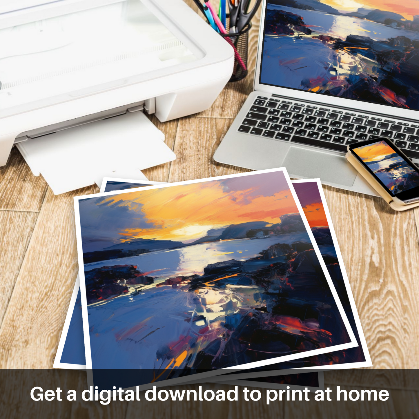 Adding this print to your space is a promise of perpetual inspiration, a window to a world of abstract serenity where the Scottish coastline meets the limitless sky at that magical hour of dusk.