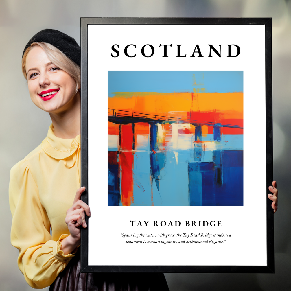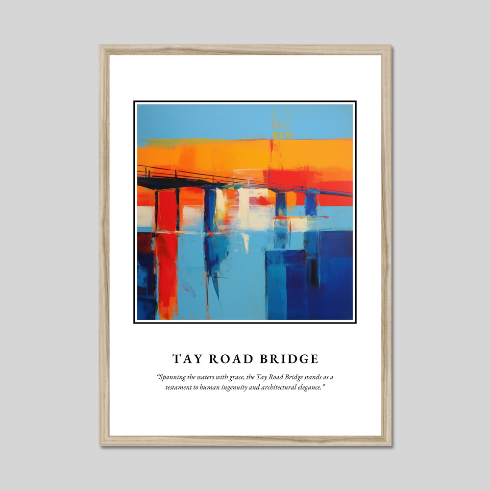 Below the painting, the eloquent quote “Spanning the waters with grace, the Tay Road Bridge stands as a testament to human ingenuity and architectural elegance” encapsulates the bridge’s significance both in reality and within the artwork.