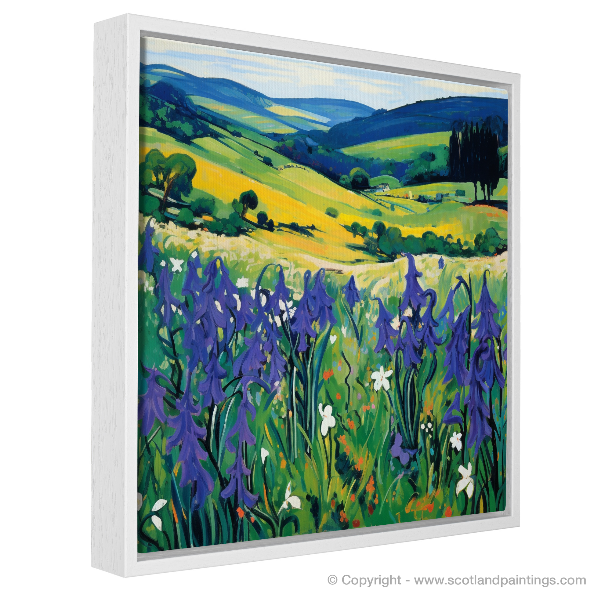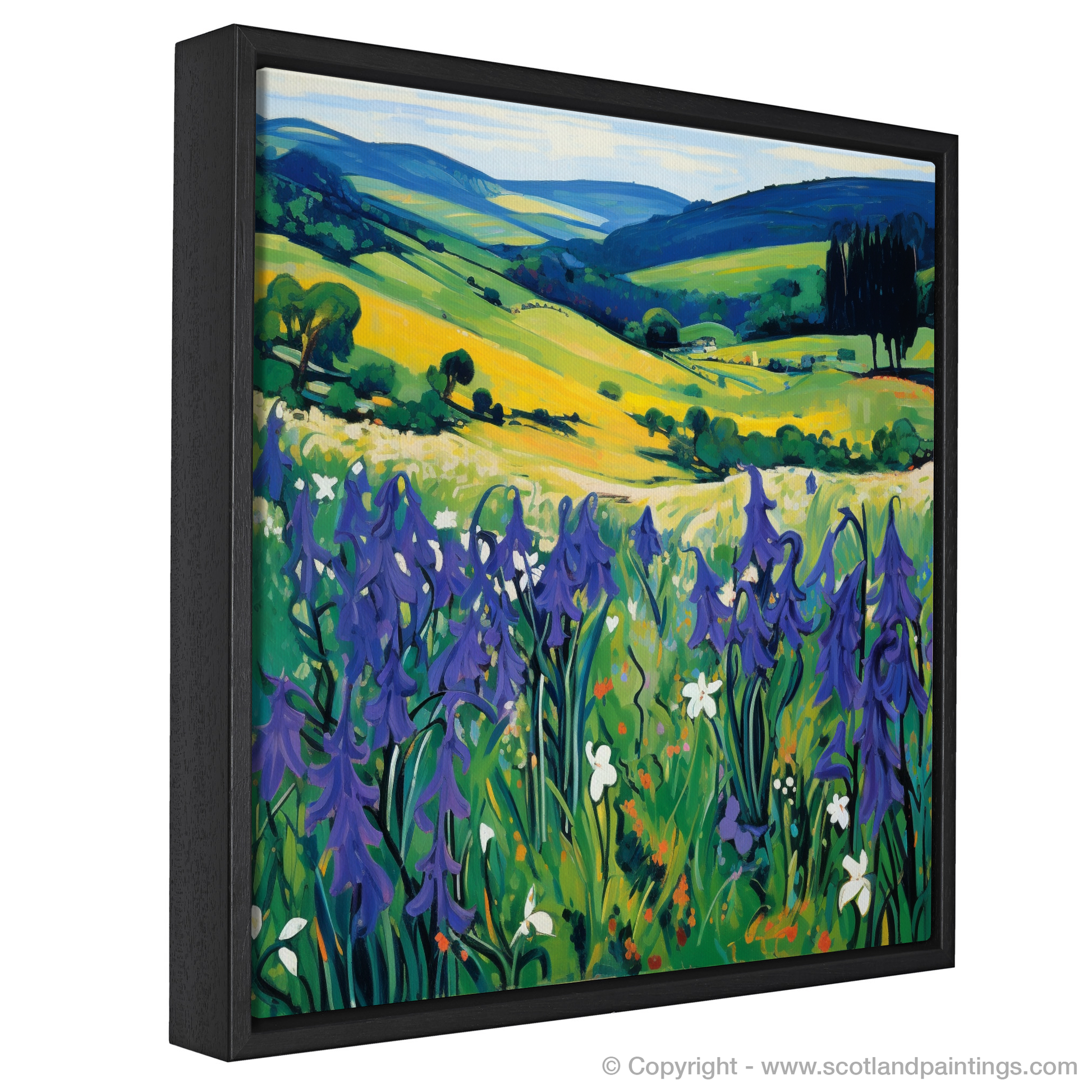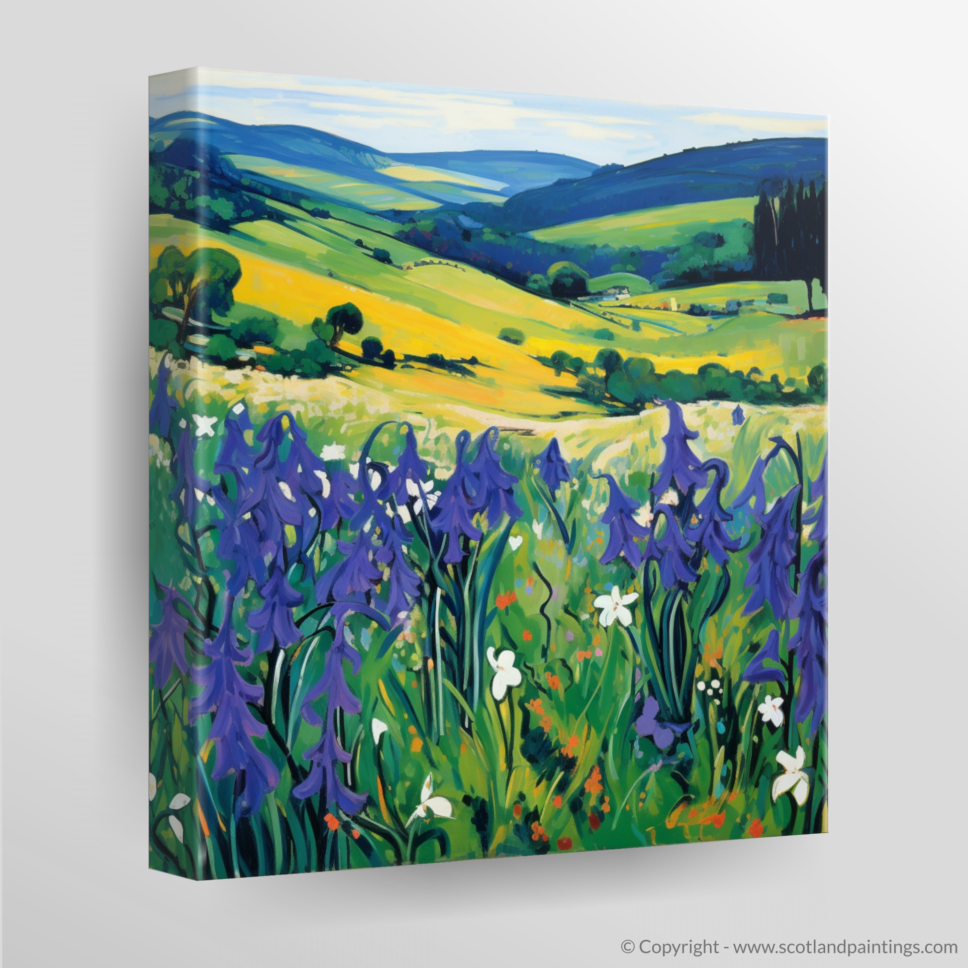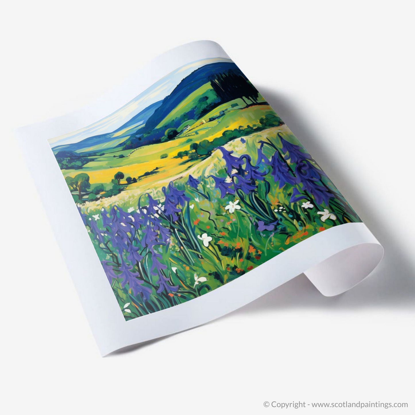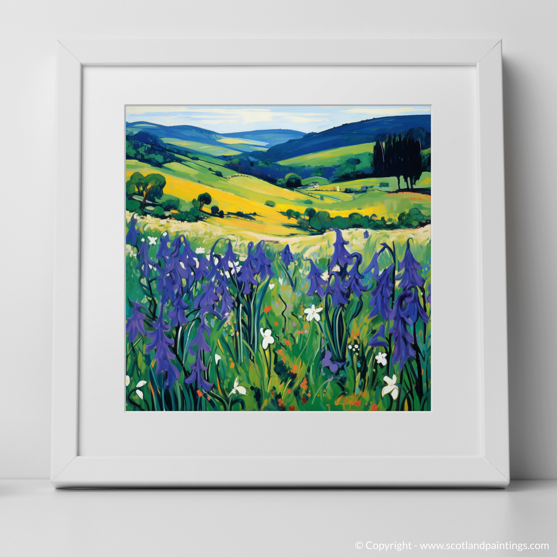 Embrace the wild charm of Dumfries and Galloway through this vibrant print, celebrating the untamed beauty of Scottish harebells as they sway gently in the meadow breezes. Bold strokes and an arresting palette come together to evoke the essence of Fauvism, with blues, greens, and yellows creating a visual symphony that sings of nature's effortless splendour.