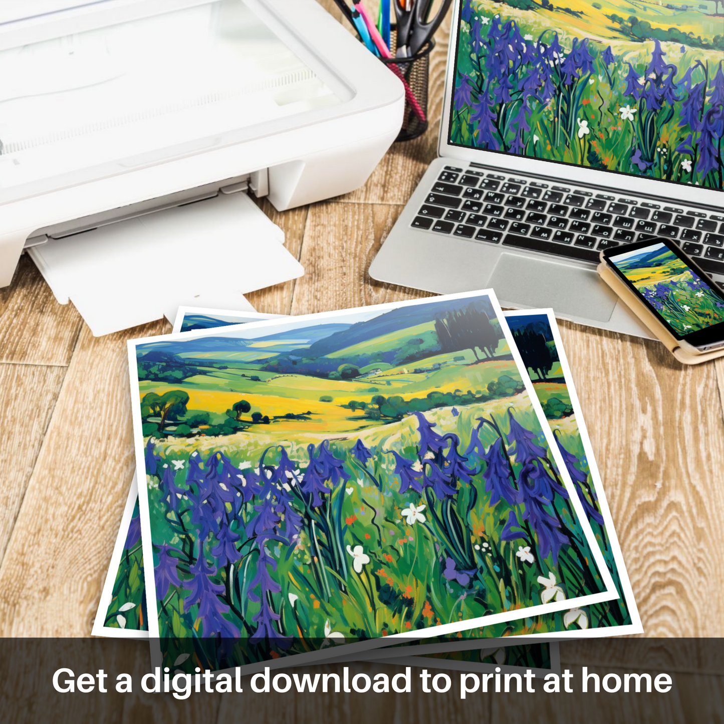 This print is a tribute to Scotland's natural allure, rendering the simple grace of harebells in a style that bursts forth with life and colour. It is an invitation to bring the wild and untamed soul of Scotland's meadows into your home, capturing the essence of a serene, rural idyll with a touch of modern artistic flair. Perfect for lovers of florals and vibrant landscapes, this piece is sure to be a conversation starter and a treasure within any collection.