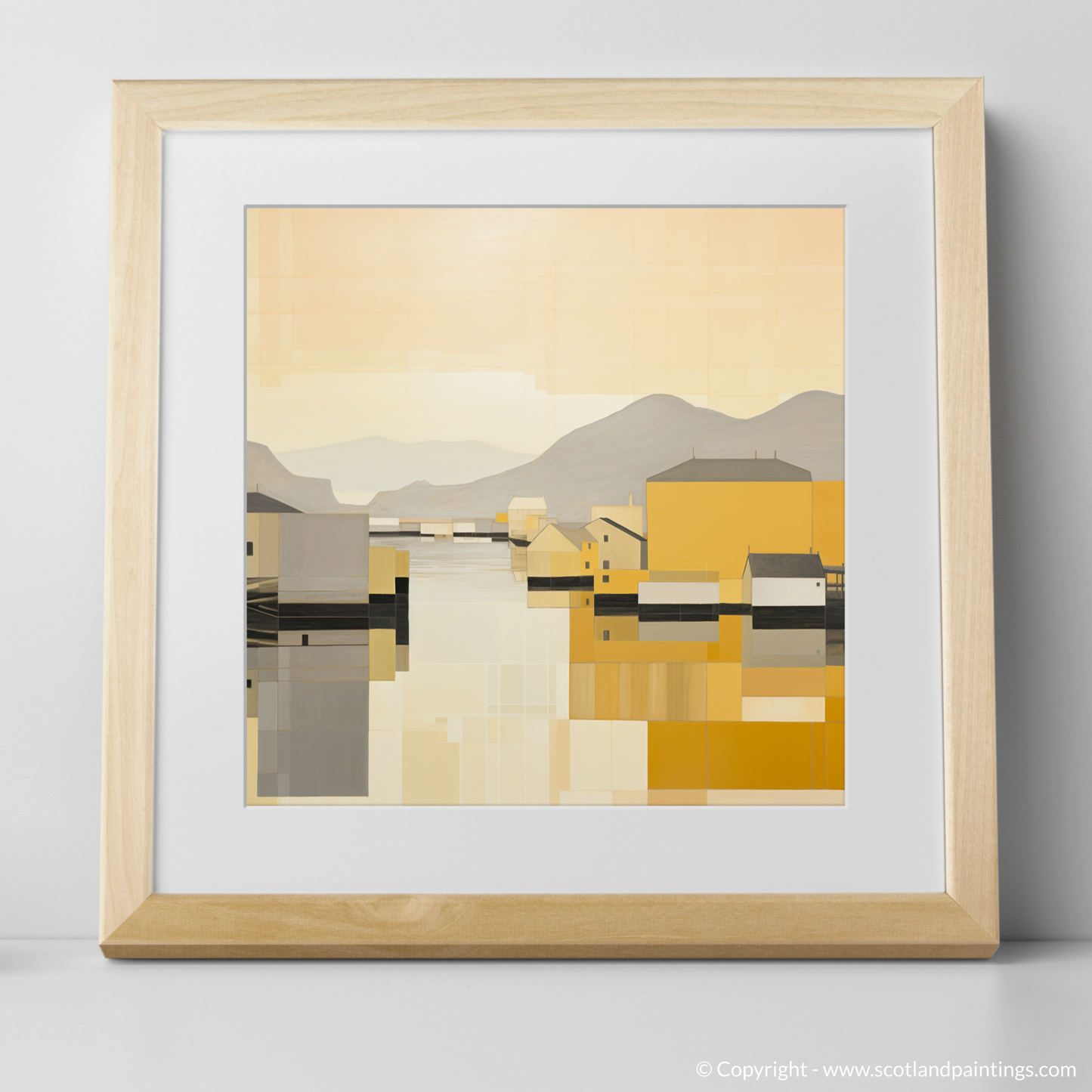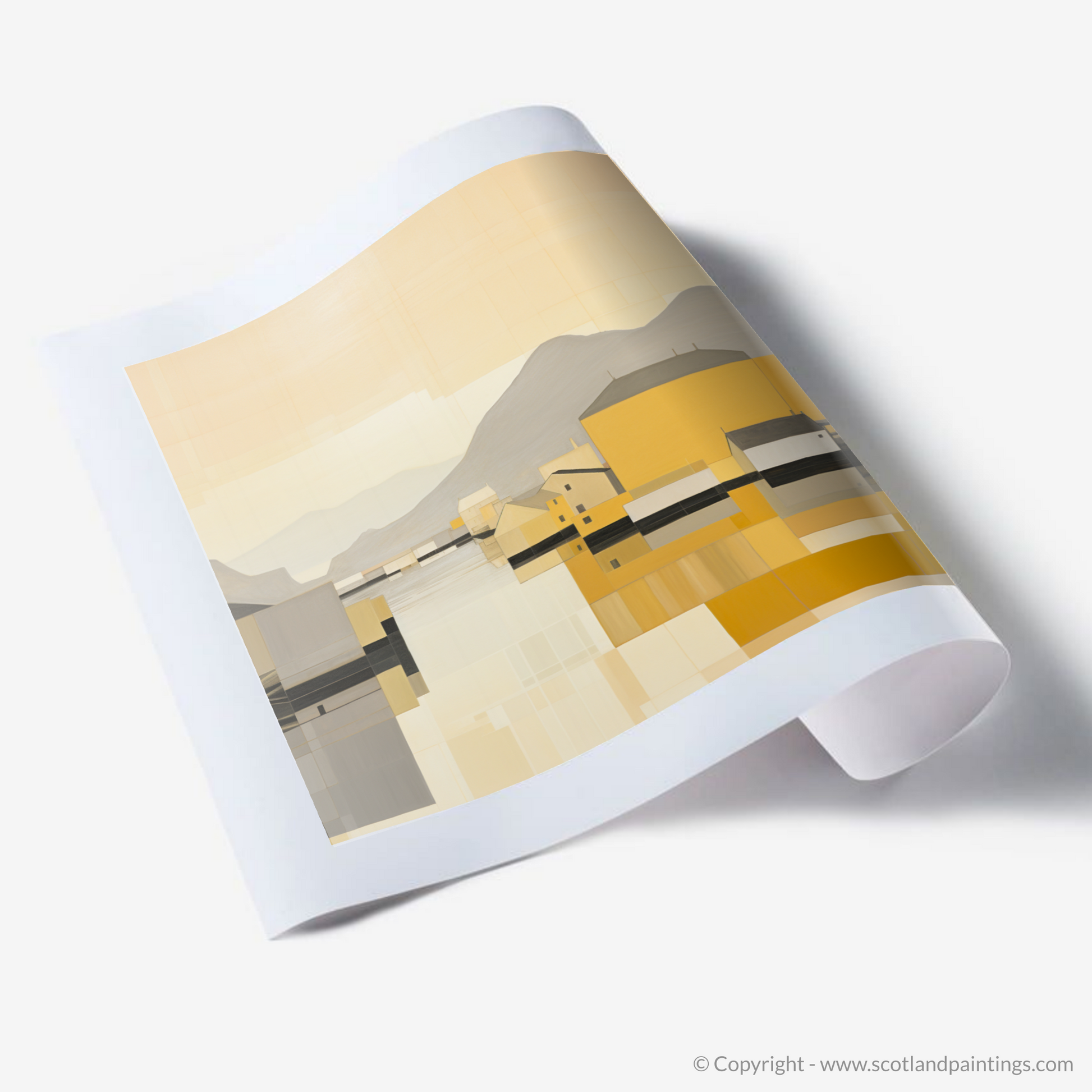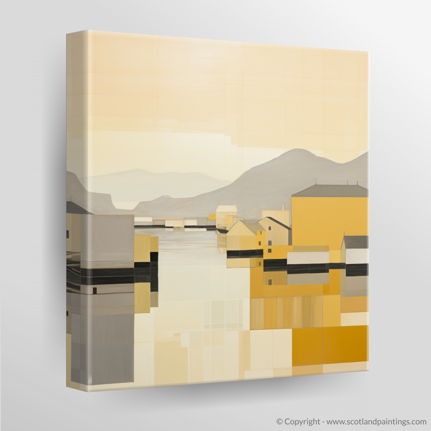 Immerse your space with the warm luminosity of Castlebay Harbour, captured elegantly at the tranquil golden hour. This abstract homage to one of Scotland's serene harbours refracts the light of dusk through a contemporary lens, reimagining traditional landscapes with a bold composition of geometric shapes and a soothing palette.