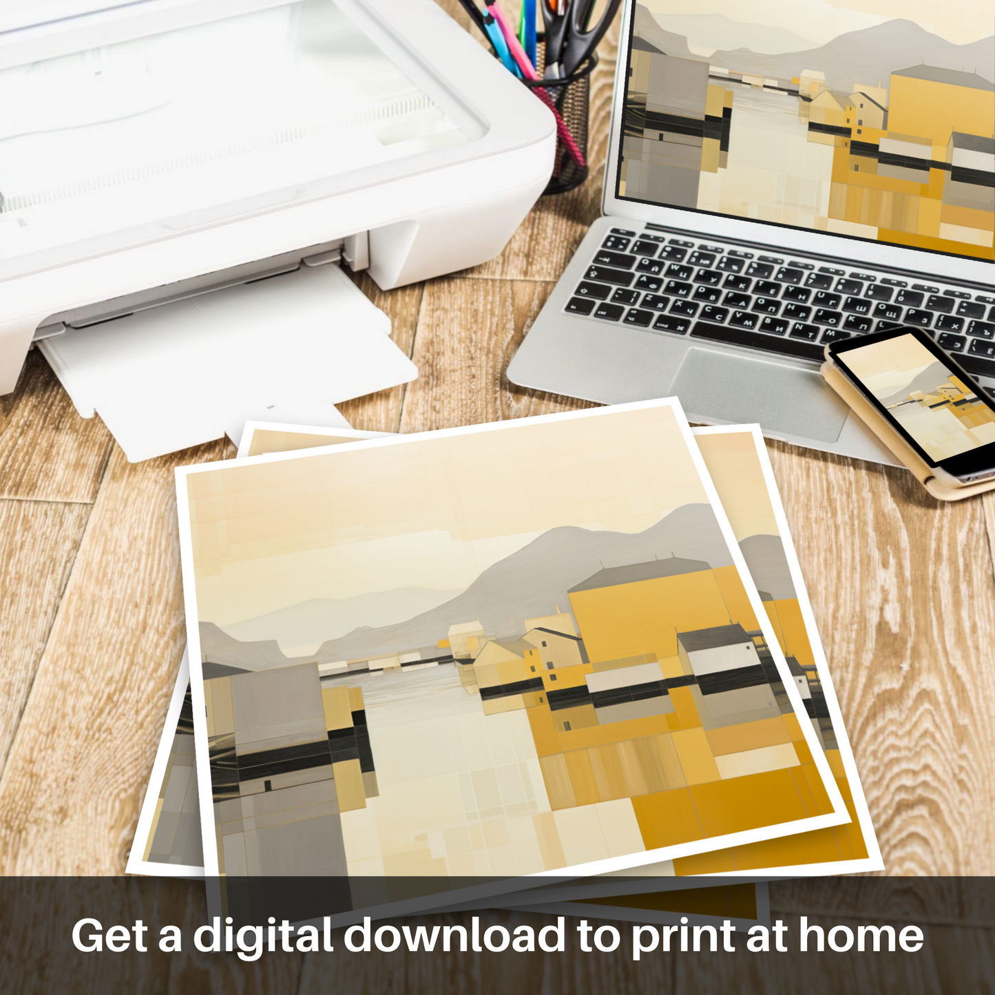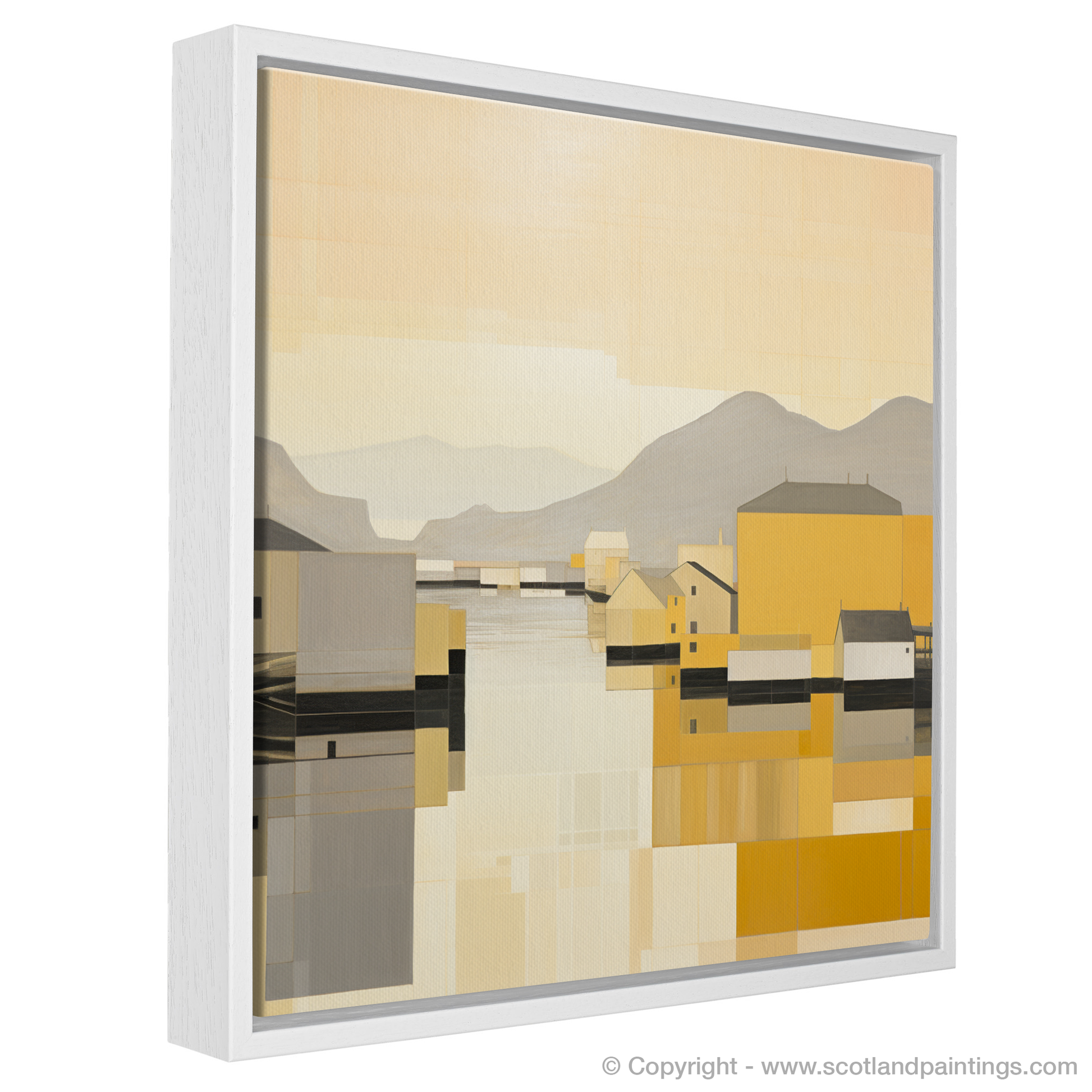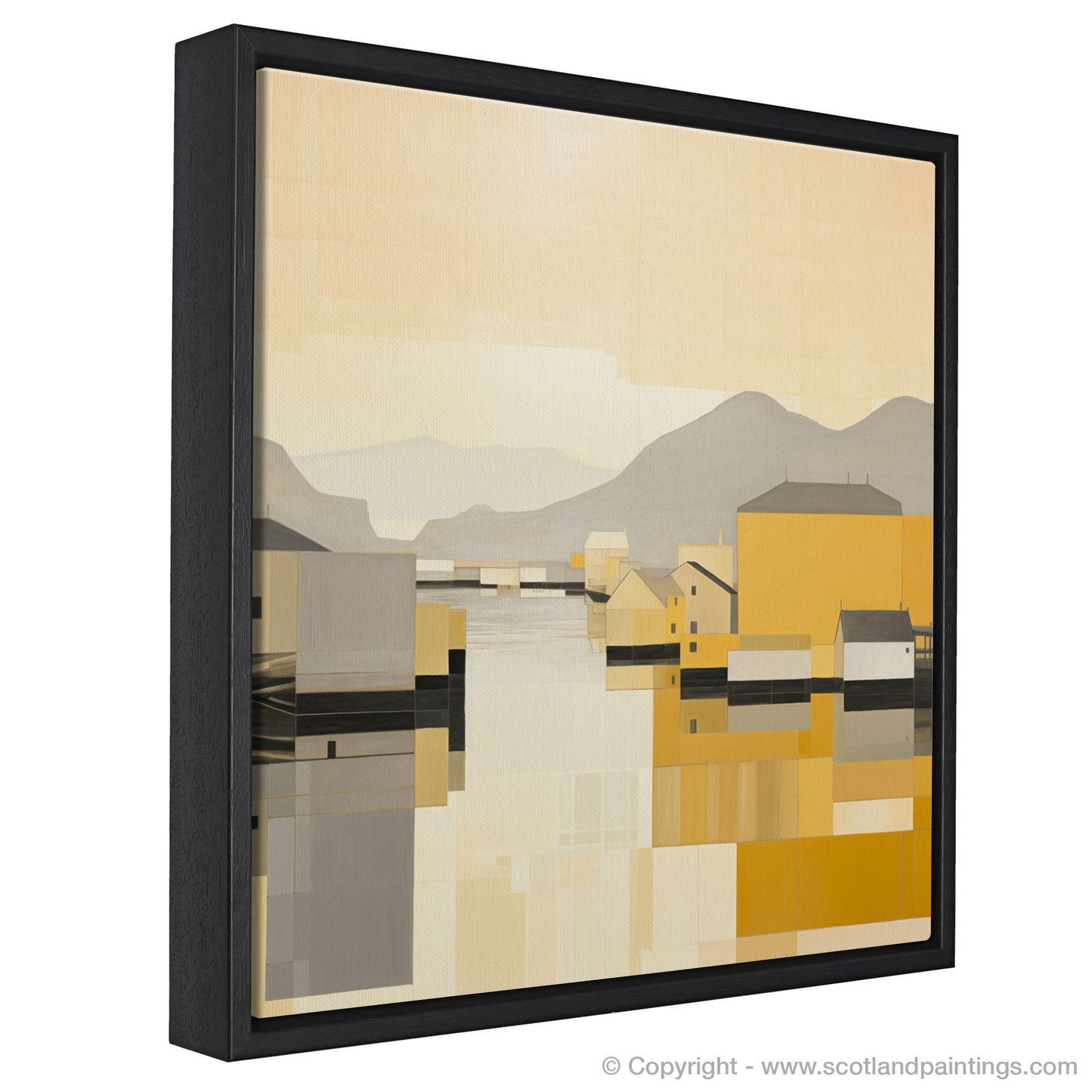 Immerse your space with the warm luminosity of Castlebay Harbour, captured elegantly at the tranquil golden hour. This abstract homage to one of Scotland's serene harbours refracts the light of dusk through a contemporary lens, reimagining traditional landscapes with a bold composition of geometric shapes and a soothing palette.