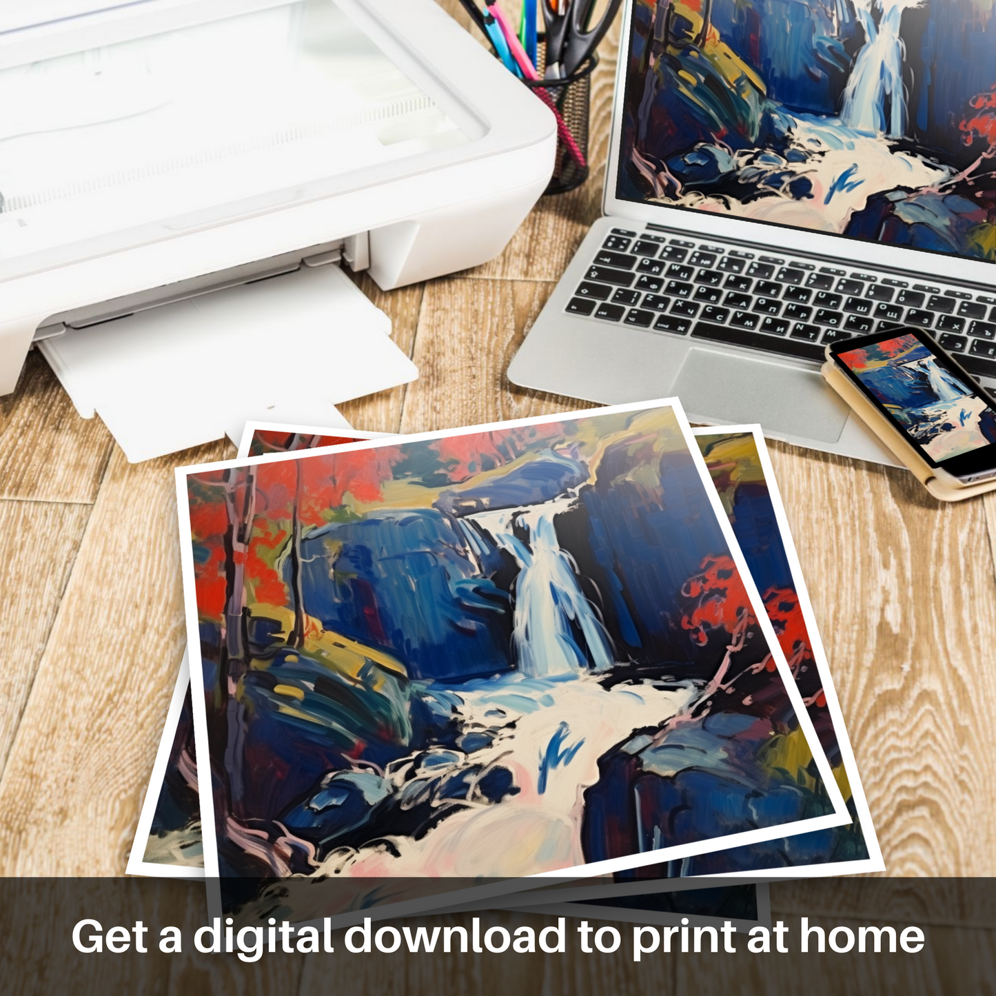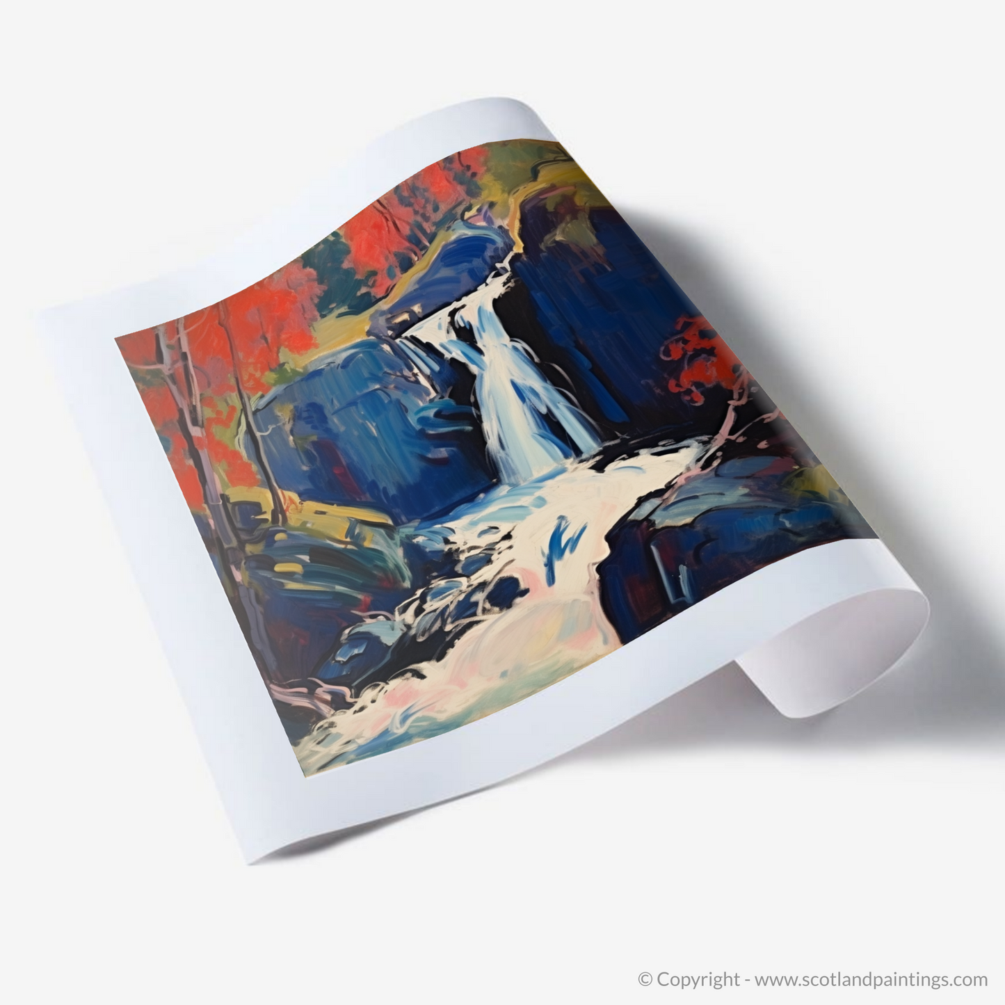Immerse yourself in the wild beauty of the Scottish Highlands with this evocative print, showcasing the vibrant, untamed essence of Bonaloch Falls. Enveloped in the expressive strokes of Fauvism, this artwork distils the essence of nature into bold, contrasting colours and assertive lines, allowing you to experience the natural marvel as if through a dream.