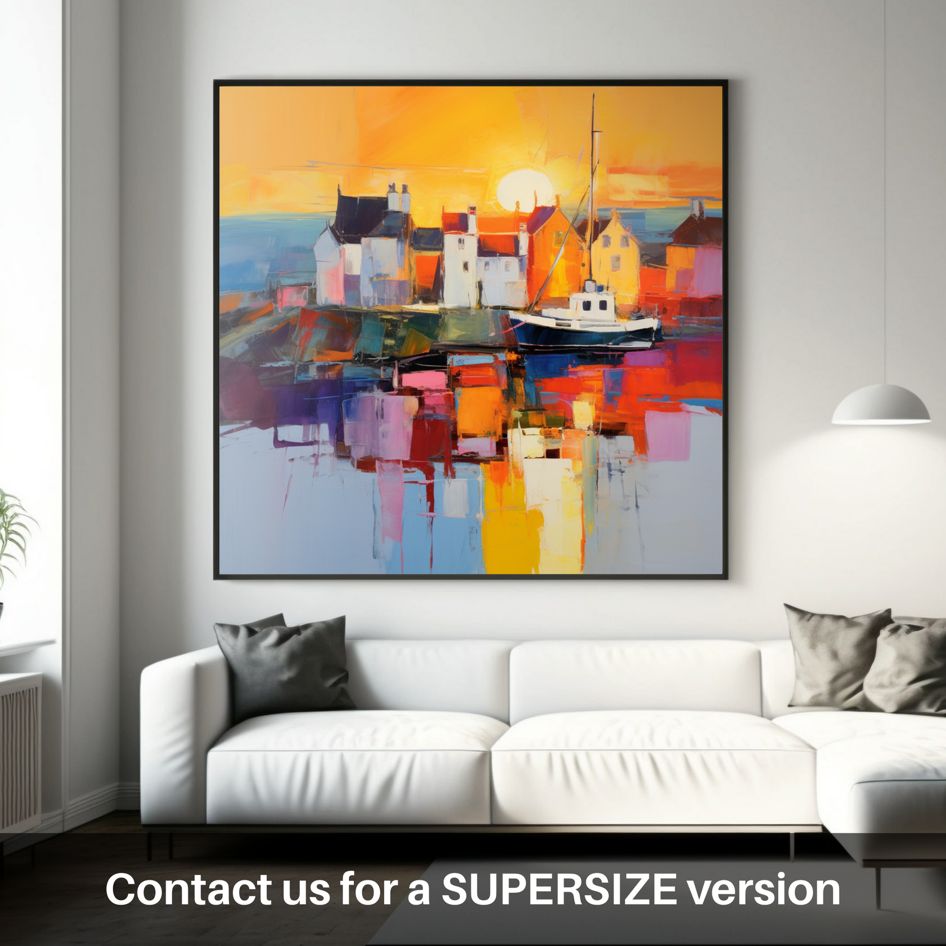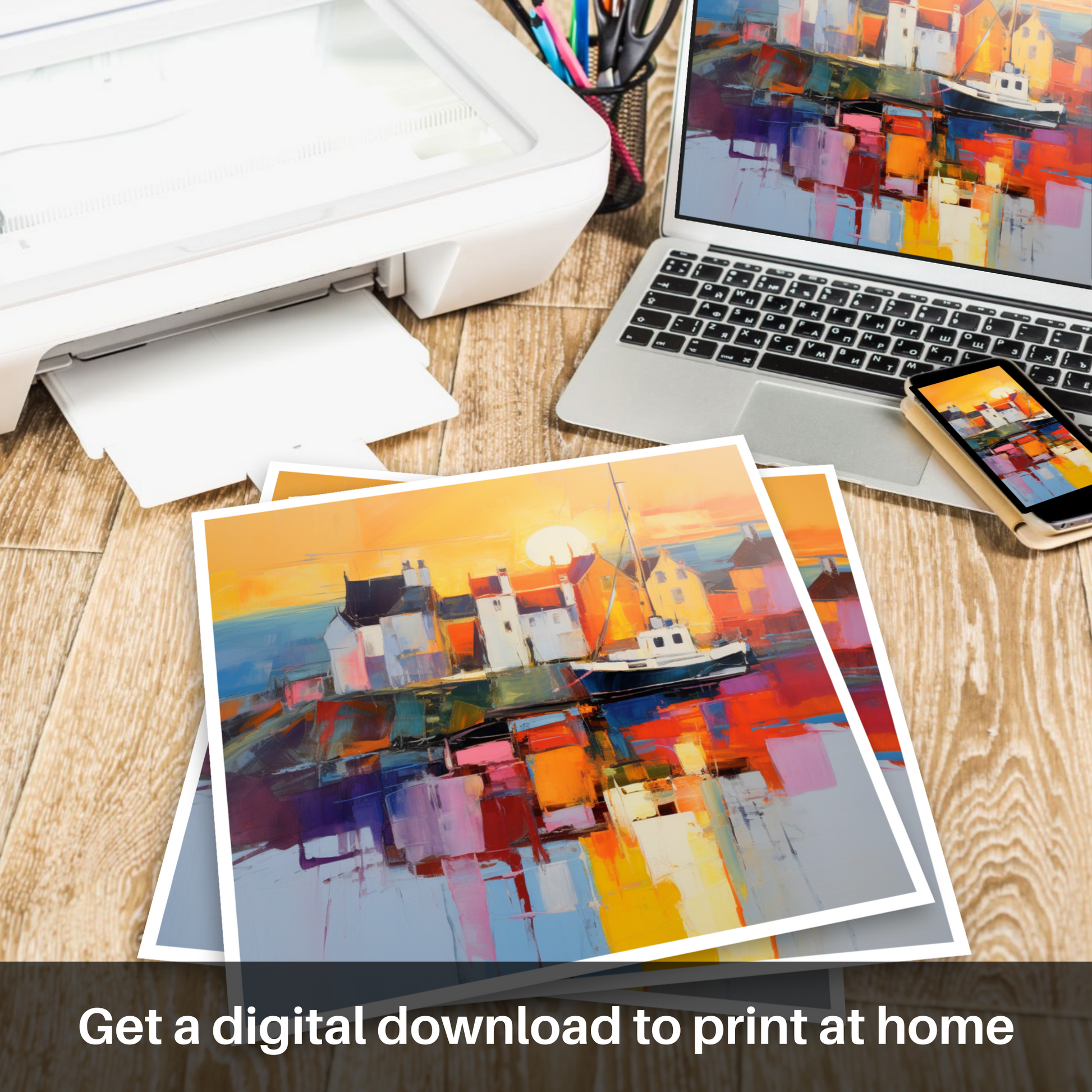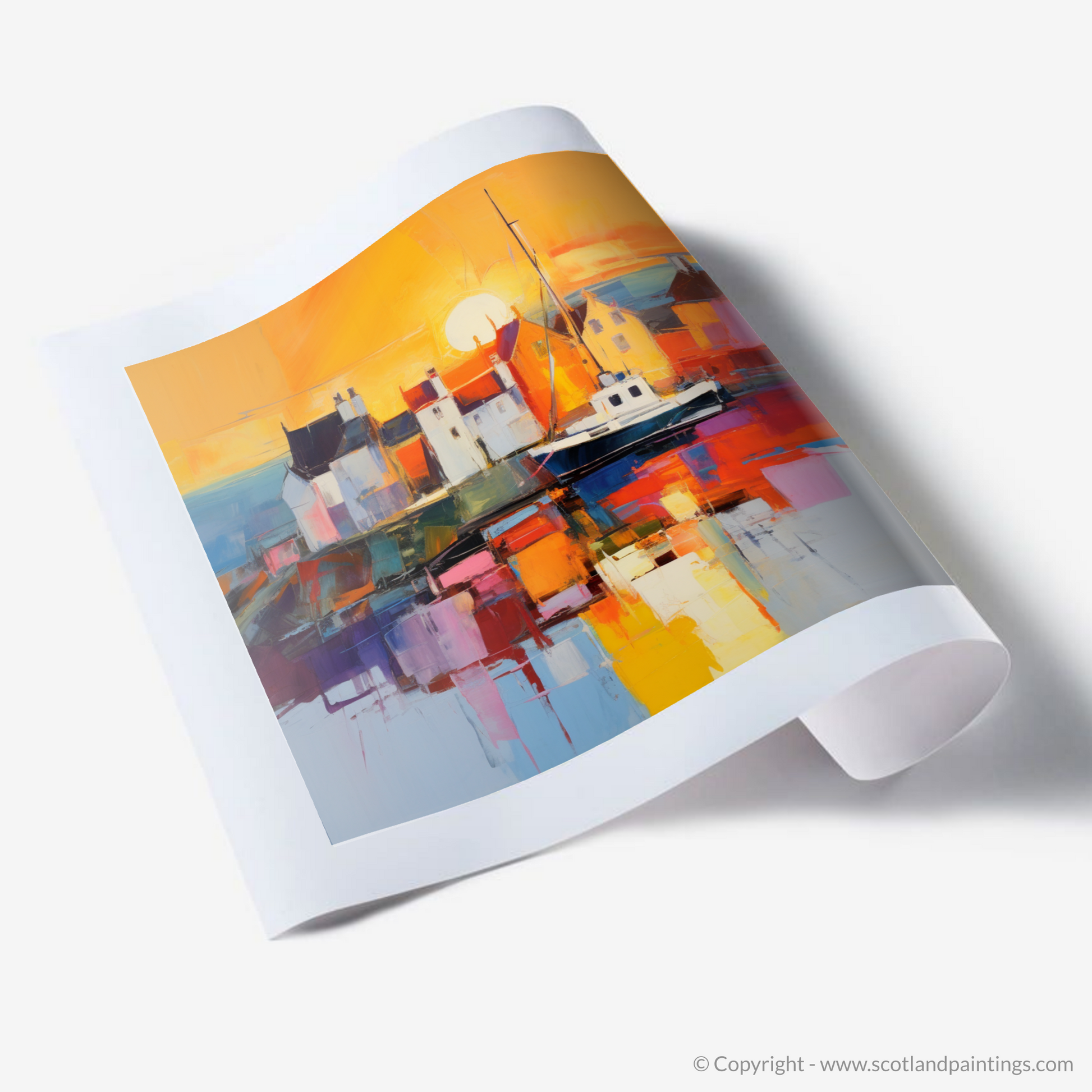 Perfect for those who are drawn to the emotive power of Abstract Expressionism, this print will bring a bold splash of colour and the tranquil ambiance of a Scottish harbour at the most magical time of day into any space it adorns.