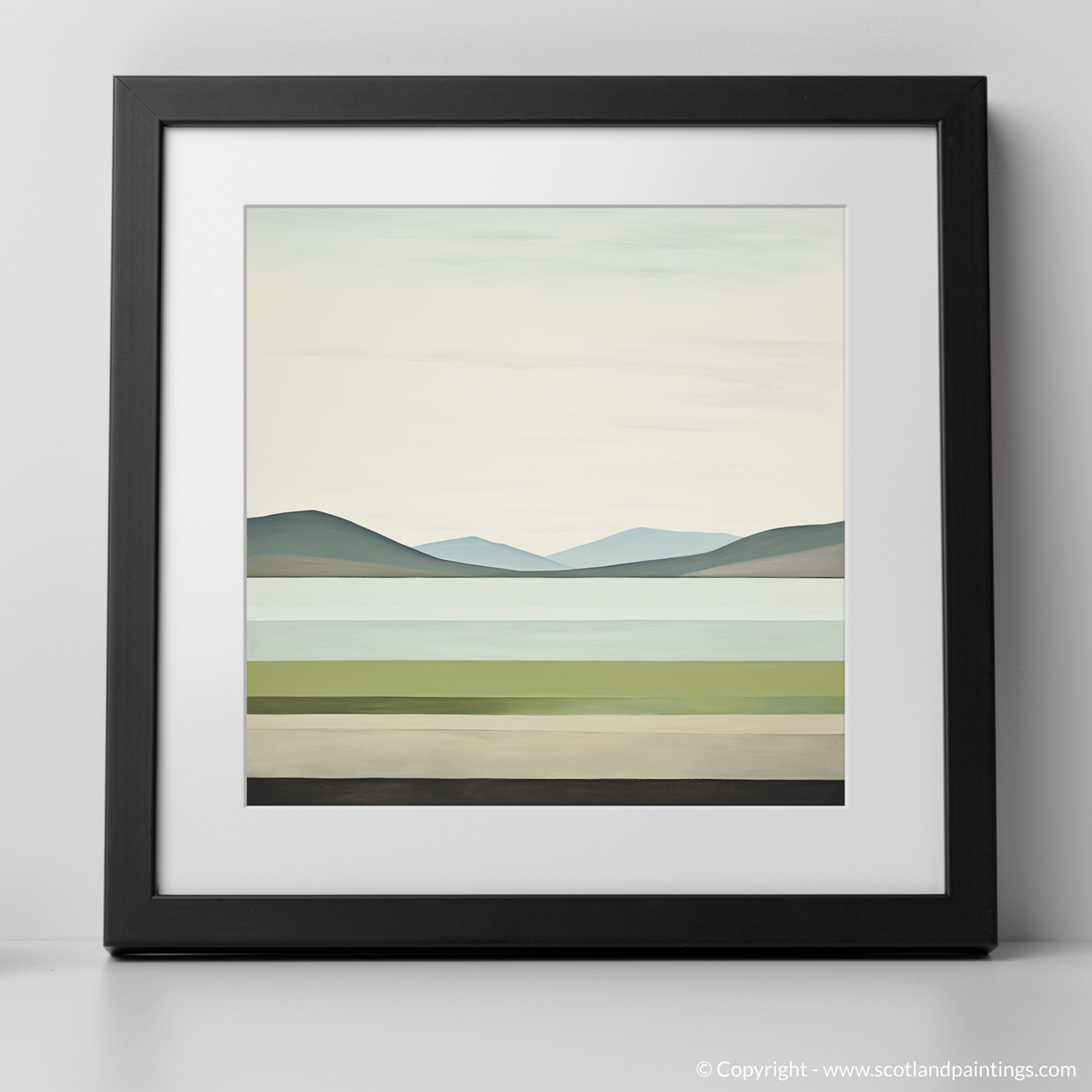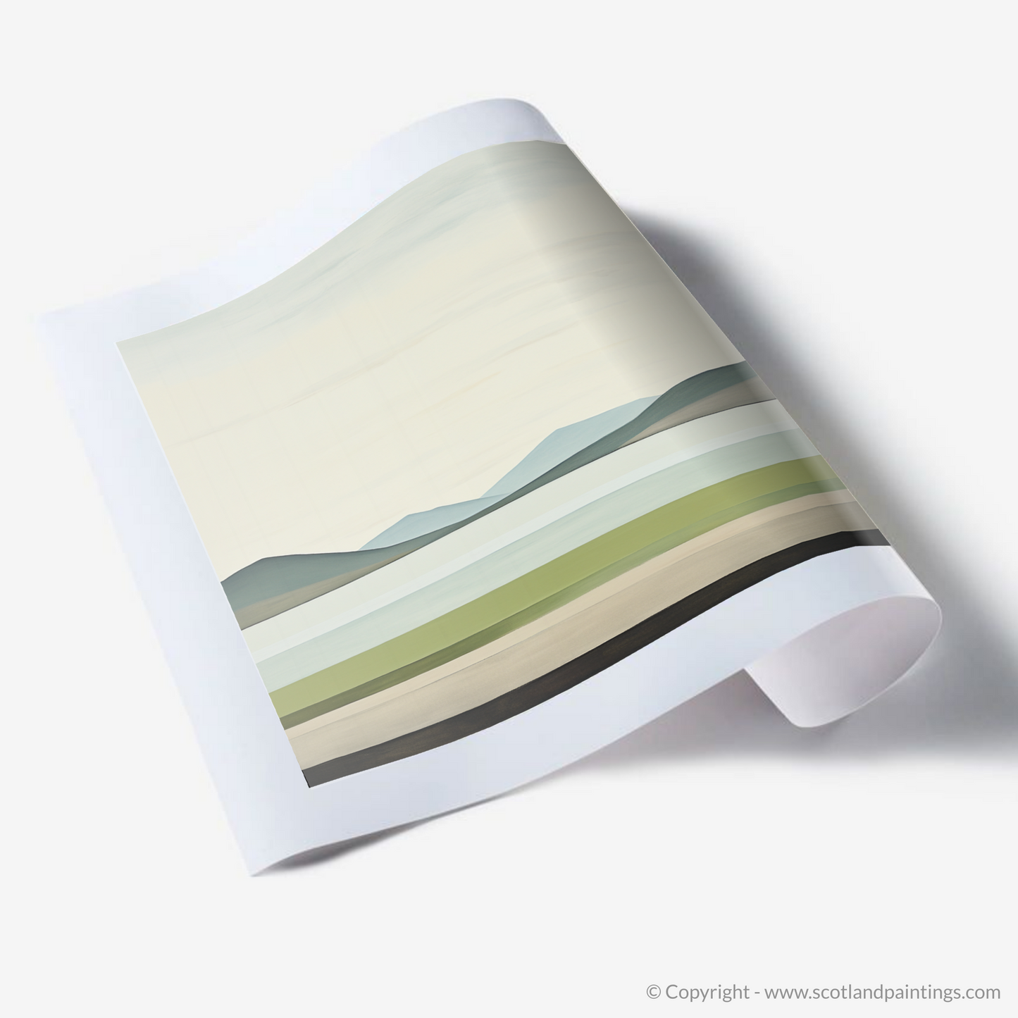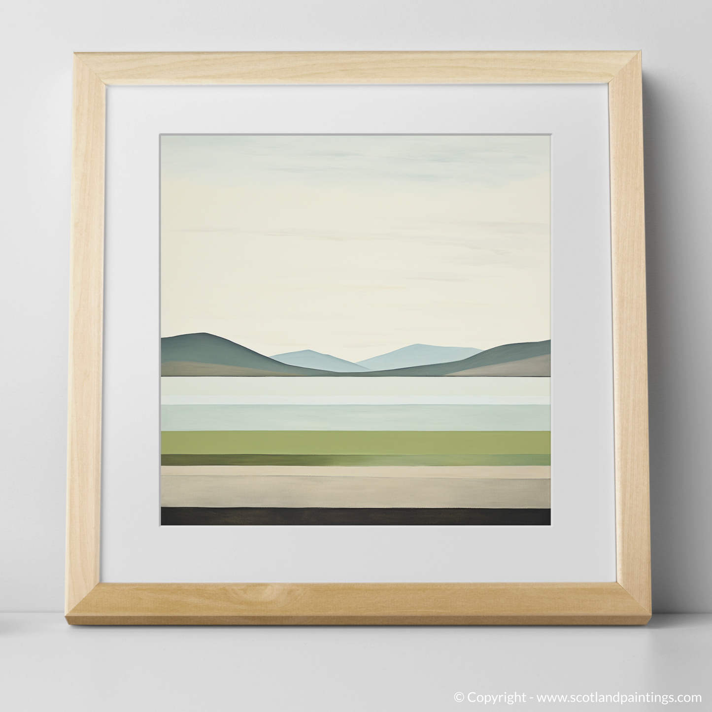 Immerse yourself in the distilled serenity of the Scottish Highlands with this evocative abstract print. Drawing inspiration from the tranquil beauty of Loch Insh, the artwork captures the essence of the loch's placid waters and the gentle rolling hills that frame it.