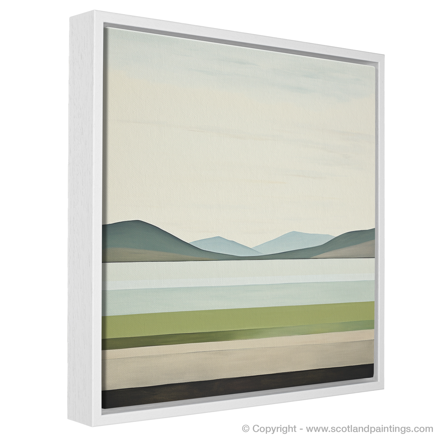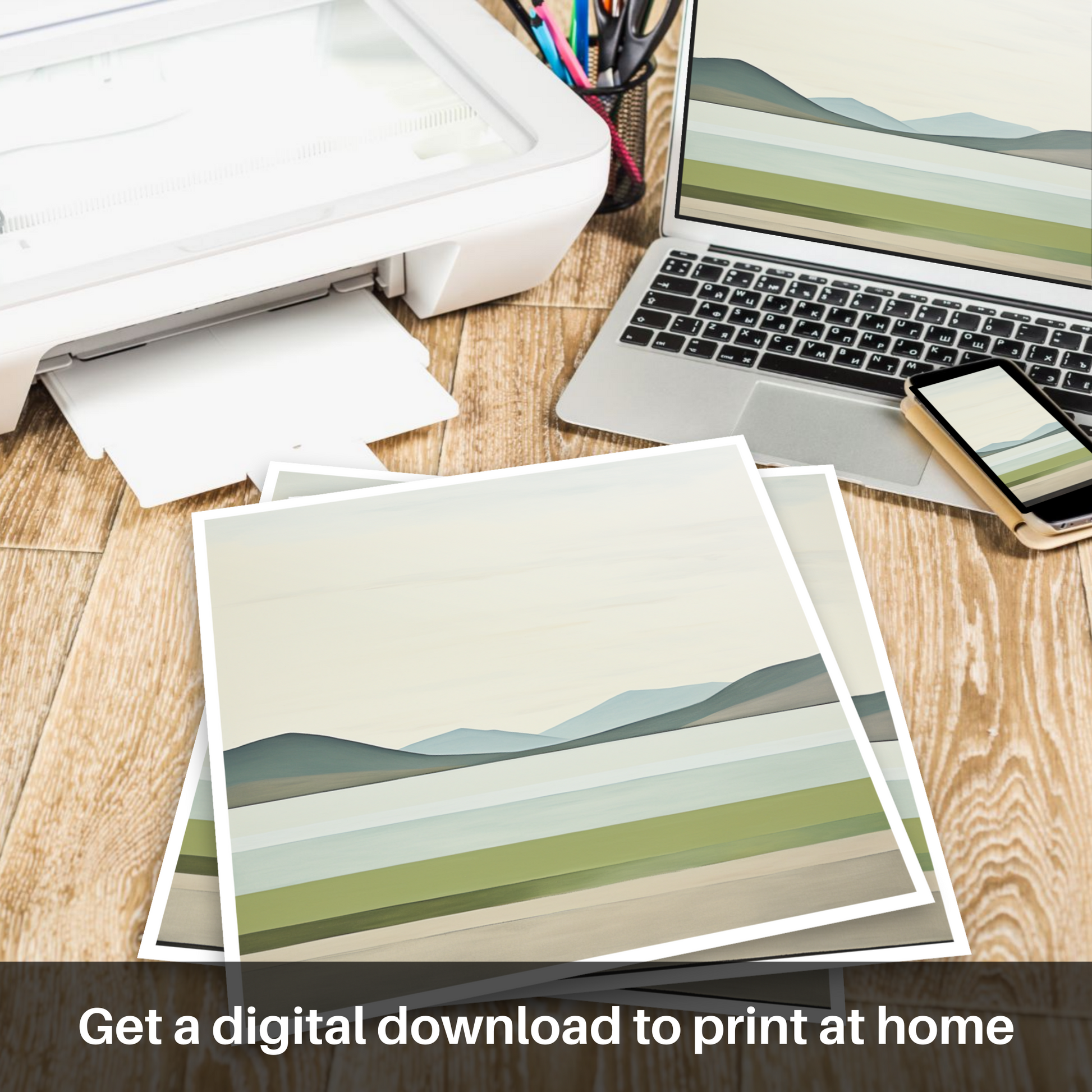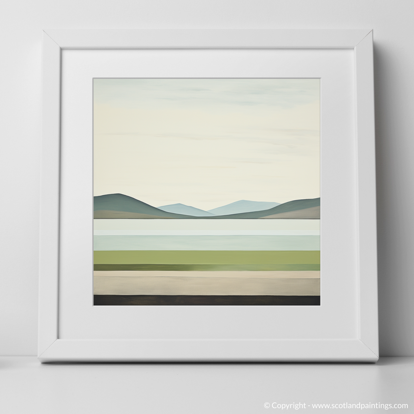 Immerse yourself in the distilled serenity of the Scottish Highlands with this evocative abstract print. Drawing inspiration from the tranquil beauty of Loch Insh, the artwork captures the essence of the loch's placid waters and the gentle rolling hills that frame it.