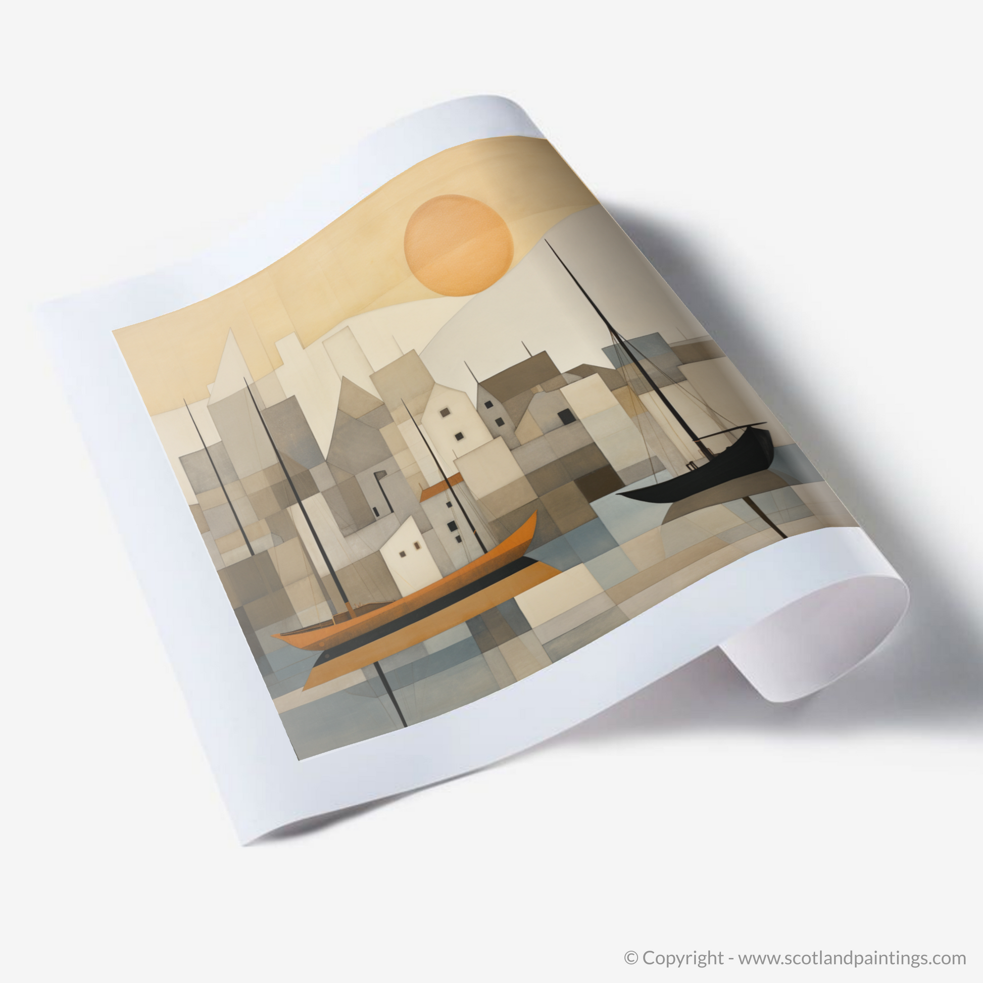 This print from our 'Scottish Harbours' collection is more than a mere depiction; it is an invitation to ponder and embrace the stillness of the moment, a rare treasure to behold. It is an artful accent for any aficionado seeking a dose of calm or contemplating the poetic interplay of light and architecture at the water's edge.