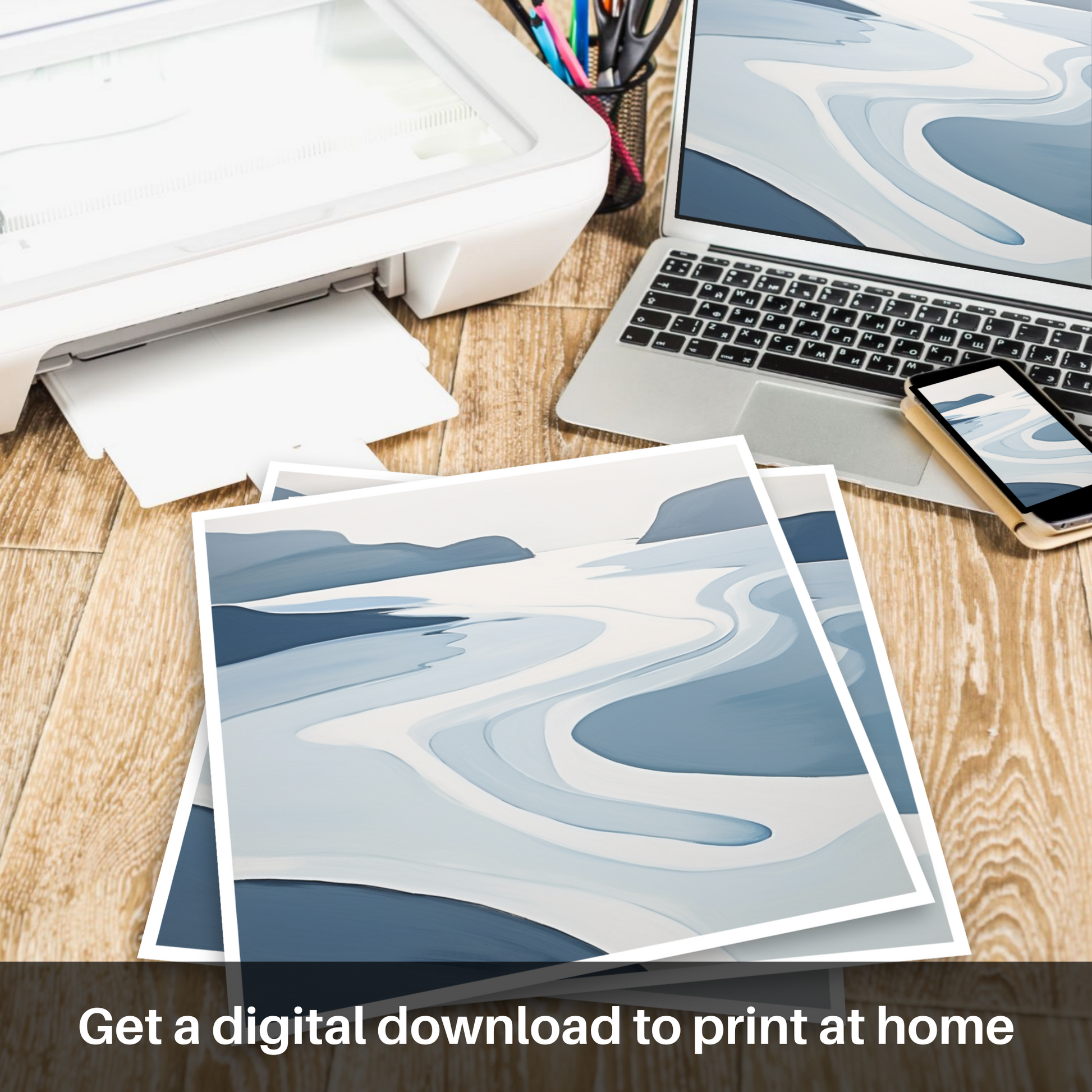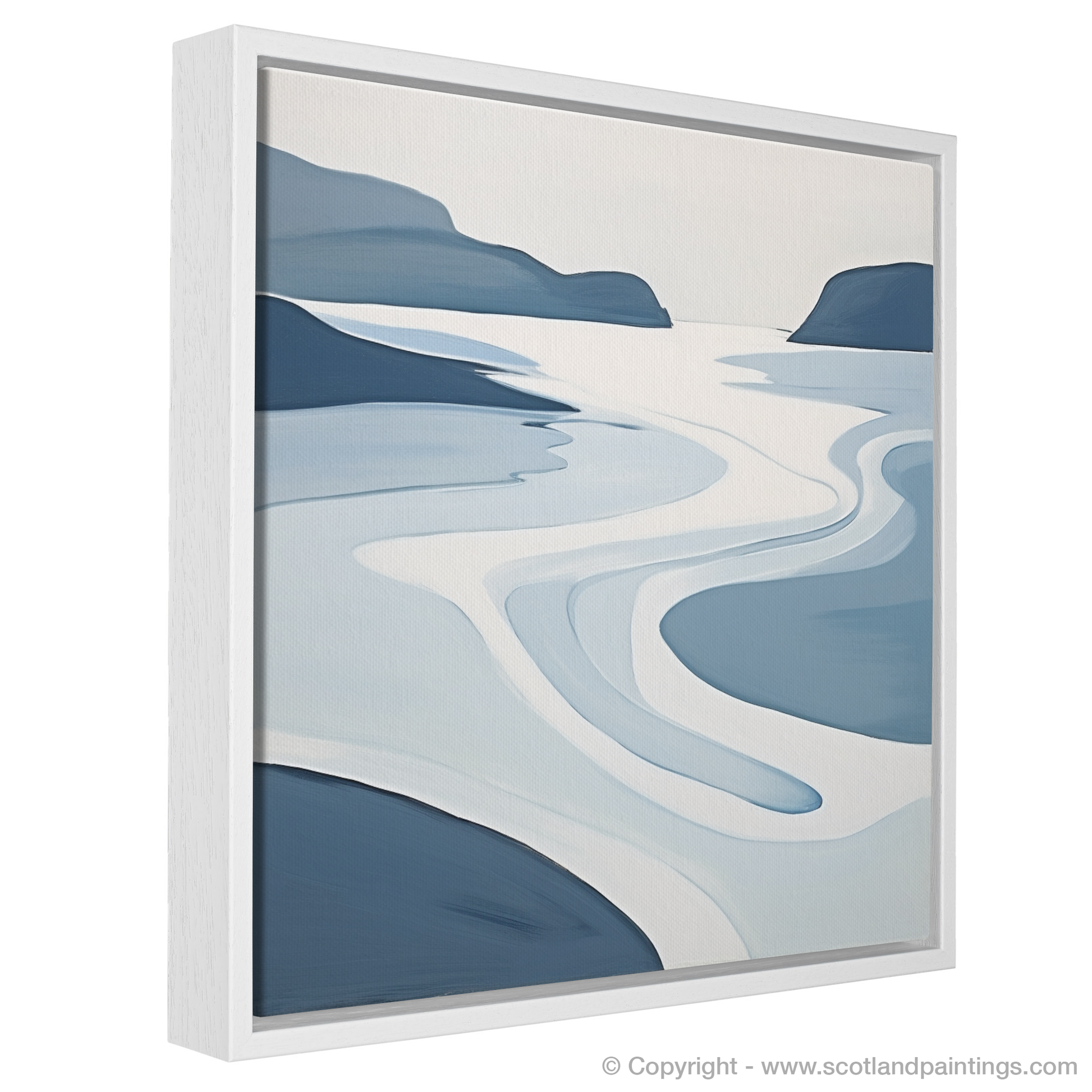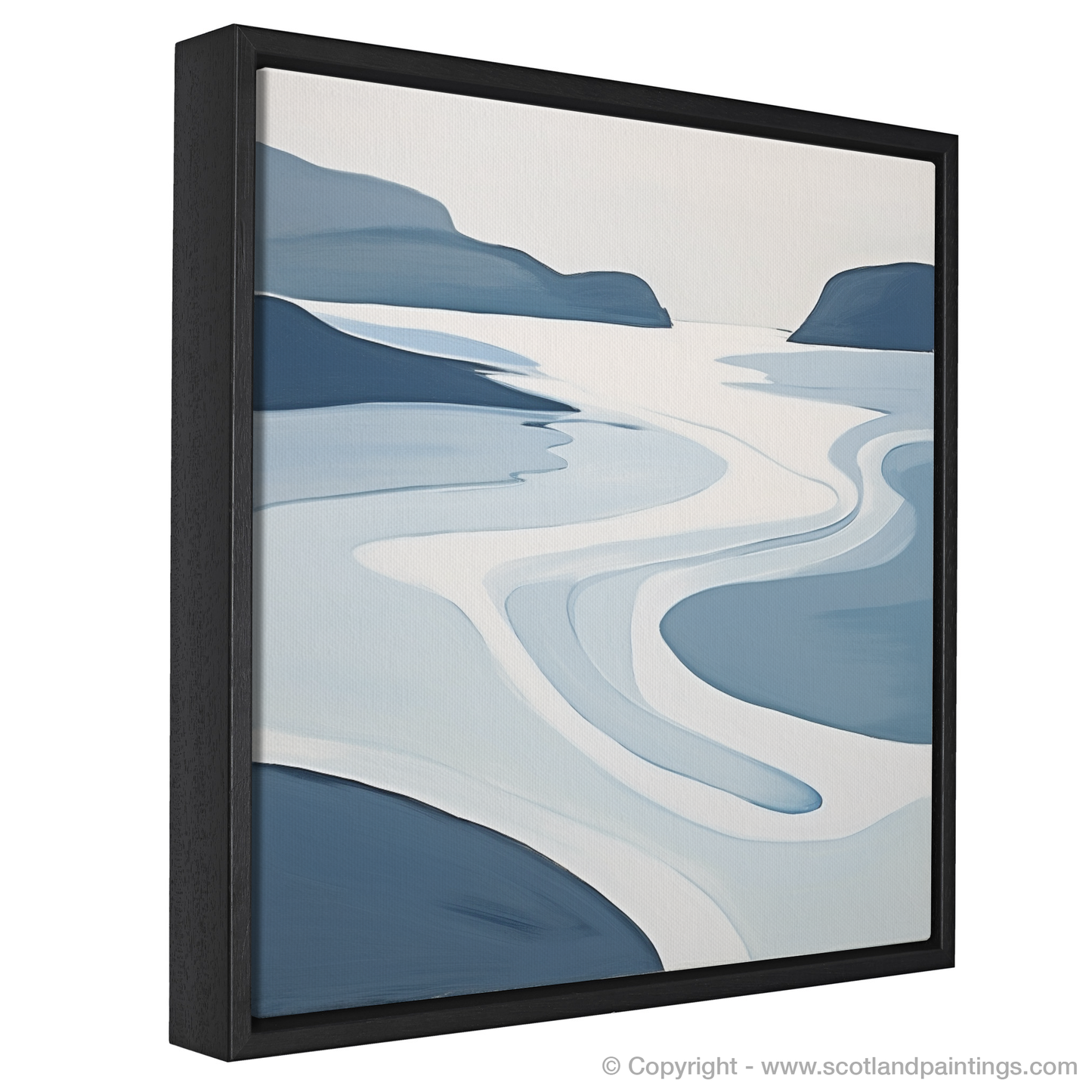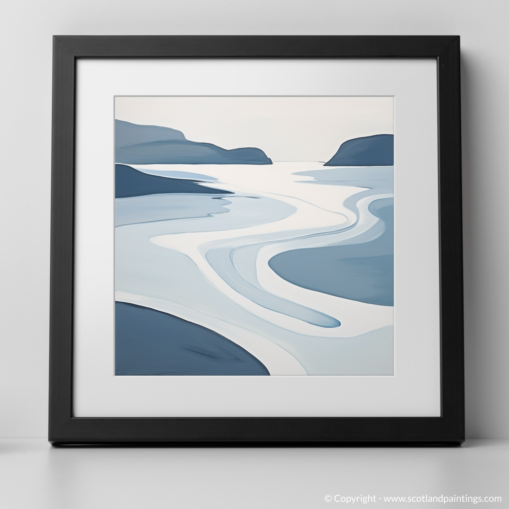 Imagine the serene tranquillity of Achmelvich Bay, rendered into a captivating abstraction, where the fluidity of water and the steadfastness of land dance in a symphony of shapes and tones. This exquisite print transforms the picturesque Scottish cove into a mesmerising interplay of gentle curves and bold silhouettes.