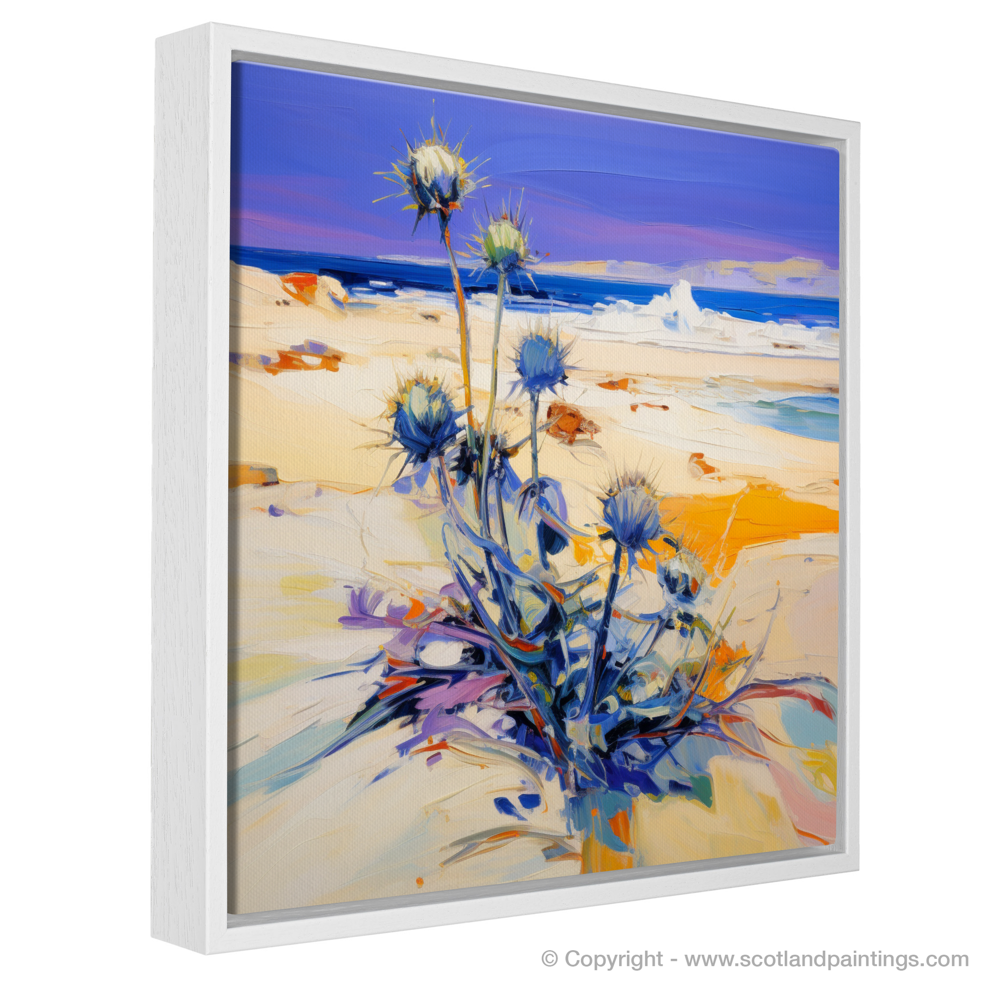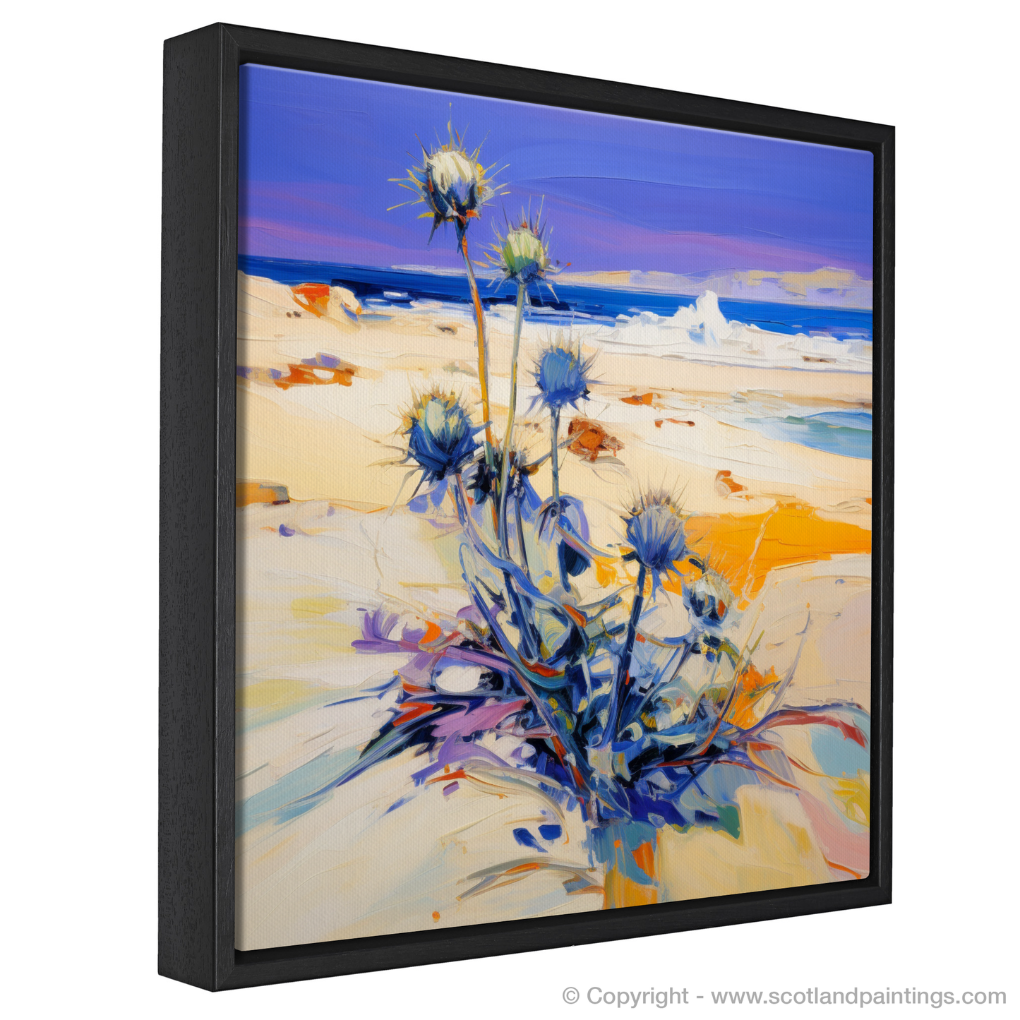 Caressed by the wild breath of the Hebrides, a thistle-like beauty emerges from the golden sands. This evocative print captures the resilient Sea holly, a botanical treasure that adorns the dune-kissed shores of Tiree. Employing the visceral strokes characteristic of Abstract Expressionism, the work is a riot of colour and emotion, where each dab, swirl, and sweep of paint adds to its vibrant narrative.
