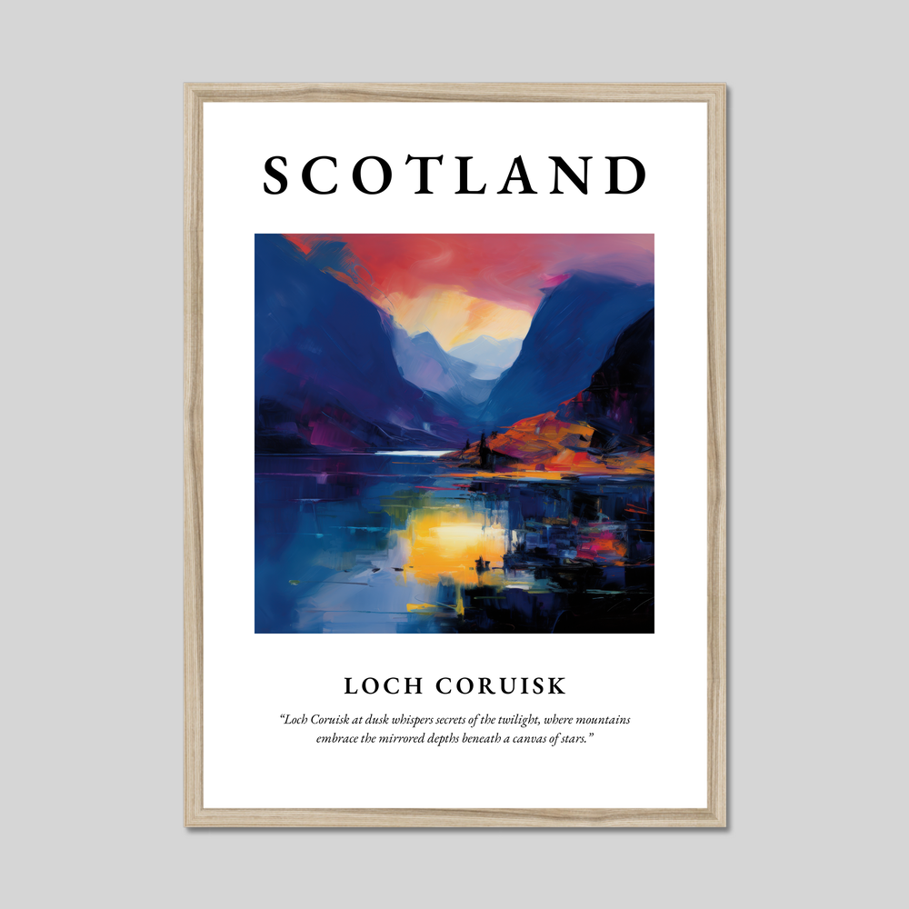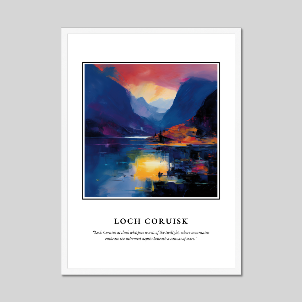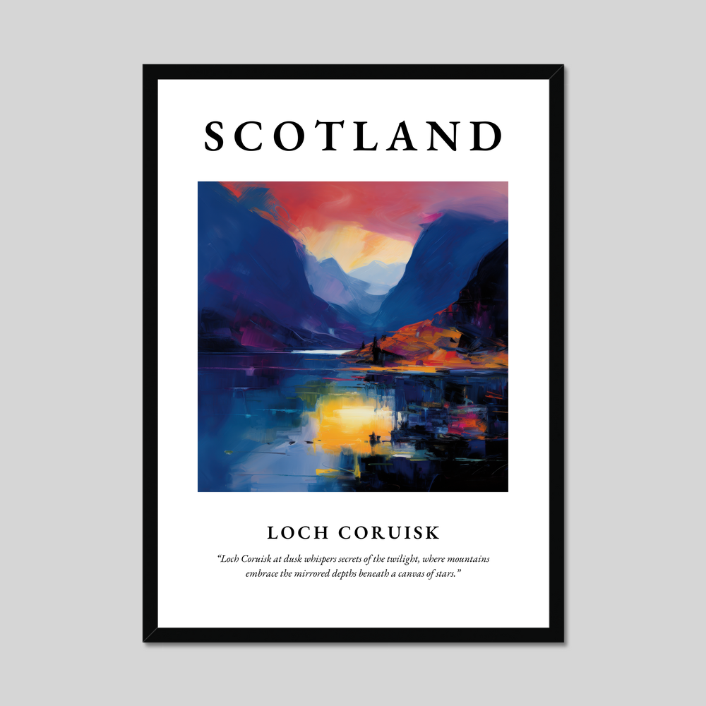 By bringing this artwork into your space, you invite the essence of Loch Coruisk’s enchanting landscape—a place where the sky meets the water and time seems to stand still—into your everyday life. This poster is more than just a decorative piece; it is a tribute to a place wrapped in myth and memory, ready to evoke stories of the Scottish highlands and whisper its secrets to all who gaze upon it.