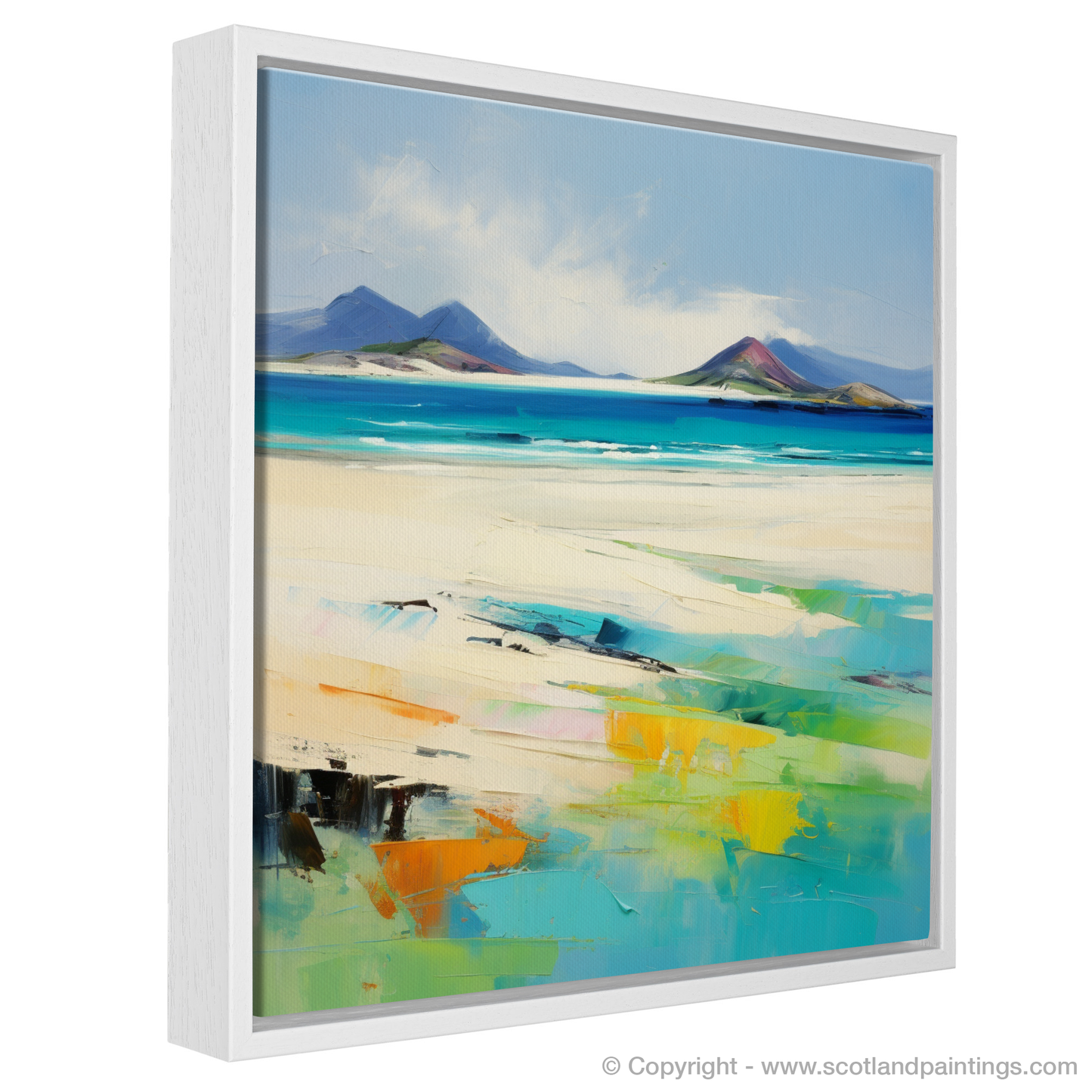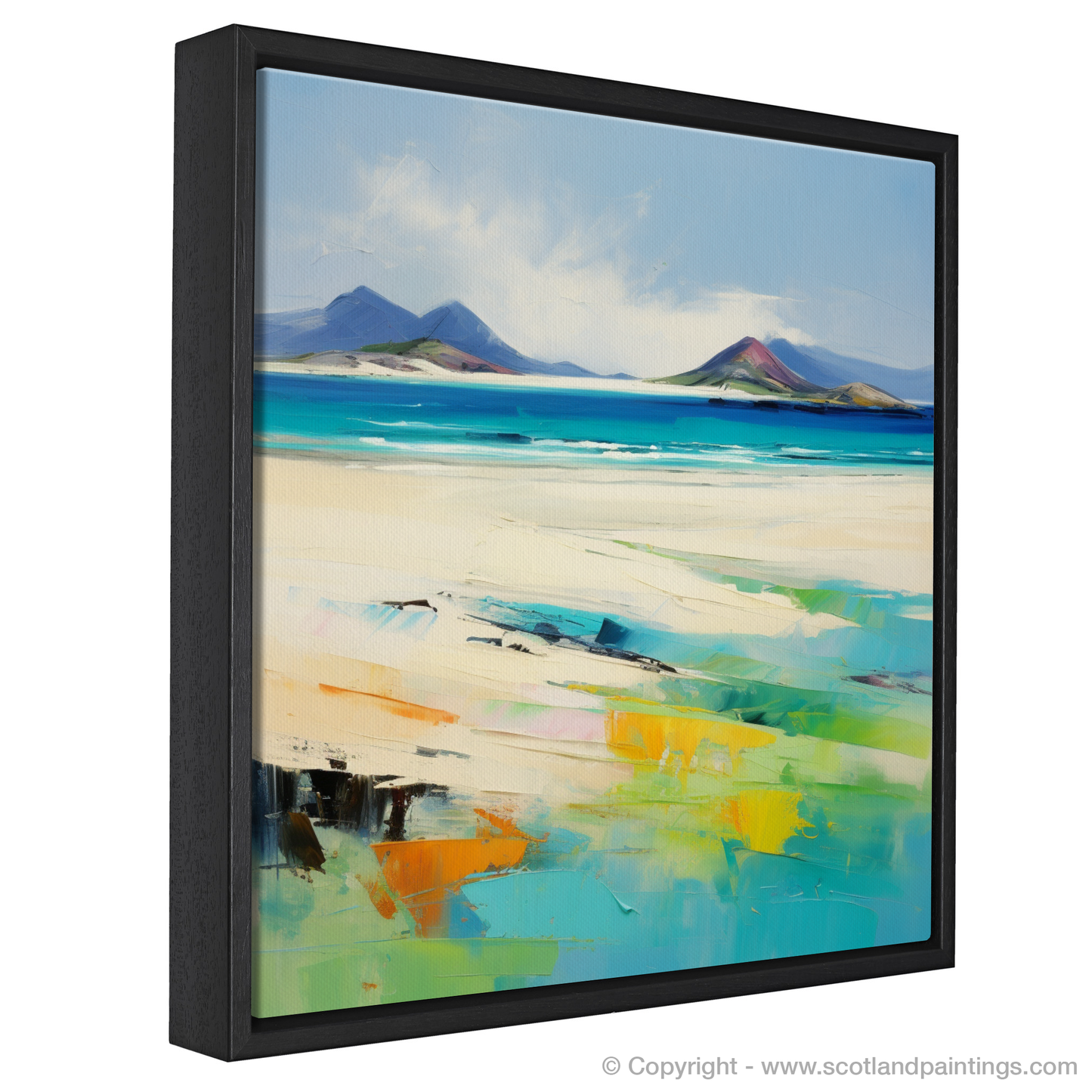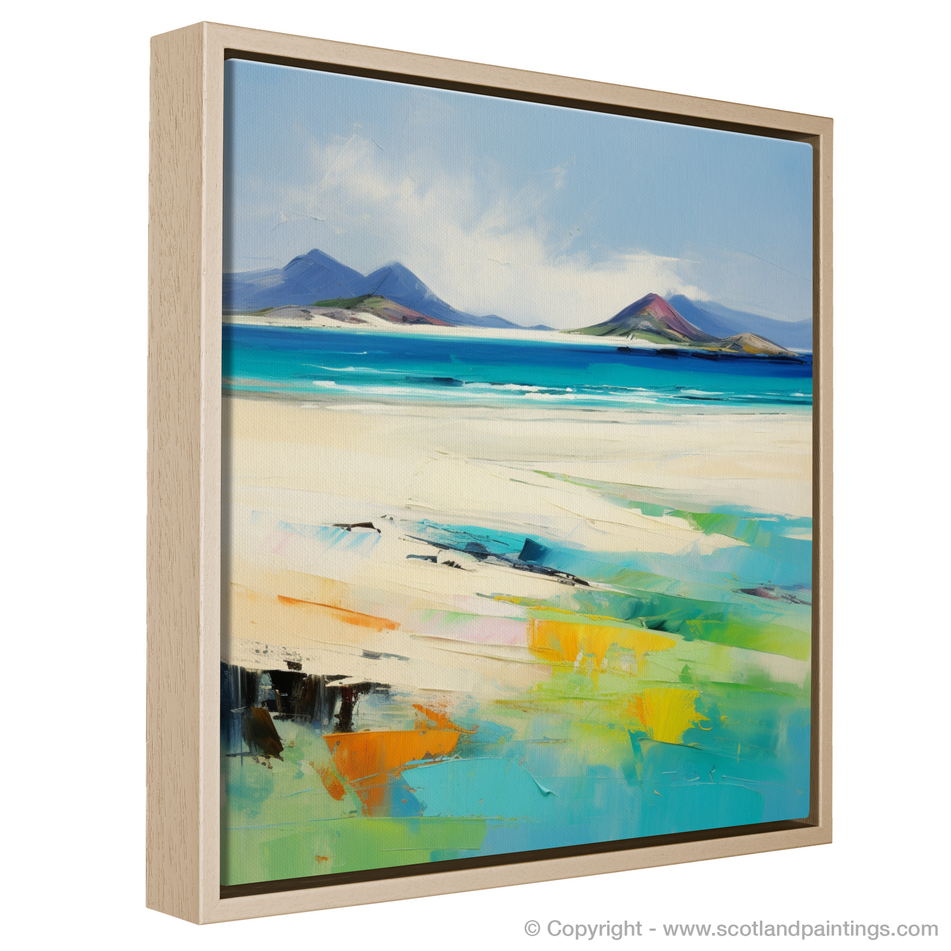 Inspired by the breath-taking beauty of Luskentyre Sands on the Isle of Lewis, this captivating piece evokes the wild, unspoiled charm of one of Scotland's most picturesque beaches. The artwork masterfully channels the spirit of Abstract Expressionism, with bold, sweeping strokes and a vibrant palette that captures the essence of this coastal haven.