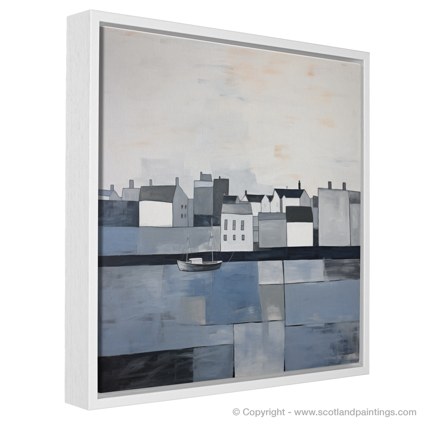 This print, part of the coveted 'Scottish Harbours' collection, is a visual symphony of contrasts – the calm resilience of the man-made against the tempestuous will of nature. The abstract styling invites viewers to interpret the interplay of light and shadow, open space and architecture in their unique way, making it a versatile addition to any room where contemplation and aesthetic appreciation are treasured.