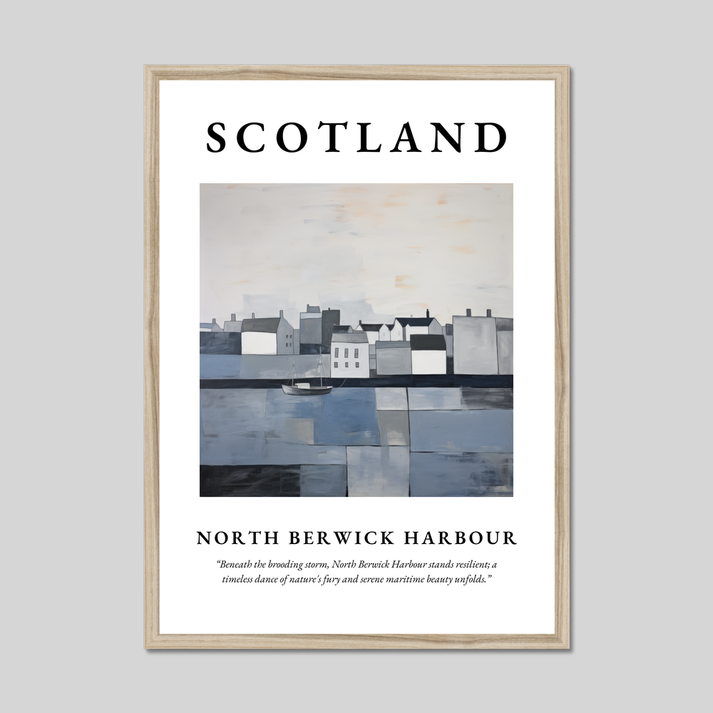 Immerse yourself in the enchanting allure of Scotland with our stunning framed poster print, a distinctive addition to our "Scottish Harbours" collection. This large 50cm x 70cm piece is a striking portrayal of North Berwick Harbour, seamlessly combining bold typography with evocative art. Available with a choice of black, white, or natural wood-effect frames, it suits any decor while making a grand statement on your wall without costing a fortune.