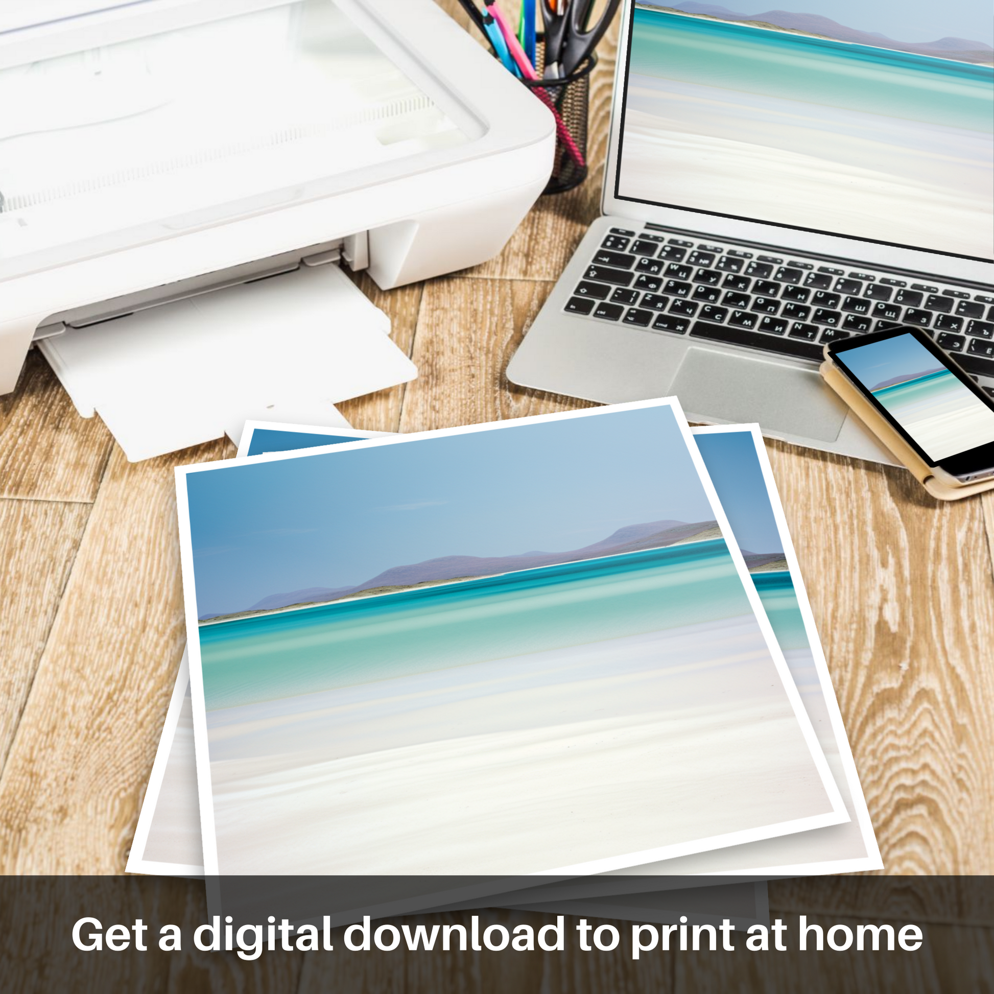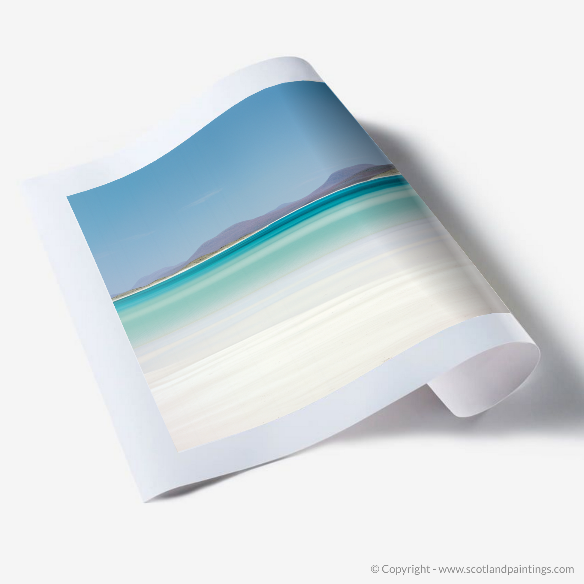 Immerse yourself in the serene abstraction of Scotland's secluded shores with this captivating print, a piece that harnesses the essence of Mellon Udrigle Beach, Wester Ross. The artist has distilled the natural beauty of this coastal gem into an abstract panorama, infusing it with an ethereal tranquillity distinct from the conventional portrayal of landscapes.