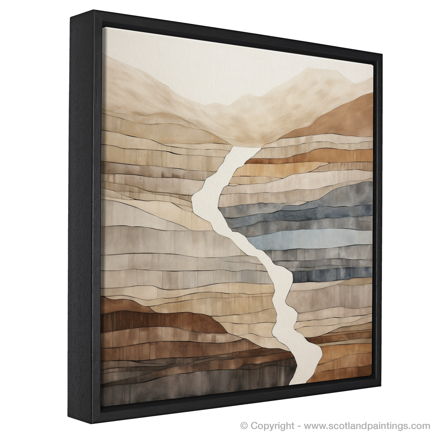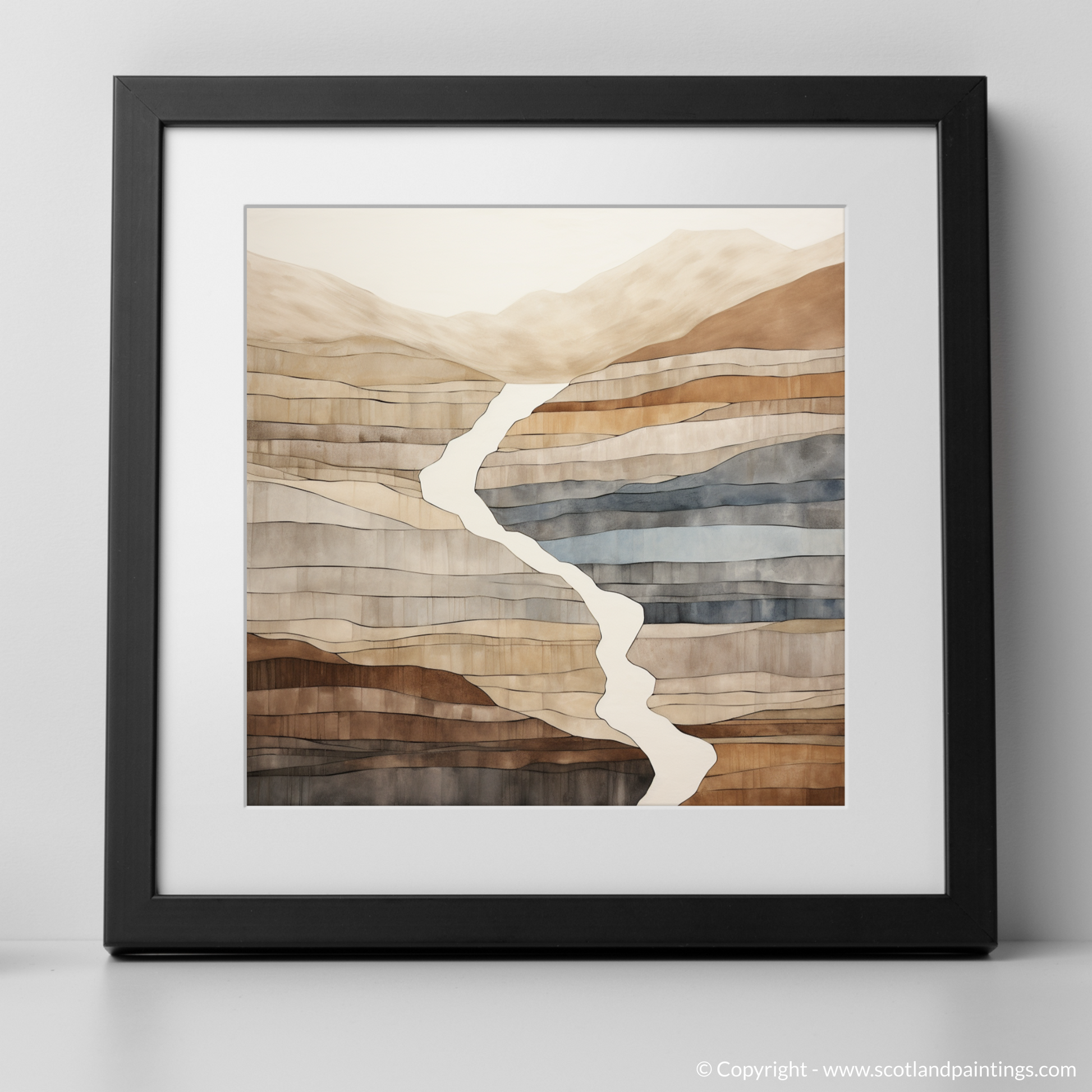 Immerse yourself in the rugged splendour of Scotland's natural landscape with this entrancing abstract depiction of the cascading waters of Eas a' Chual Aluinn, Britain's highest waterfall. This exquisite print captures the essence of the tumbling falls and the powerful tranquillity of the surrounding highlands through a captivating symphony of earthy hues and layered textures.