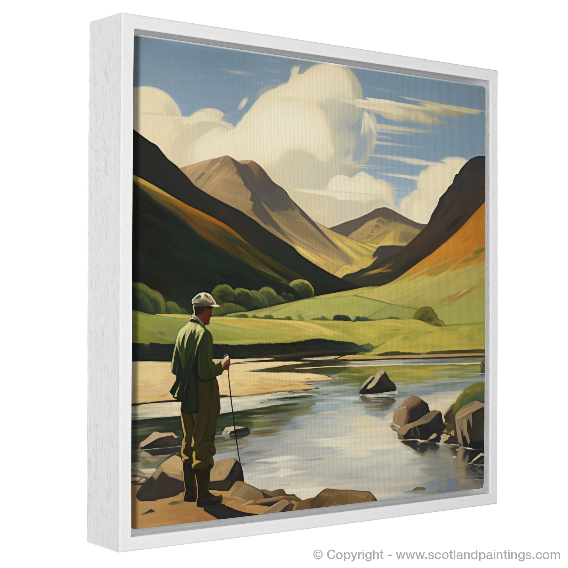 This print belongs to the exclusive 'Scotland Fly Fishing' collection and invites viewers to immerse themselves in a moment of profound calmness and reflection. As a piece of art, it not only depicts a cherished pastime but also embodies the enduring allure of the Scottish wilds. It is a treasure for both the avid angler and the lover of fine landscapes, encapsulating the allure of the wilderness and the solitary pursuit of man in harmony with nature.