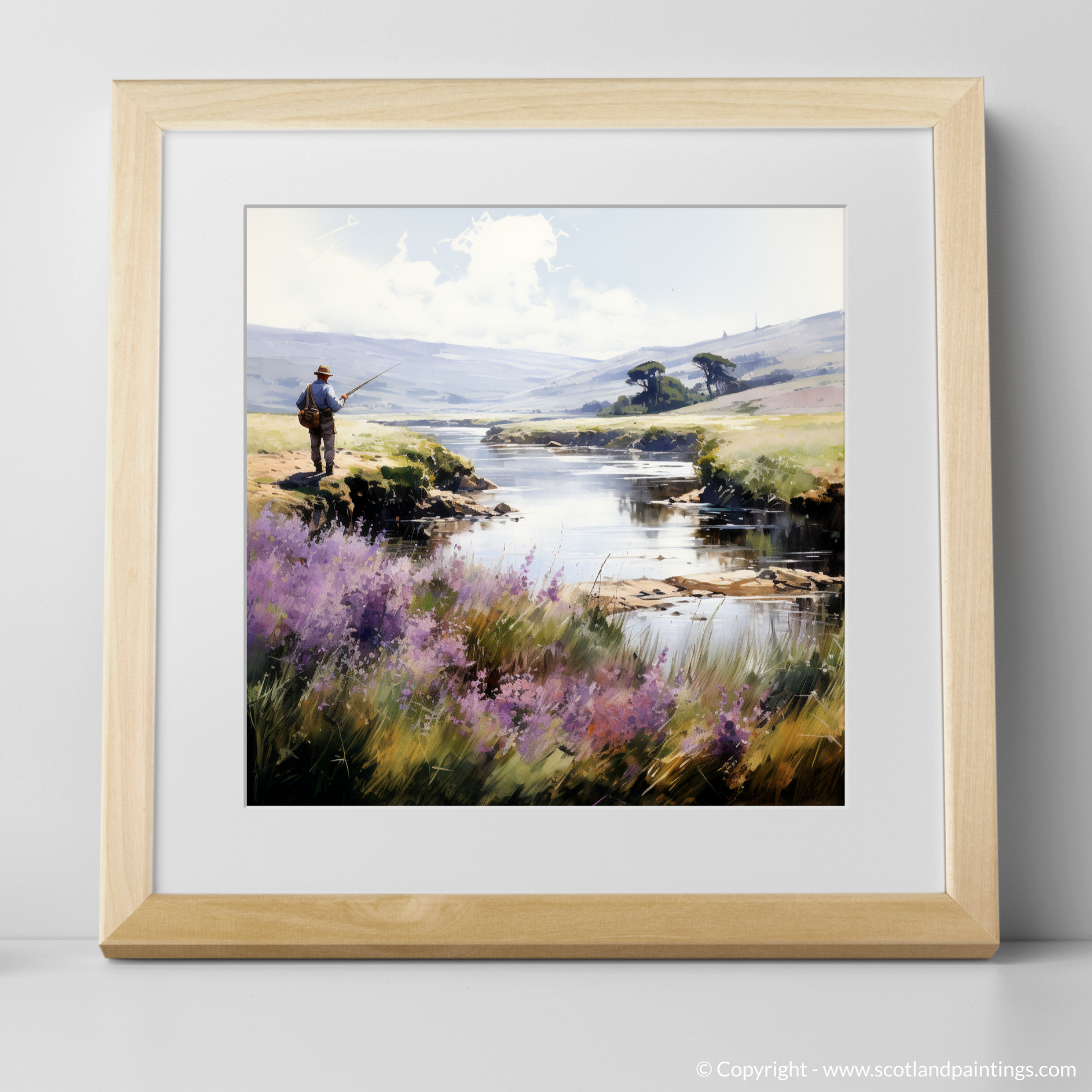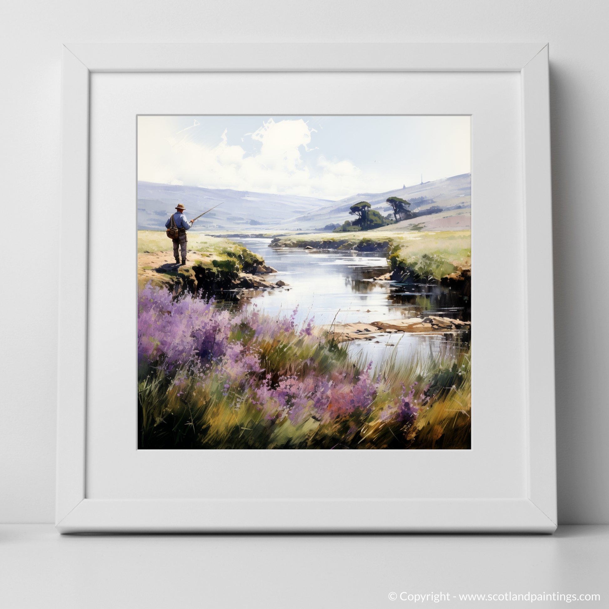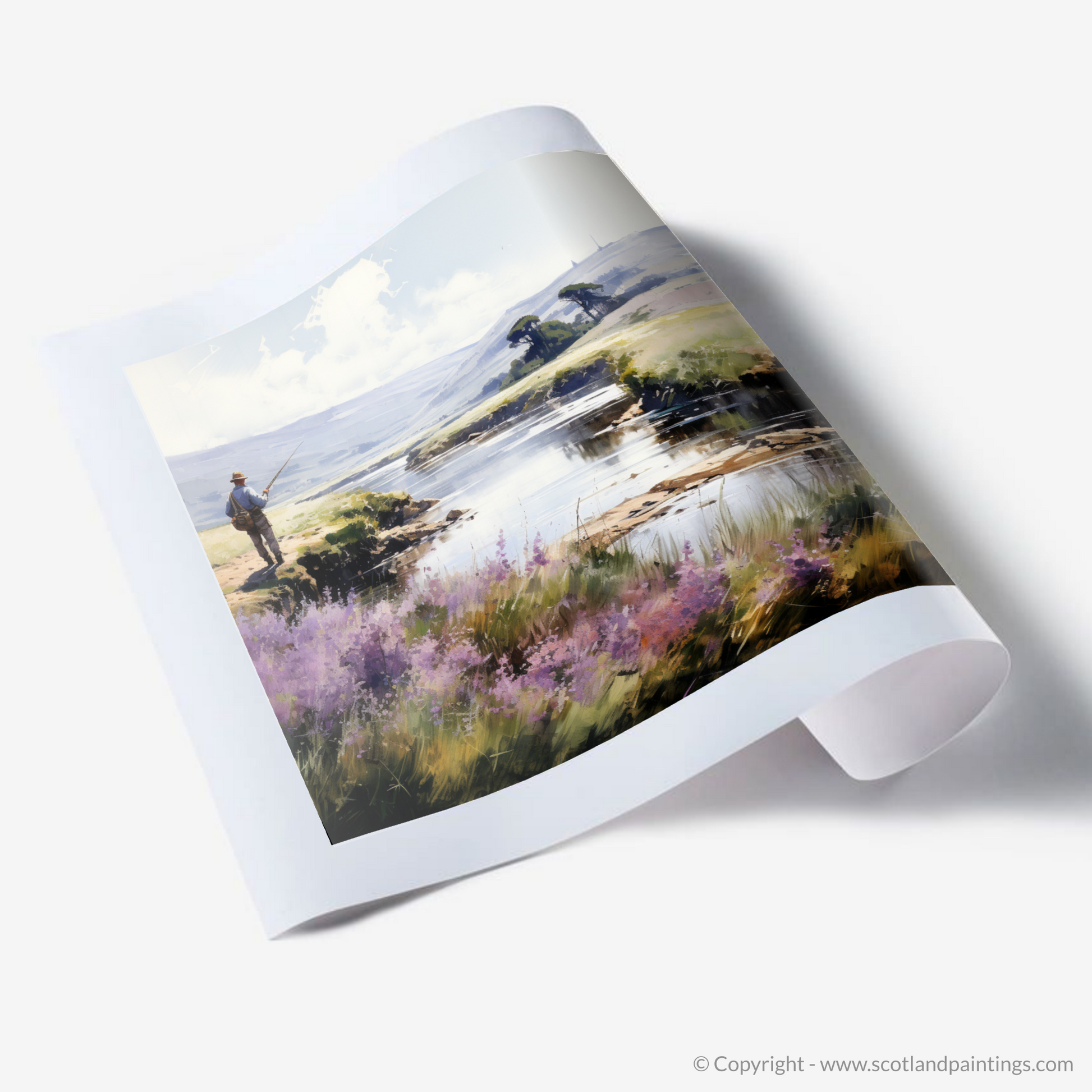 As serene tranquillity meets the vibrant crescendo of the Scottish heather, our evocative print captures the essence of fly fishing along the placid River Conon. The artwork, rooted in the Realism style, draws the beholder into a bucolic scene suffused with the warmth of a highland summer day.