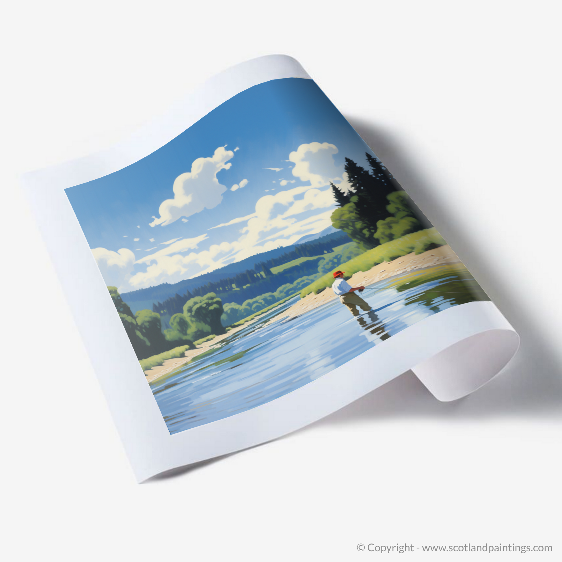 As the sun caresses the rippling surface of the River Findhorn, a lone figure finds solace in the art of fly fishing amidst the captivating beauty of a Scottish summer day. This captivating print from our 'Scotland Fly Fishing' collection embodies the tranquility of an angler at one with nature, rendered in a style that speaks to the very essence of realism.