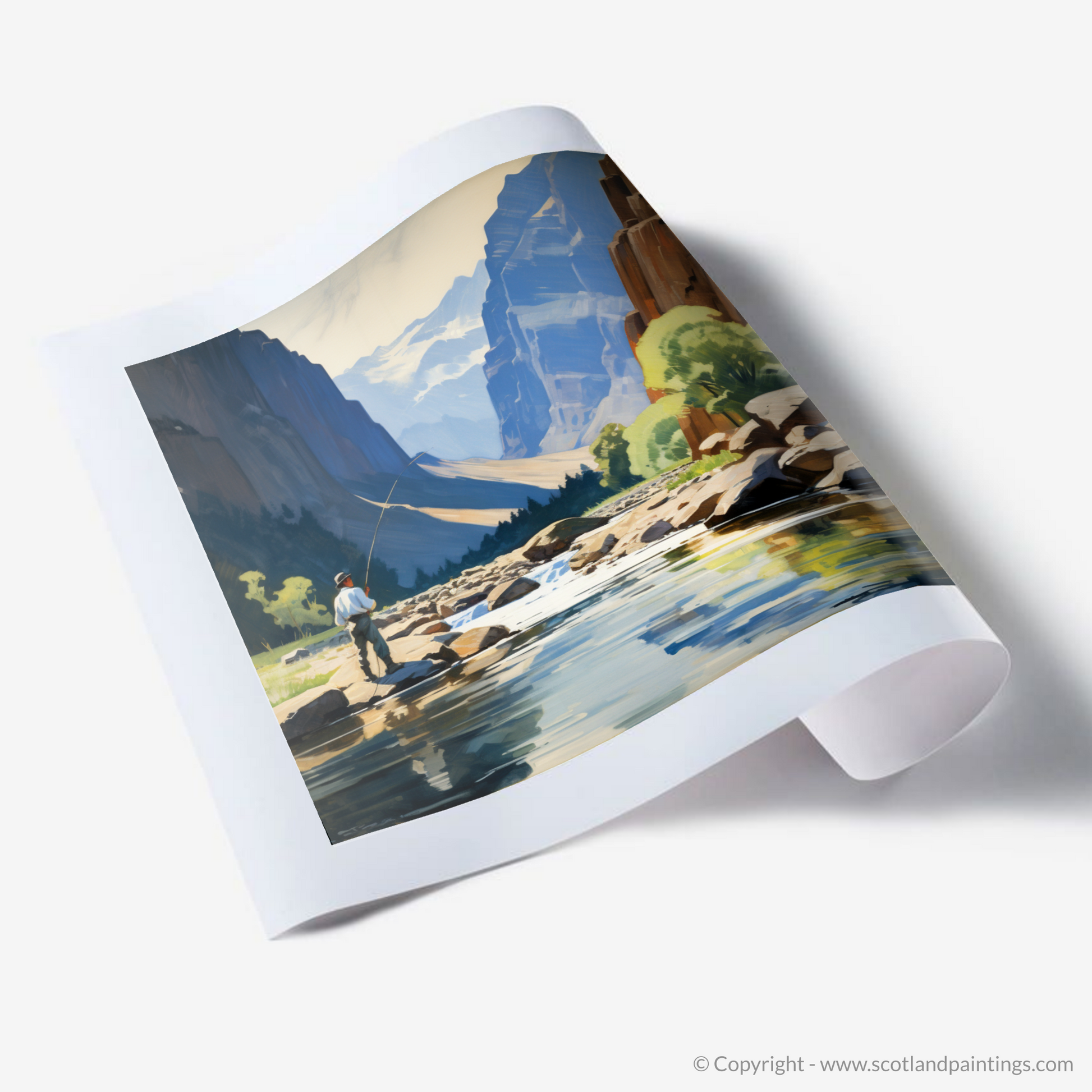 This print, a part of the 'Scotland Fly Fishing' collection, offers not just a view, but an experience—a moment of solitude and peace amidst the splendour of the Scottish highlands. It's an impeccable choice for enthusiasts of fly fishing, admirers of Scottish landscapes, or anyone seeking to bring the meditative beauty of nature into their space.