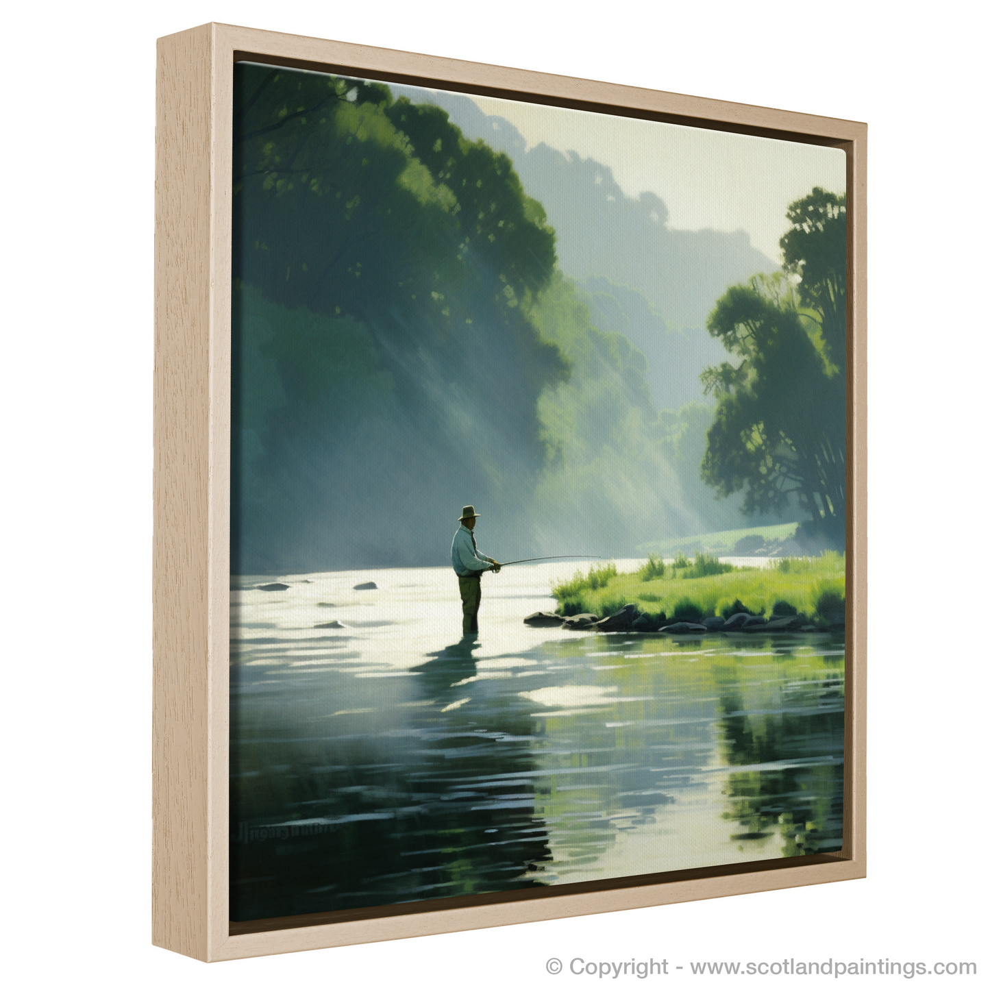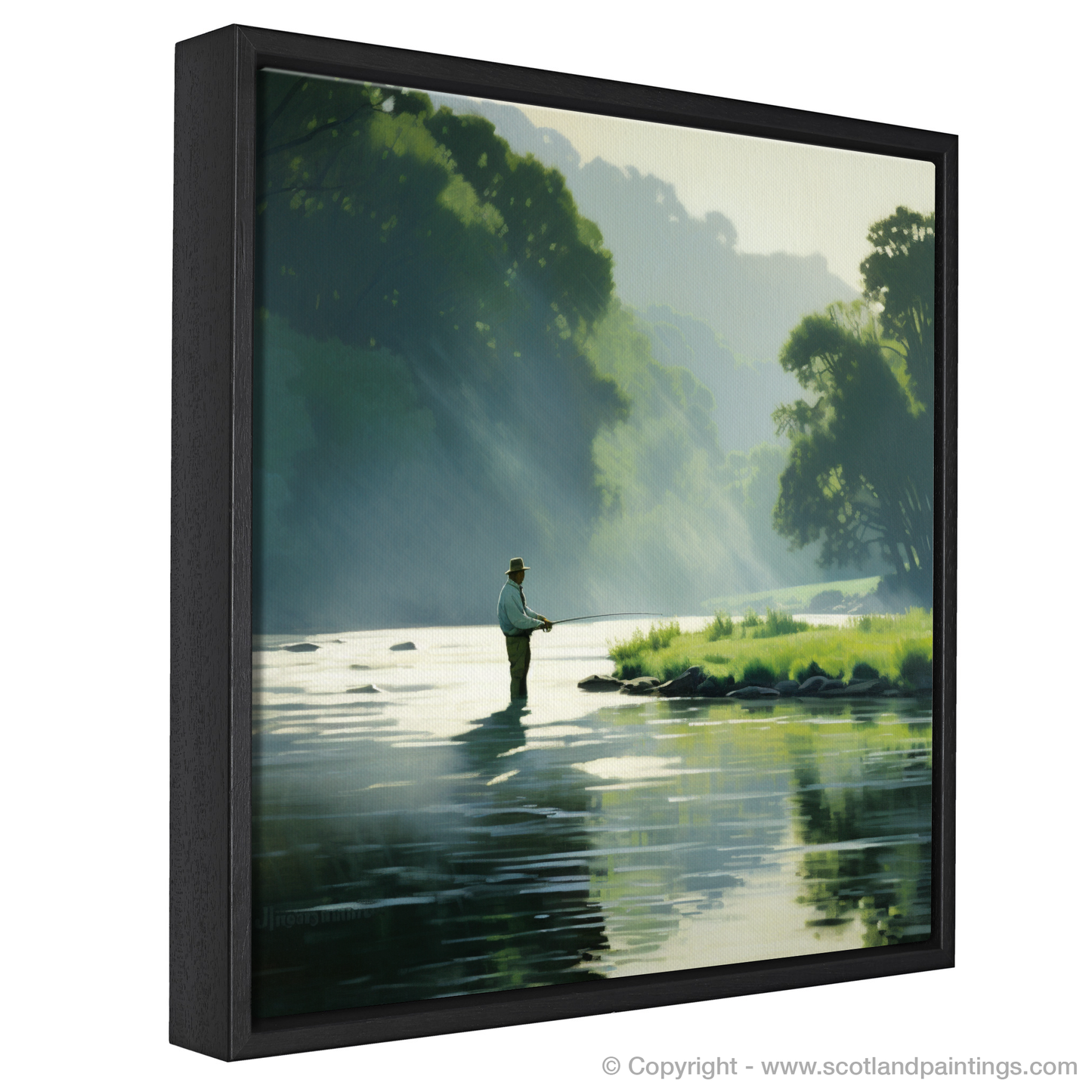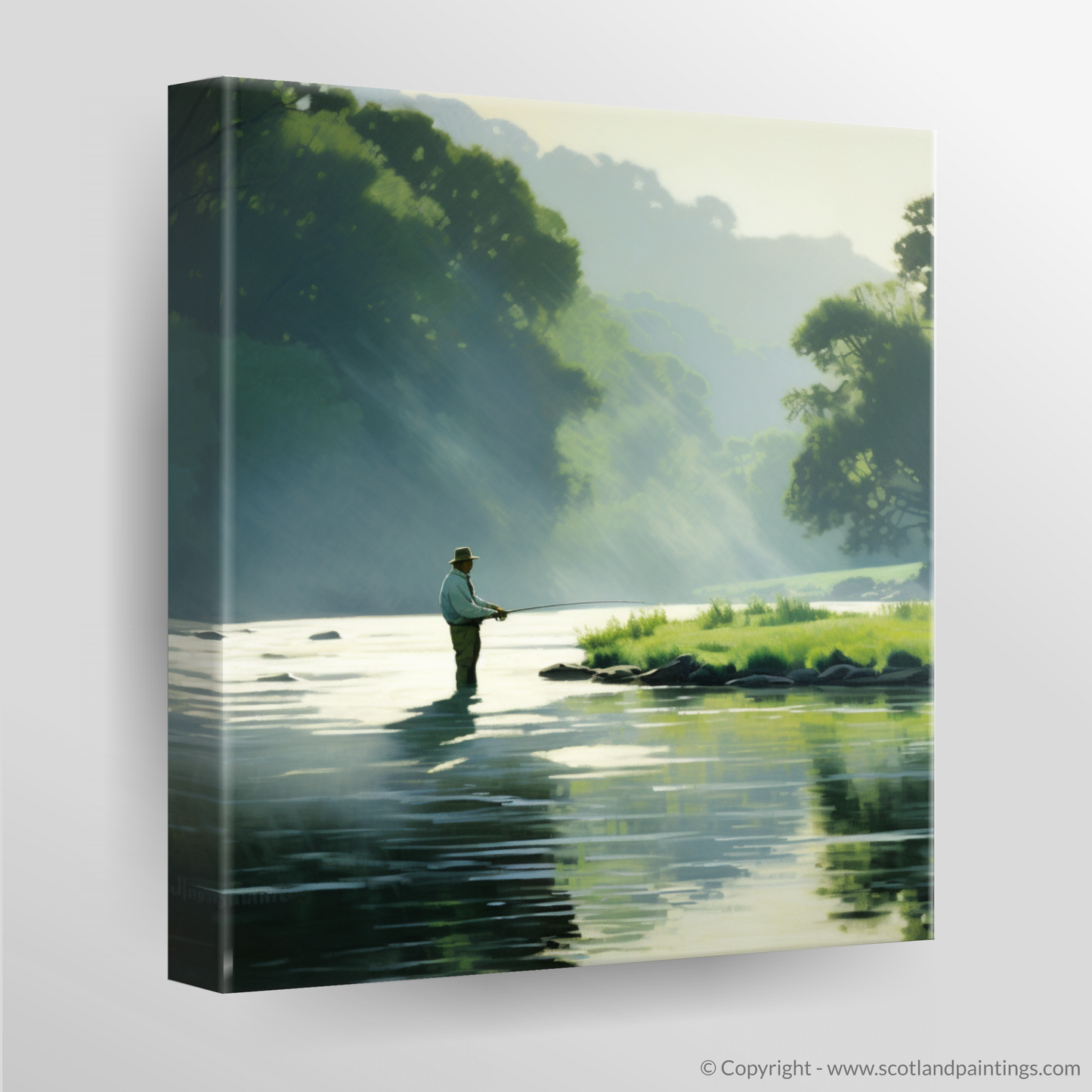 Immerse yourself in the tranquil essence of Scottish fly fishing with this exquisite print, capturing a timeless moment of harmony between man and nature. At first light, the soft hues of dawn gently blanket the River Earn, crafting a scene steeped in peaceful solitude. A lone fisherman, engrossed in the art of fly fishing, stands mid-stream, his silhouette gracefully etched against the calming waters.