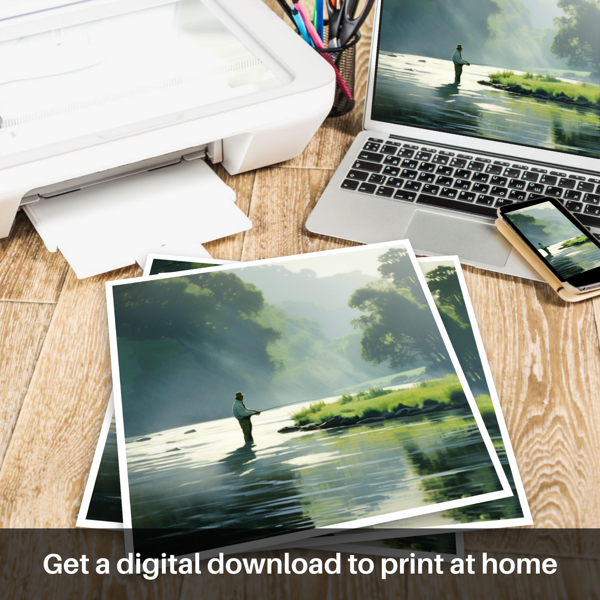 This evocative piece from the 'Scotland Fly Fishing' collection invites viewers to experience the quiet majesty of Scottish outdoors. It beautifully conveys the crisp, fresh air of the early morning and the gentle rhythm of the water, promising to bring a sense of calm and introspection to any space it graces. Whether you are a fishing enthusiast or an admirer of Scottish landscapes, this print is a portal to the sedate beauty of rural Scotland's waterways.