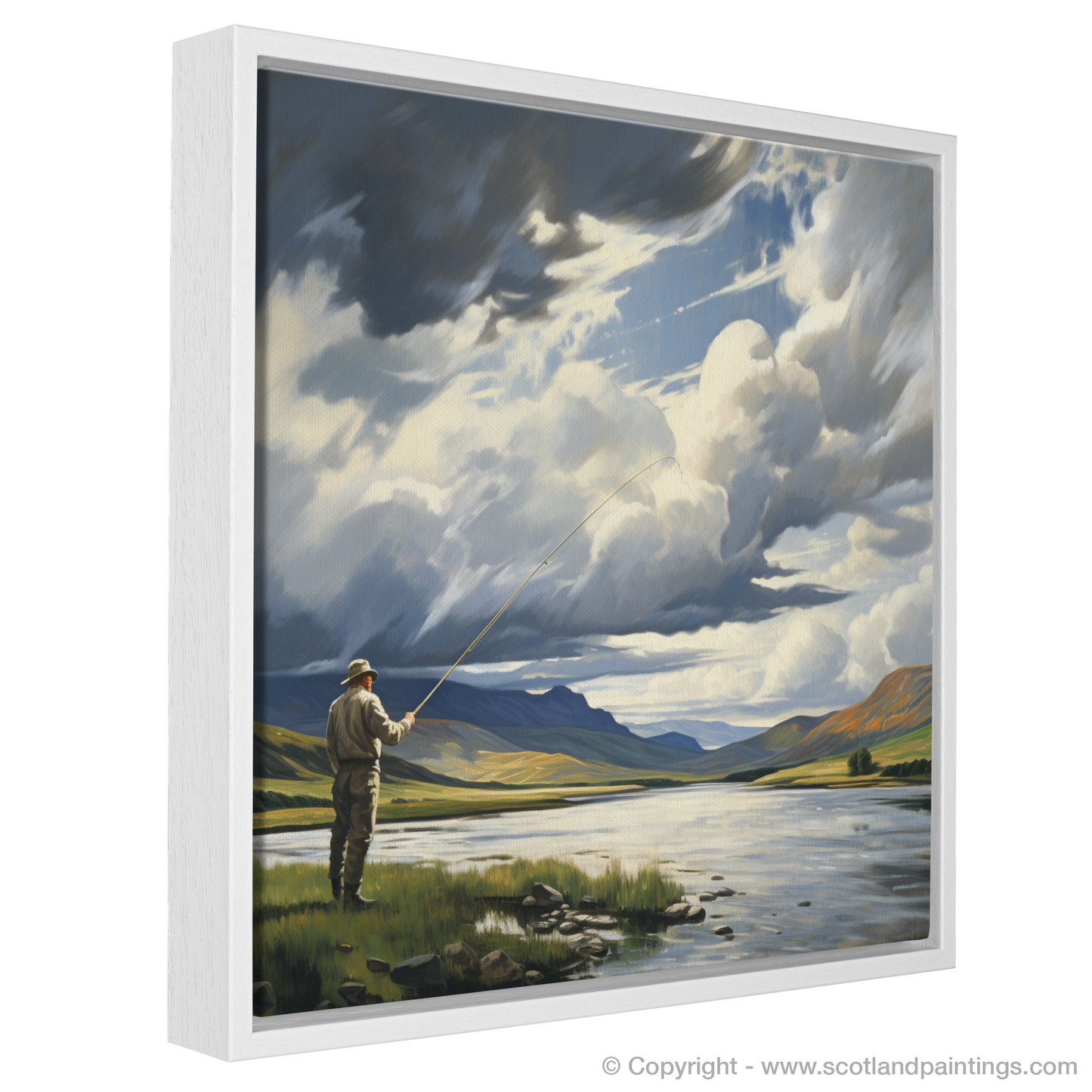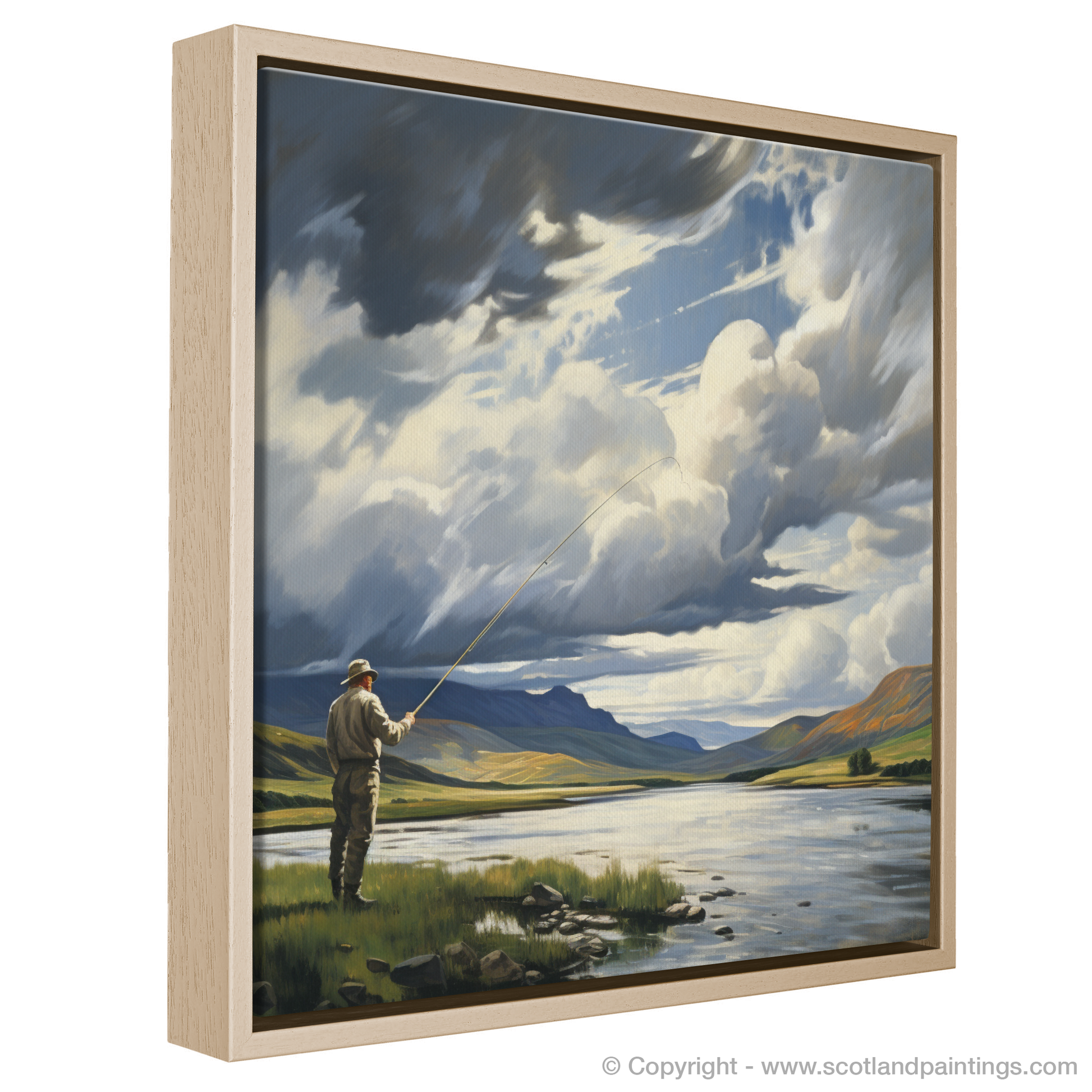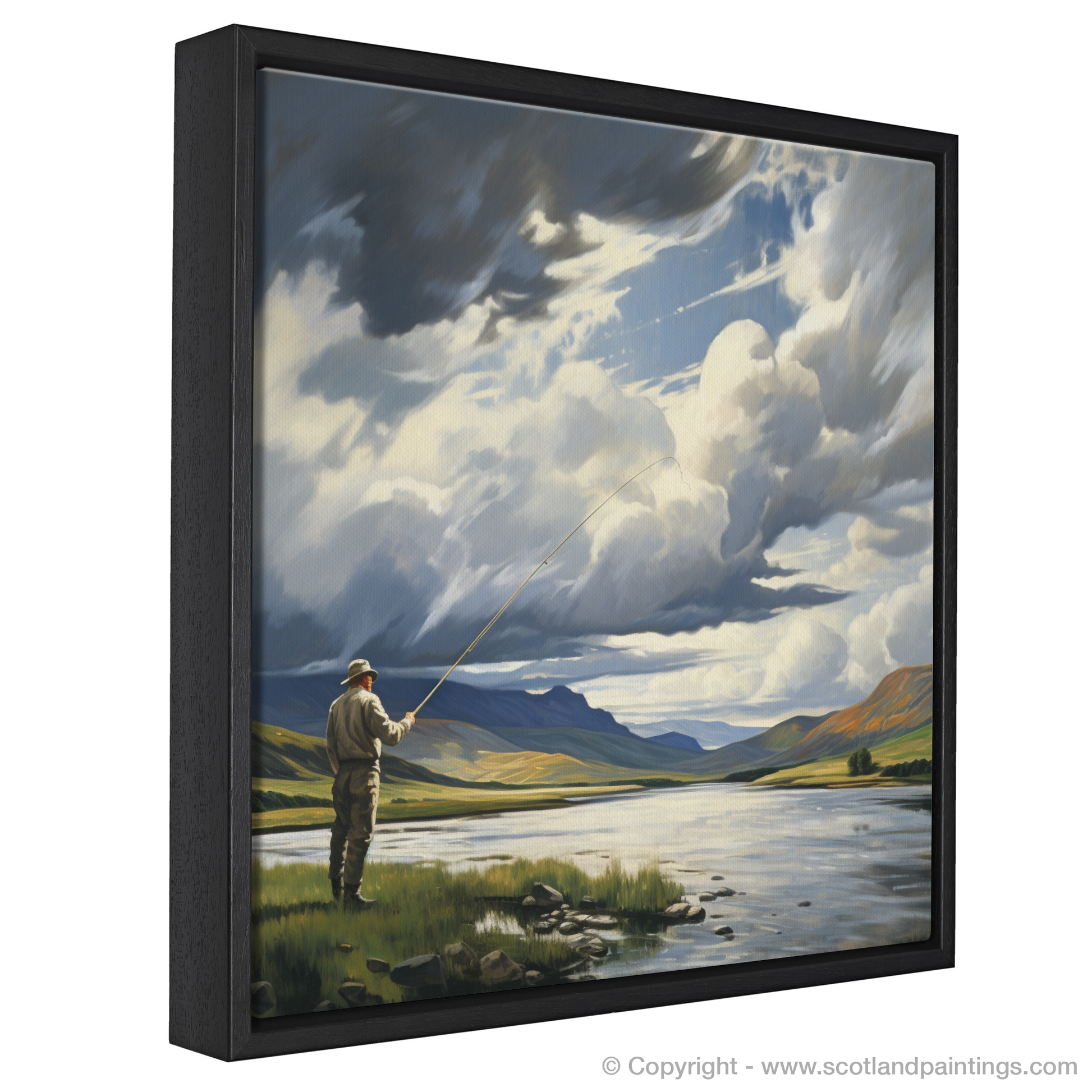Immerse your space with the serene ambiance of the Scottish Highlands with this evocative print. An angler, immersed in the timeless ritual of fly fishing, stands amidst the tranquil waters of Loch Leven. His focus is unyielding as he expertly casts his line under the contemplative expanse of a brooding, cloud-laden sky.