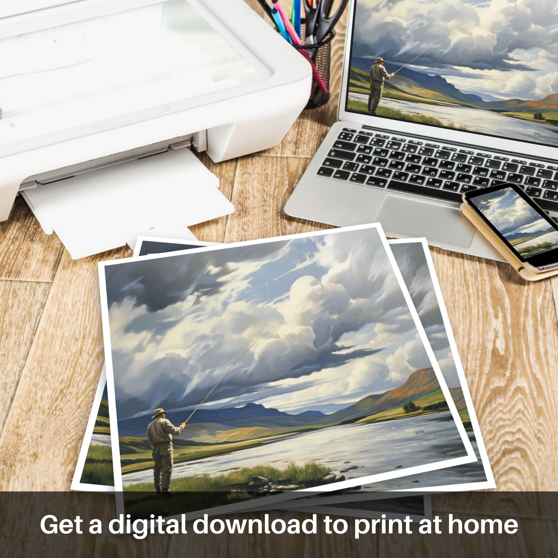 Encapsulating the rugged charm of Scottish outdoors and the meditative sport of fly fishing, this print is a tribute to the raw beauty of nature and a celebration of solitude and reflection. Whether set within a study, living space, or a personal retreat, this piece reverberates with the quiet majesty of Scotland's natural landscapes, inviting viewers to pause and lose themselves in the expanse of the wild.