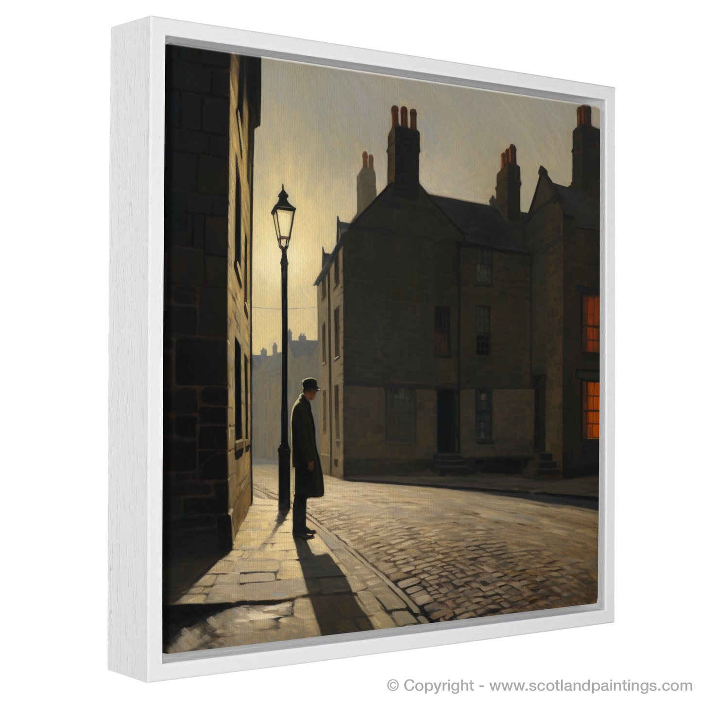 Step into the cobbled quaintness of Dunfermline's old town, artfully captured in an evocative print that brings the mystery and charm of Scottish history to your home. Bathed in the soft, golden glow of a setting sun, this piece depicts a lone figure cloaked in the romance of discovery, pausing in the shadow of timeless architecture.