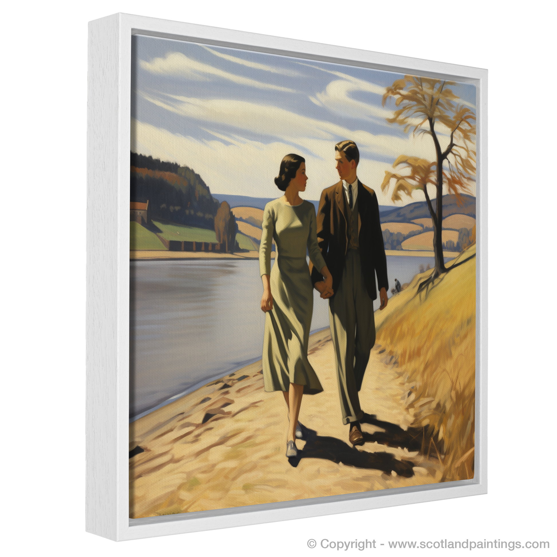 Embrace the serene beauty of Scotland with this exquisite print, capturing the timeless romance of a couple's leisurely walk along the picturesque banks of the River Tay. The painting is a splendid example of Realism, meticulously depicting the smallest details in a way that brings the scene to life.
