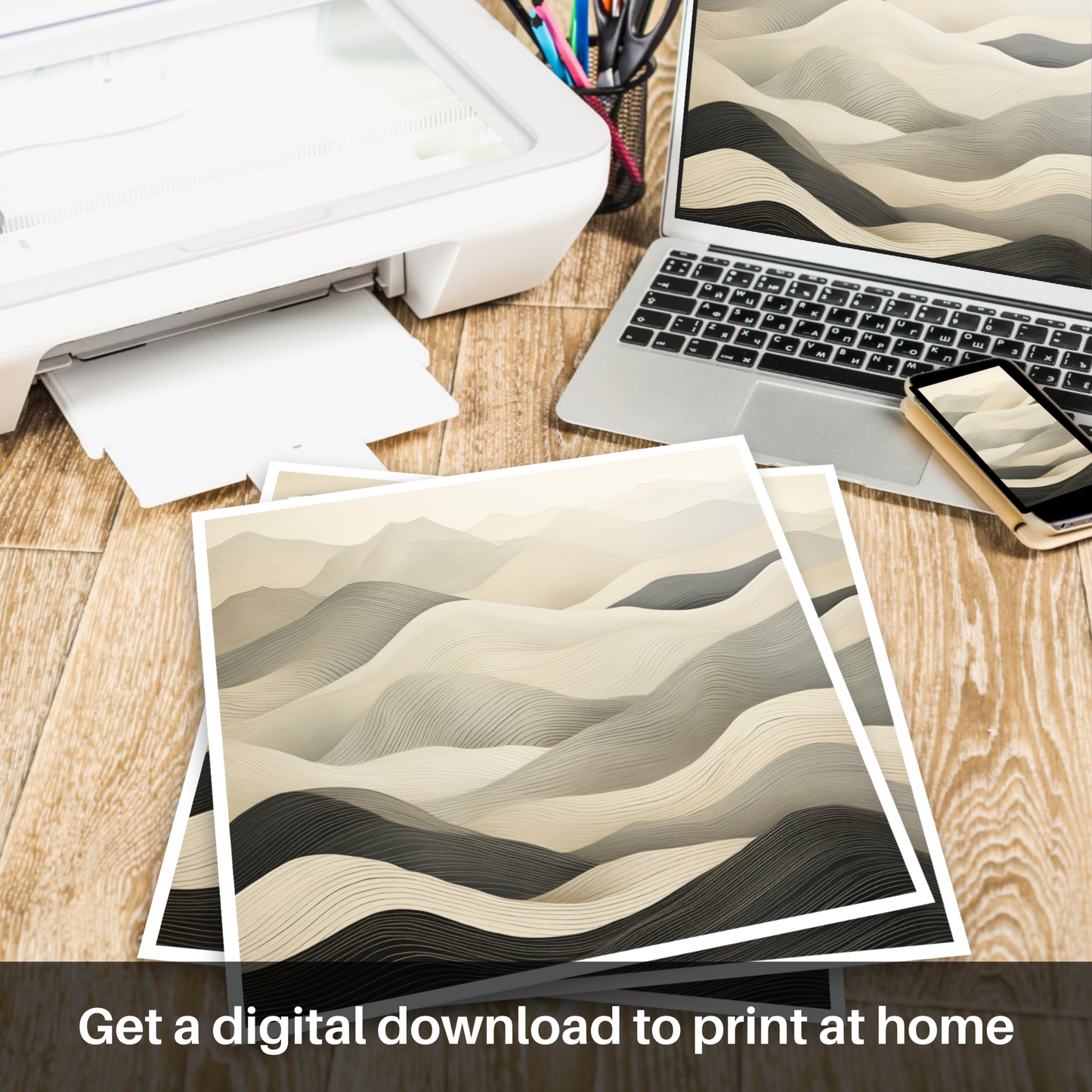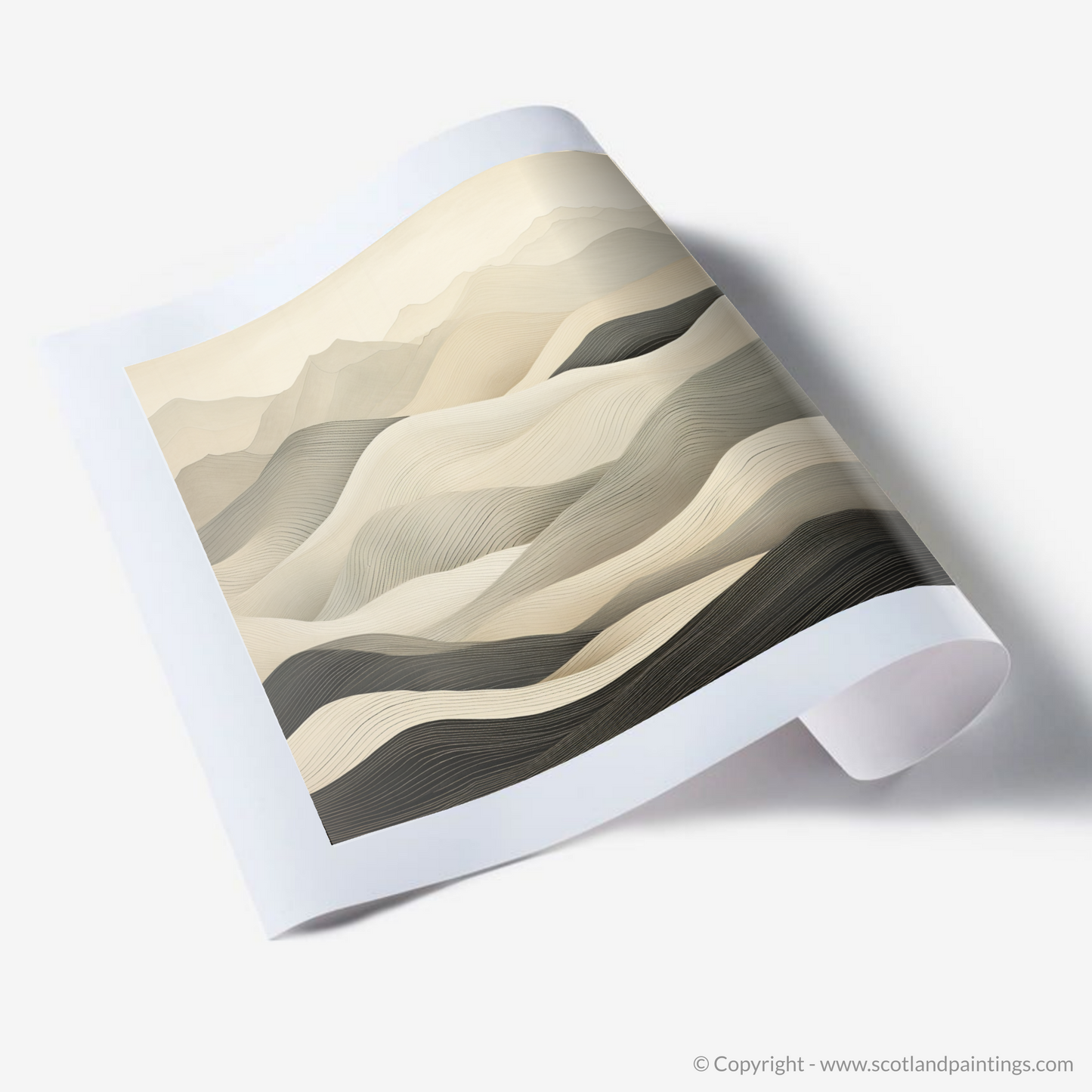 Immerse yourself in a realm where the essence of Scotland's Aonach Eagach is reimagined through the medium of abstract artistry. A symphony of undulating lines and delicate hues culminates in a masterpiece that captures the rugged beauty of the Highlands in an unexpected form. The intricacy of the print invites the observer to traverse the Scottish mountains through a distinctive lens where each curve and shade articulates a piece of the grandeur of this storied landscape.