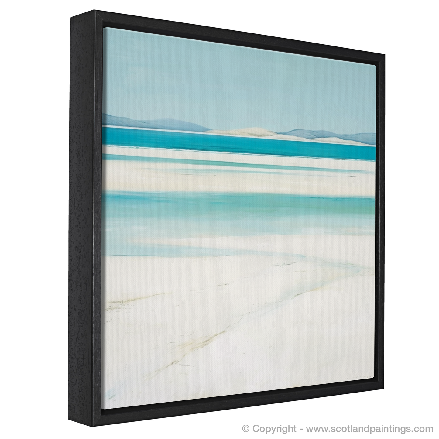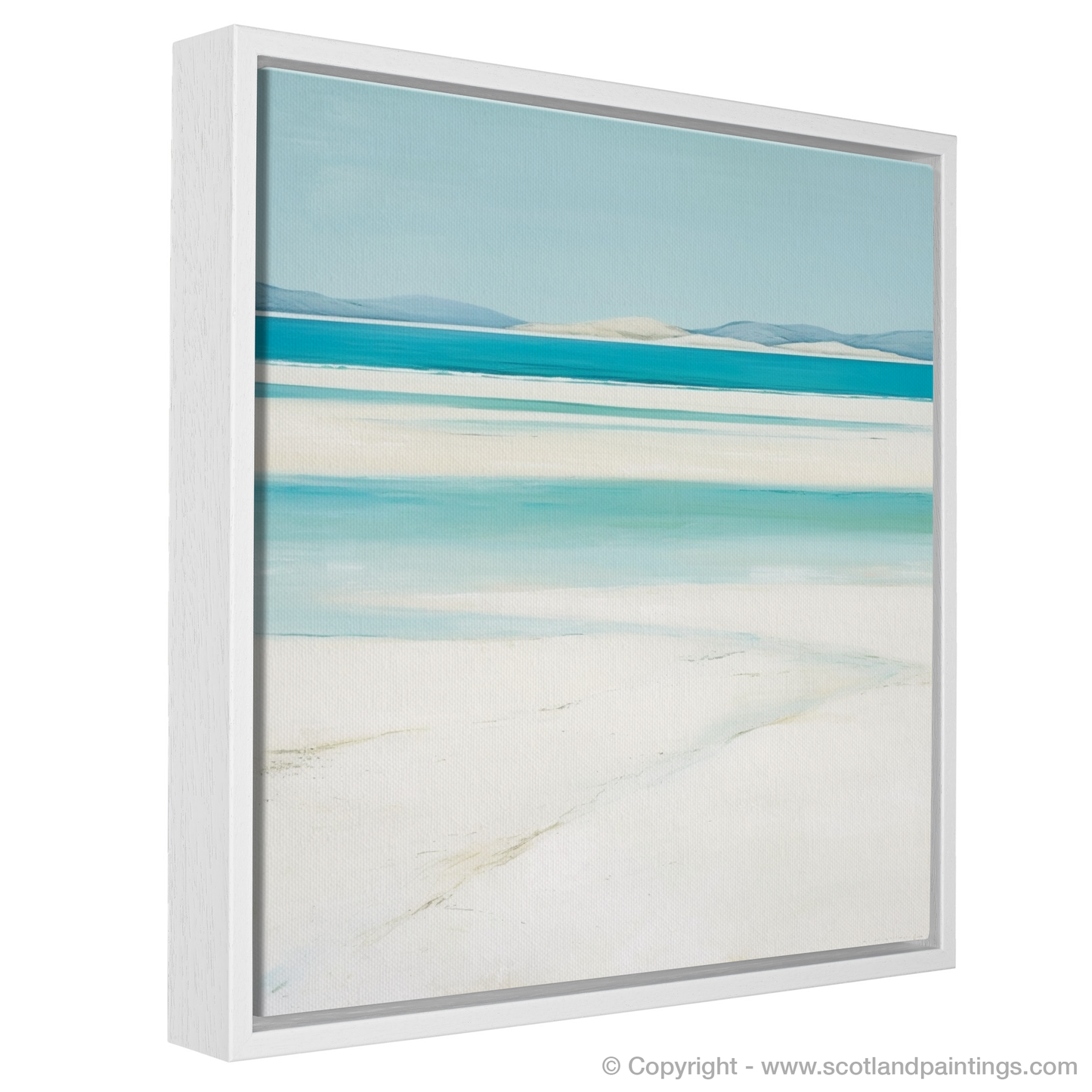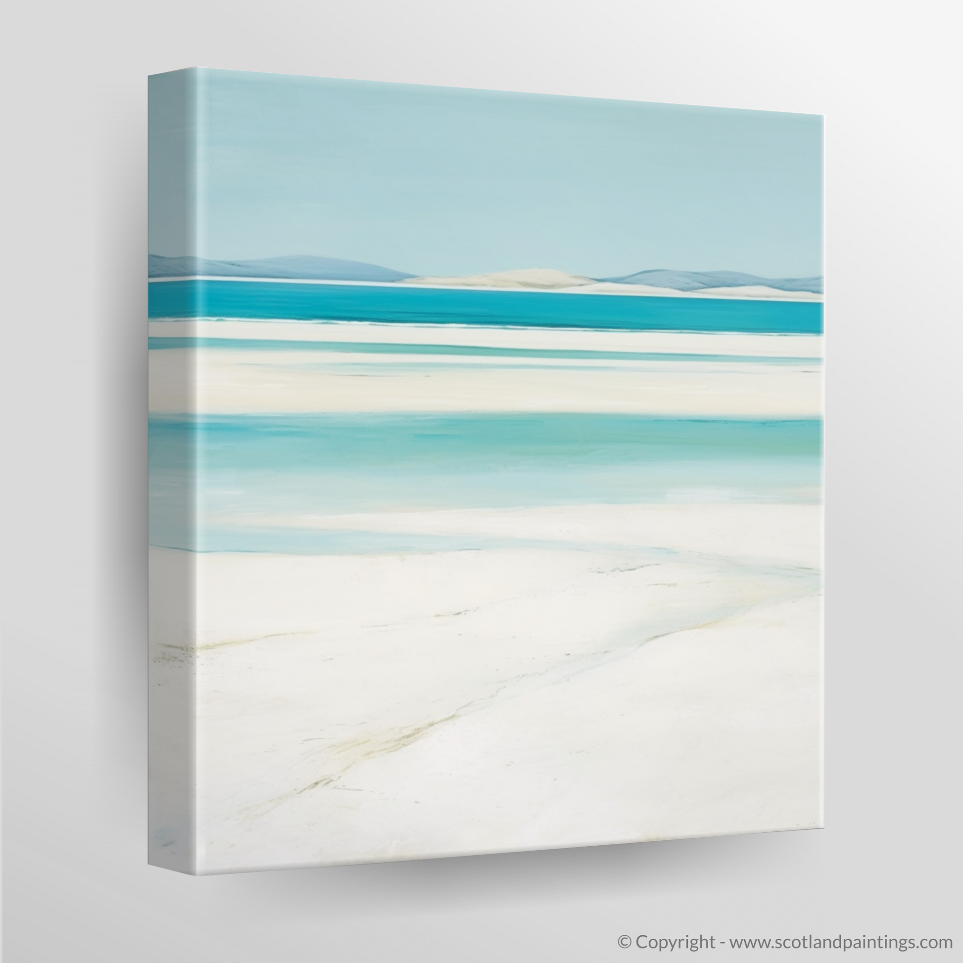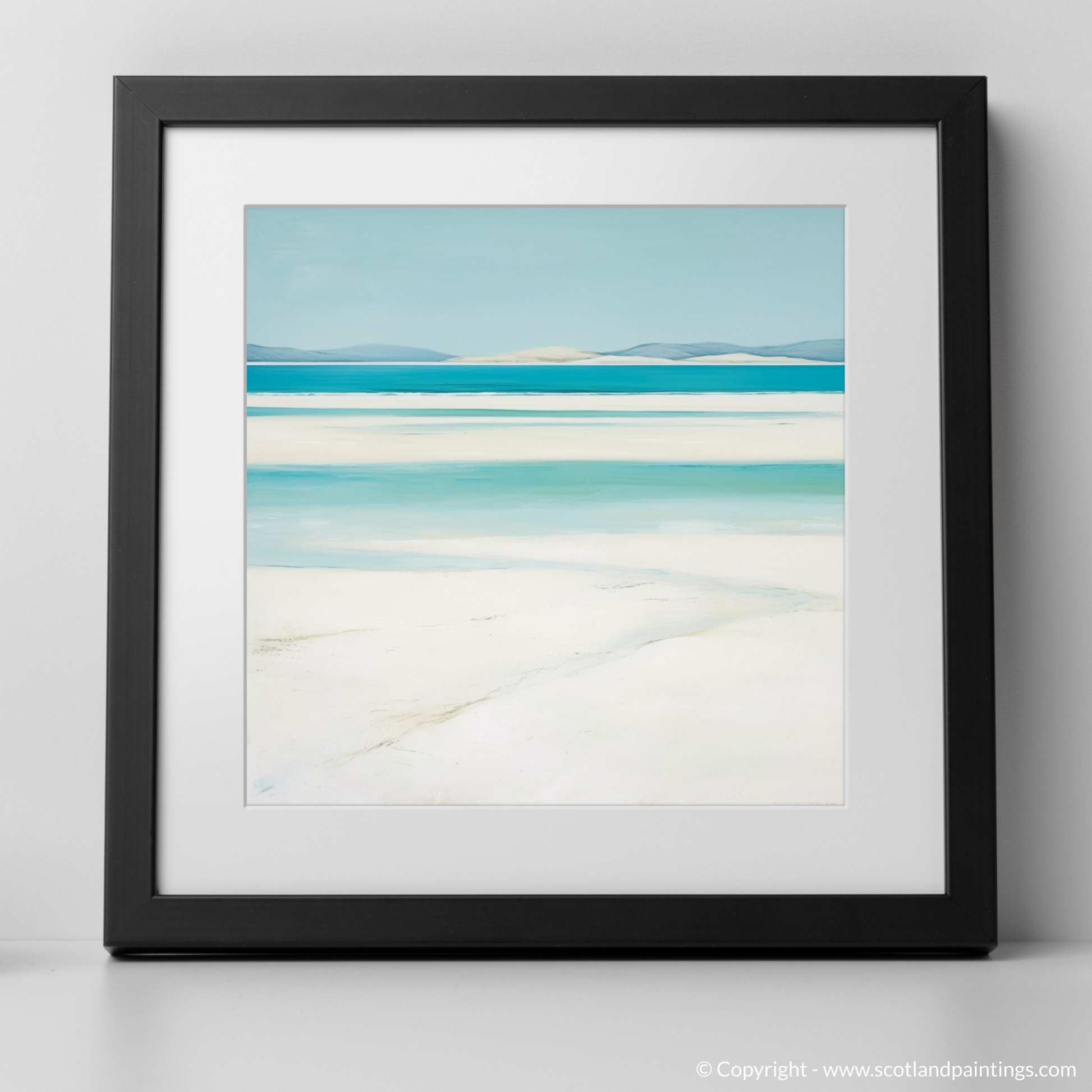 Immerse yourself in the serene beauty of Scotland's rugged coastline with this evocative abstract print, influenced by the pristine sands and tranquil waters of Traigh Mhor on the Isle of Barra. This exquisite piece showcases a harmonious blend of cool blues, turquoise, and a spectrum of creamy whites, reminiscent of the mesmerising interplay between the sky, sea, and shore.