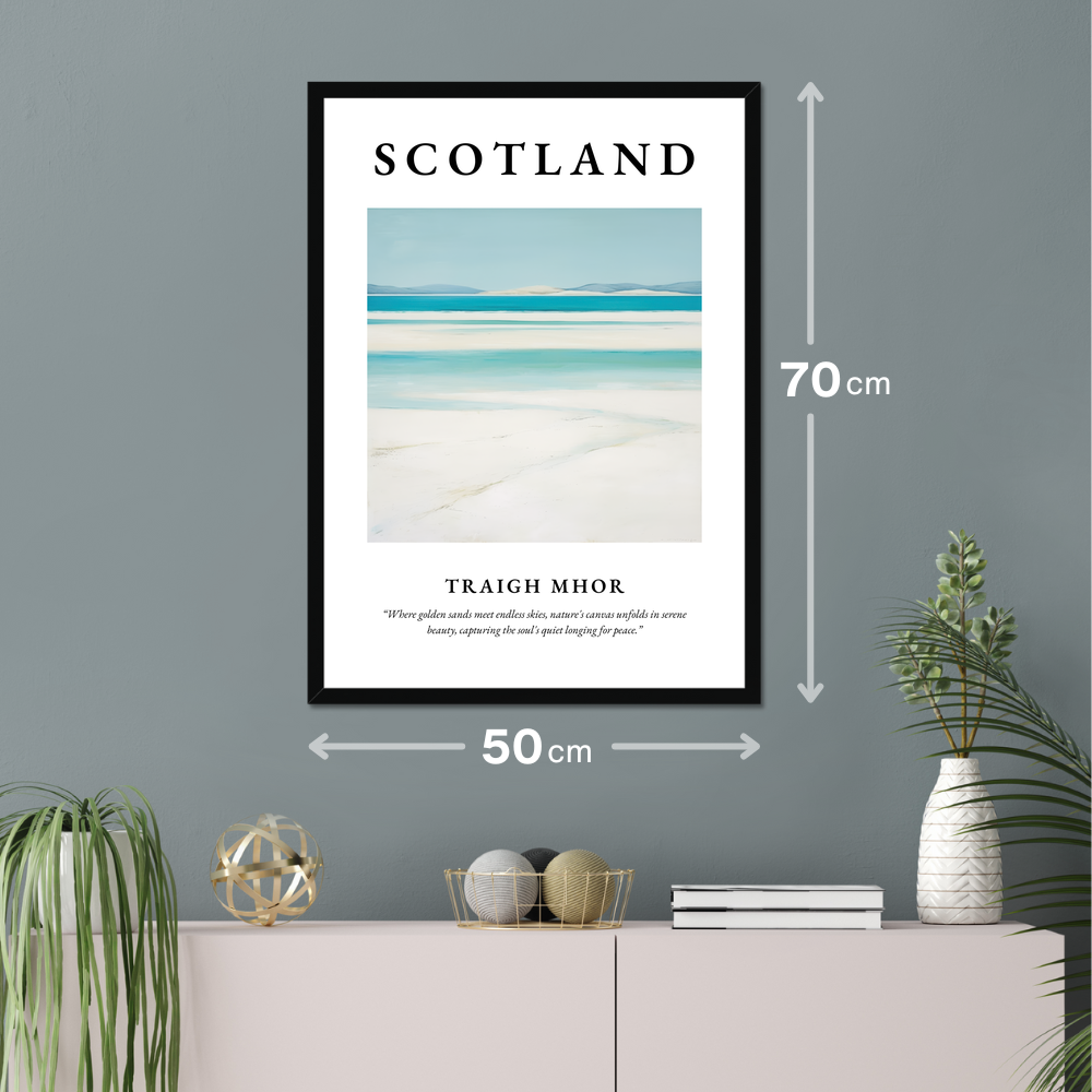 Immerse yourself in the timeless beauty of Scotland with our stunning framed poster print, measuring an impressive 50cm x 70cm. This exquisite piece effortlessly captures the essence of Traigh Mhor, a renowned beach in Scotland, through its abstract and evocative style. An ideal choice for art enthusiasts and those with a connection to this majestic locale, this poster can transform any space into a serene haven.
