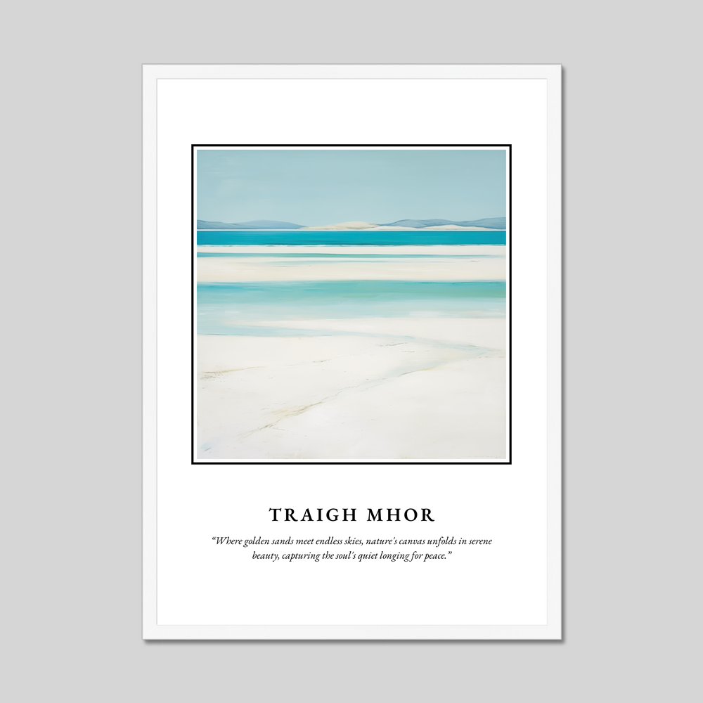 Bringing our framed poster of Traigh Mhor into your home serves as a daily reminder of Scotland's stunning coastal charm, a piece of art that not only celebrates but also preserves the legacy of one of the world’s most remarkable beaches.