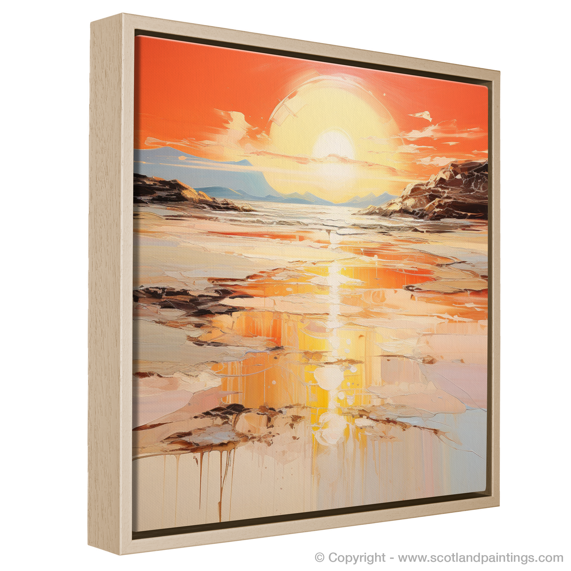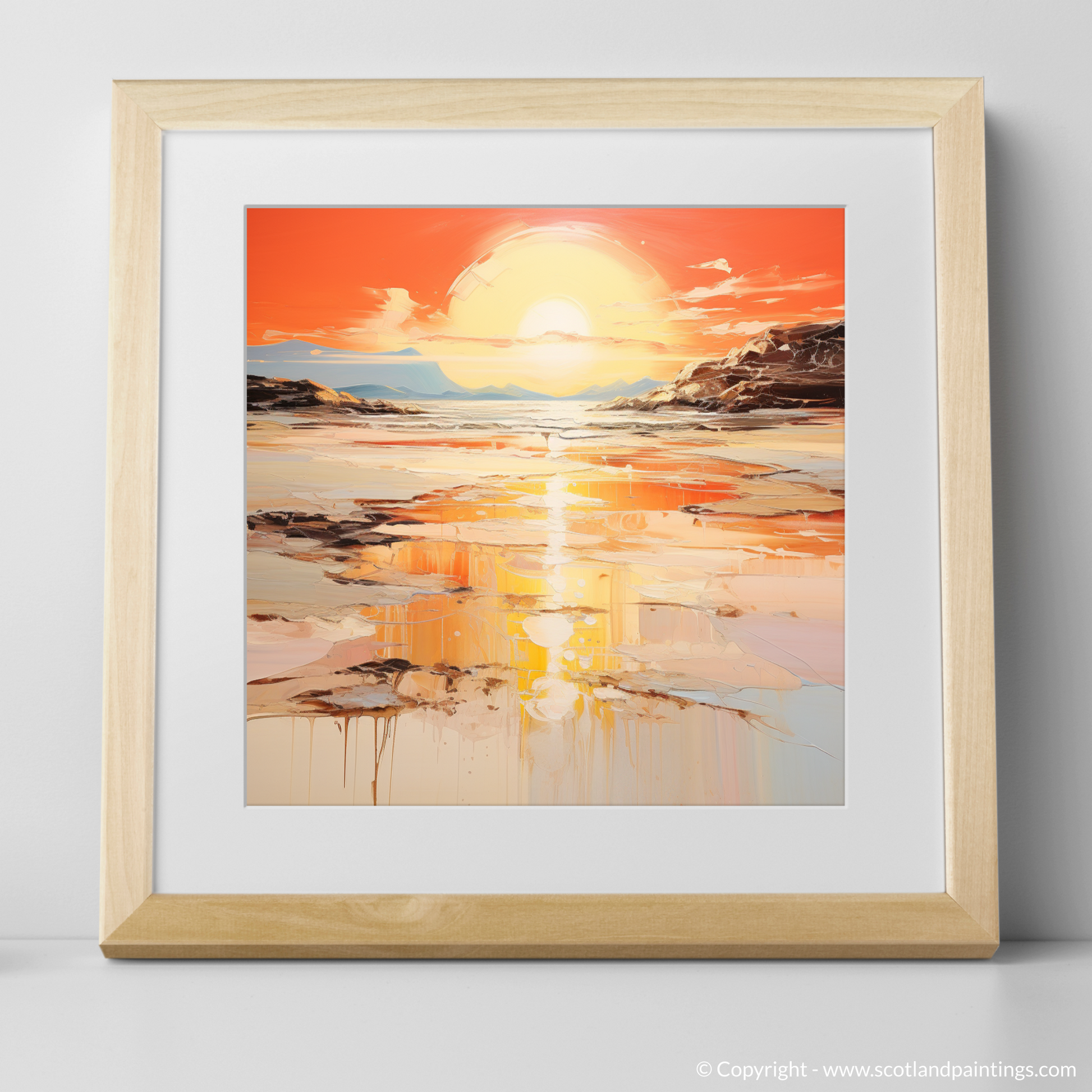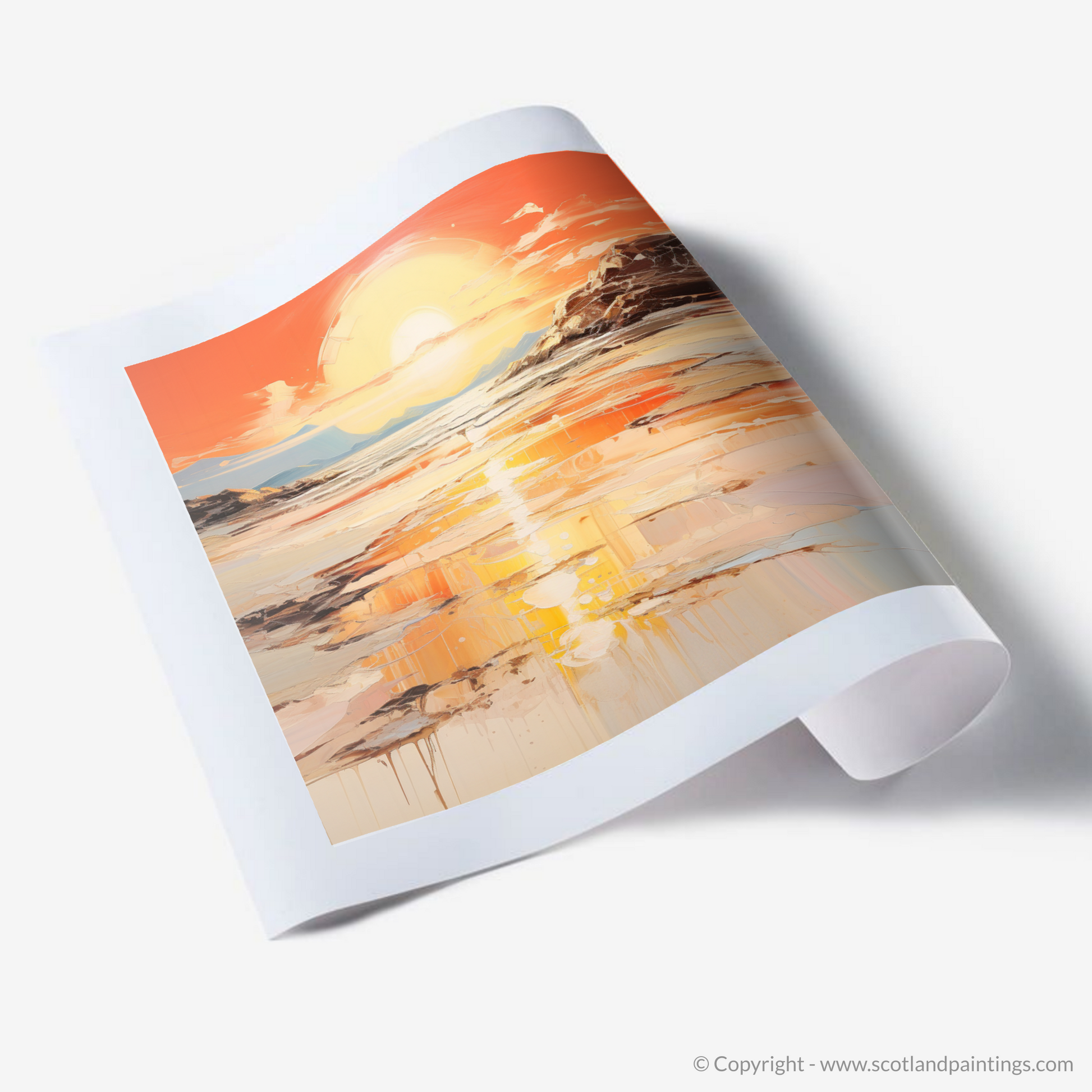 Fluid strokes and drips of paint add an organic feel to the composition, suggesting motion and the passage of time, inviting viewers to lose themselves in reflections both literal and metaphorical. This print promises to be a transcendent addition to any space, inviting the onlooker to a moment of serene contemplation, as if standing on the shores of Kiloran Bay itself, witnessing the day's last light.