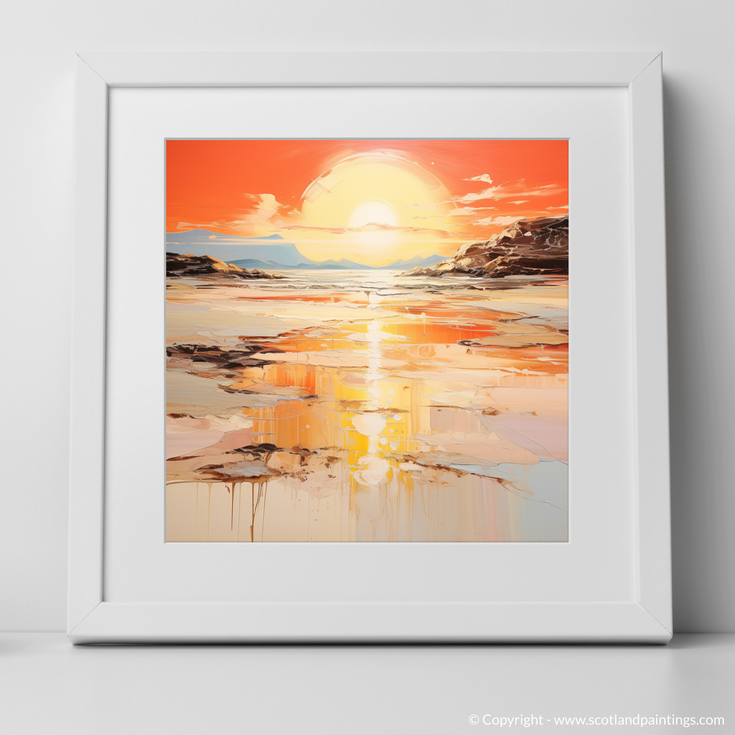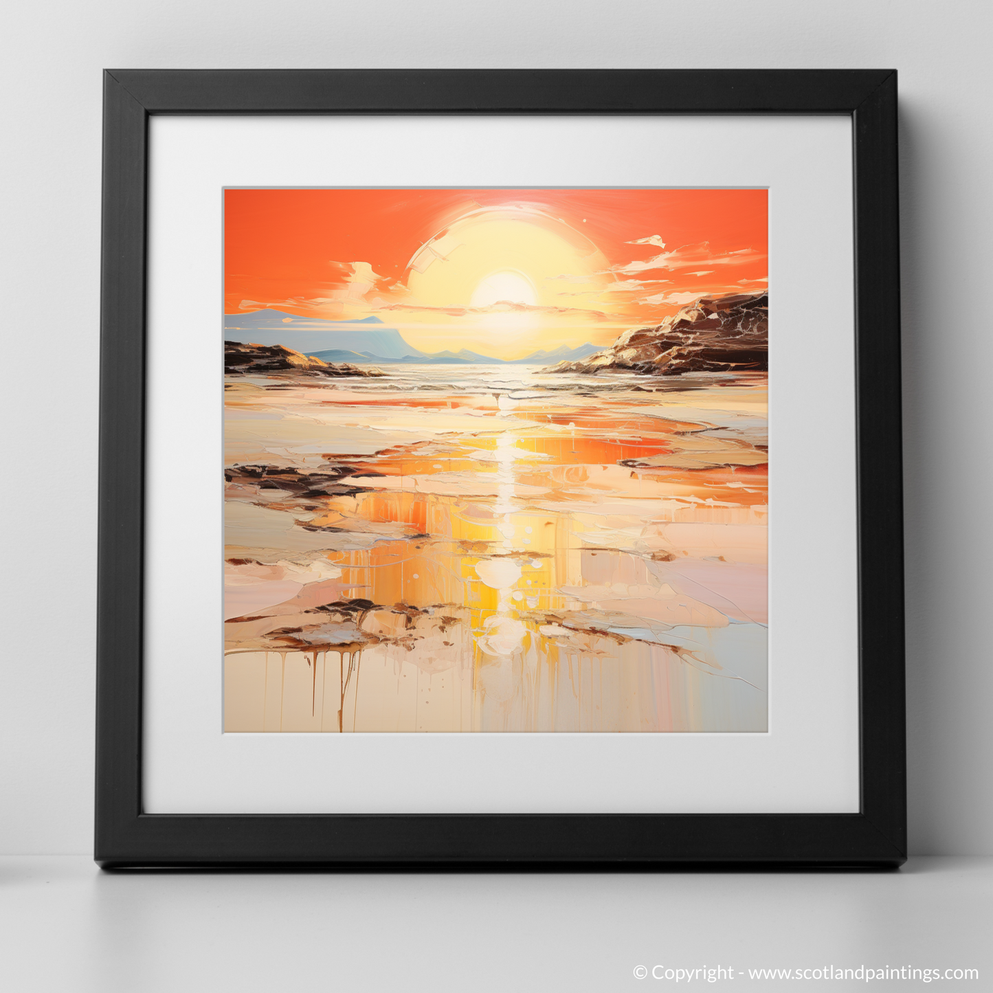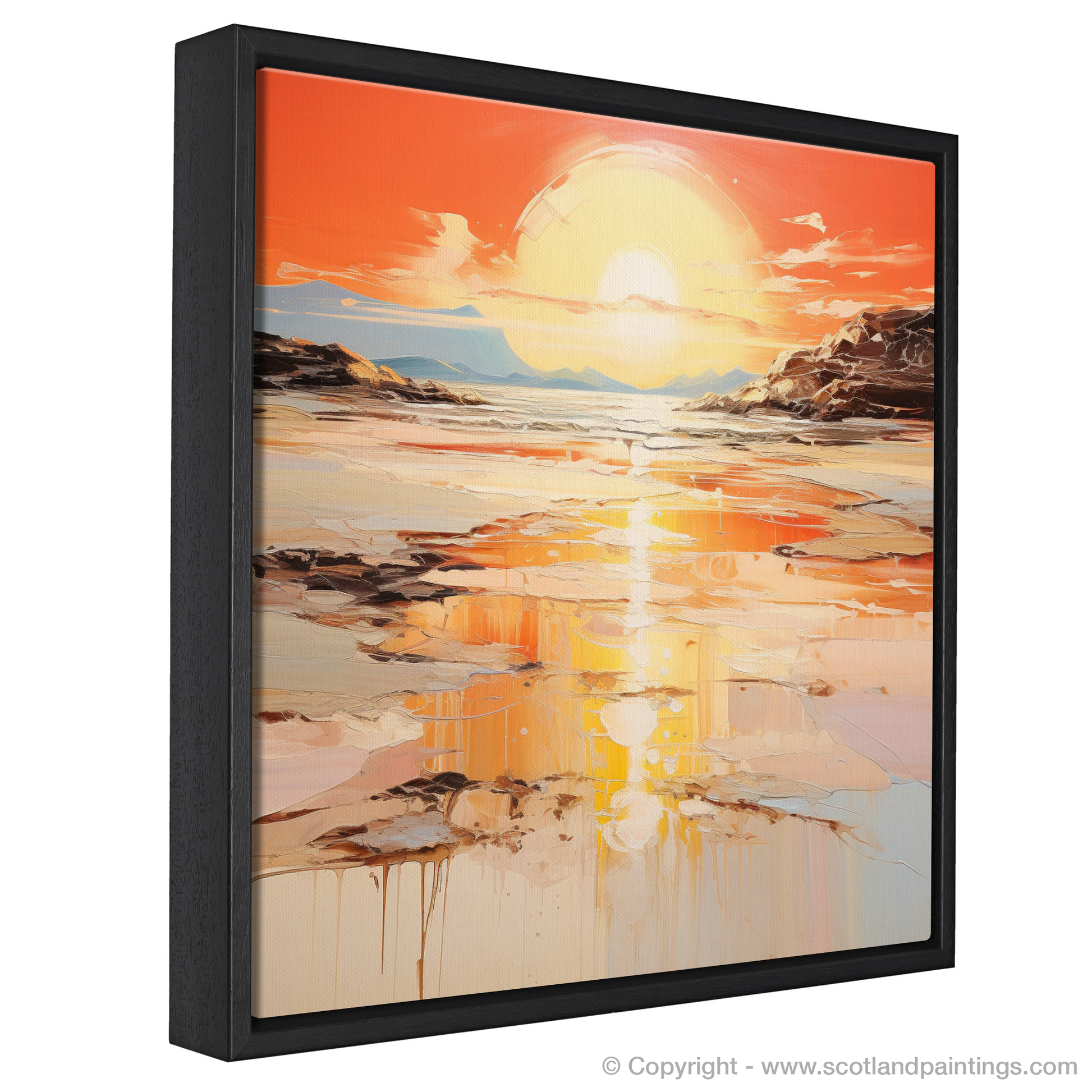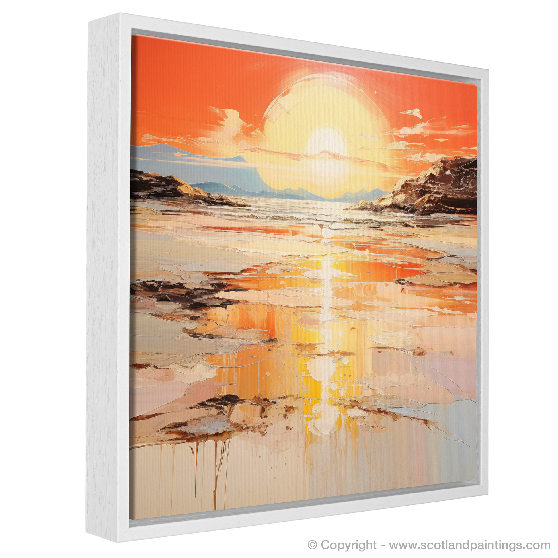 Fluid strokes and drips of paint add an organic feel to the composition, suggesting motion and the passage of time, inviting viewers to lose themselves in reflections both literal and metaphorical. This print promises to be a transcendent addition to any space, inviting the onlooker to a moment of serene contemplation, as if standing on the shores of Kiloran Bay itself, witnessing the day's last light.