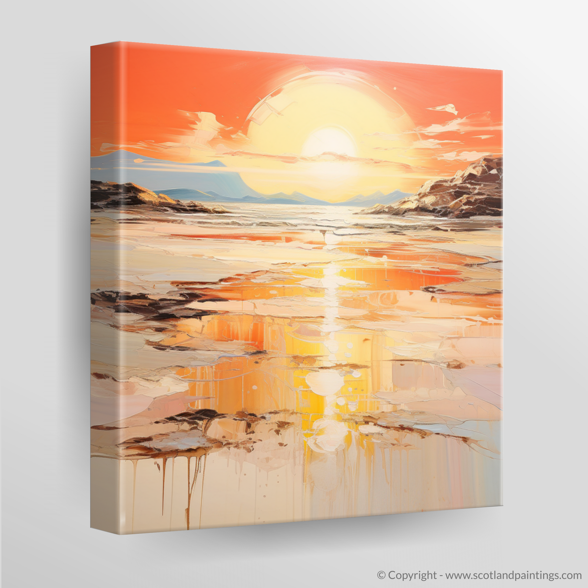 Immerse yourself in the captivating essence of Kiloran Bay at the most enchanting time of day with this abstract masterpiece. The print designs a vivid tableau that encapsulates the ethereal beauty of a Scottish cove bathed in the amber glow of the golden hour.