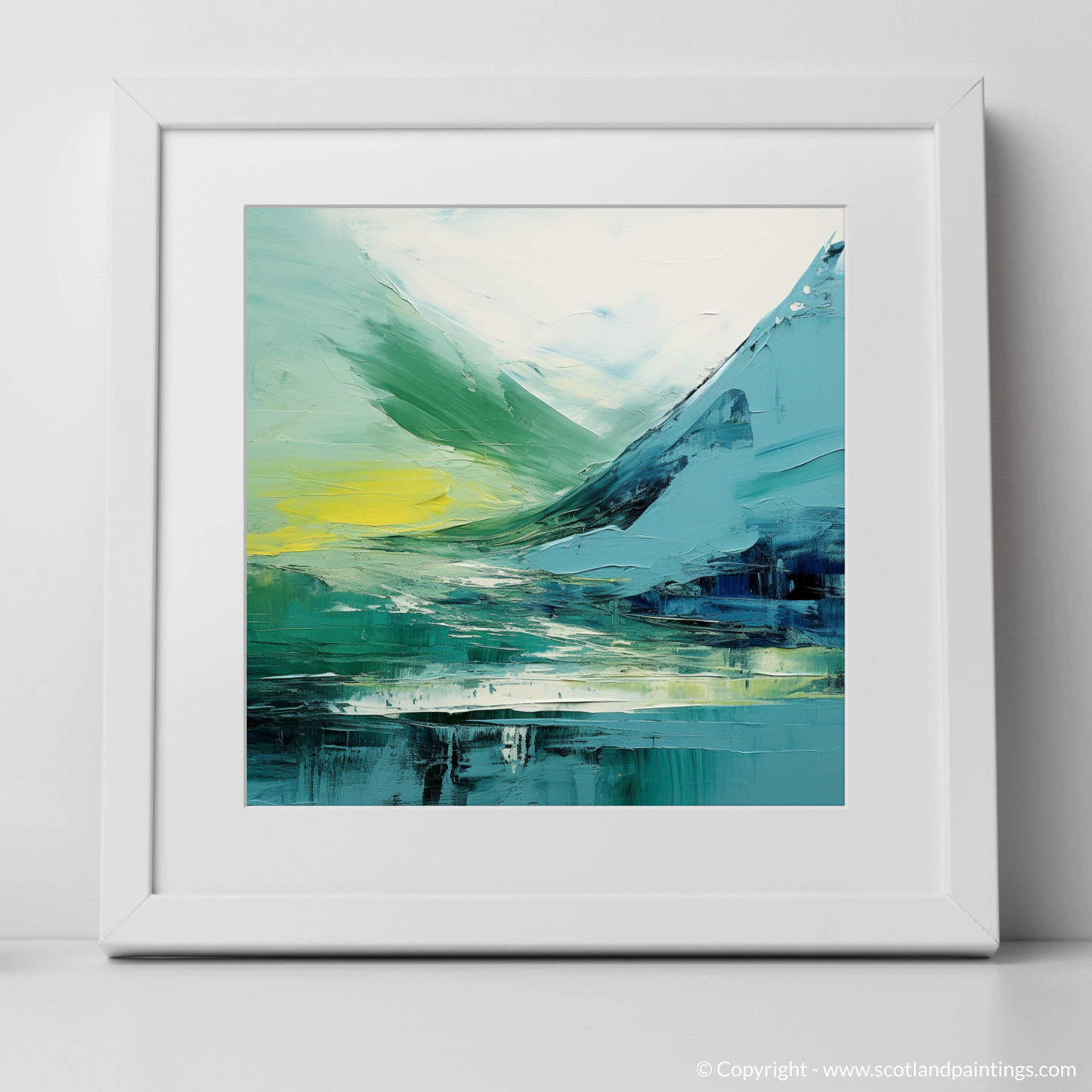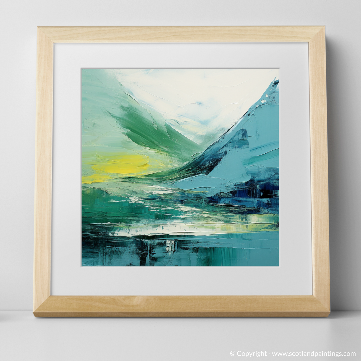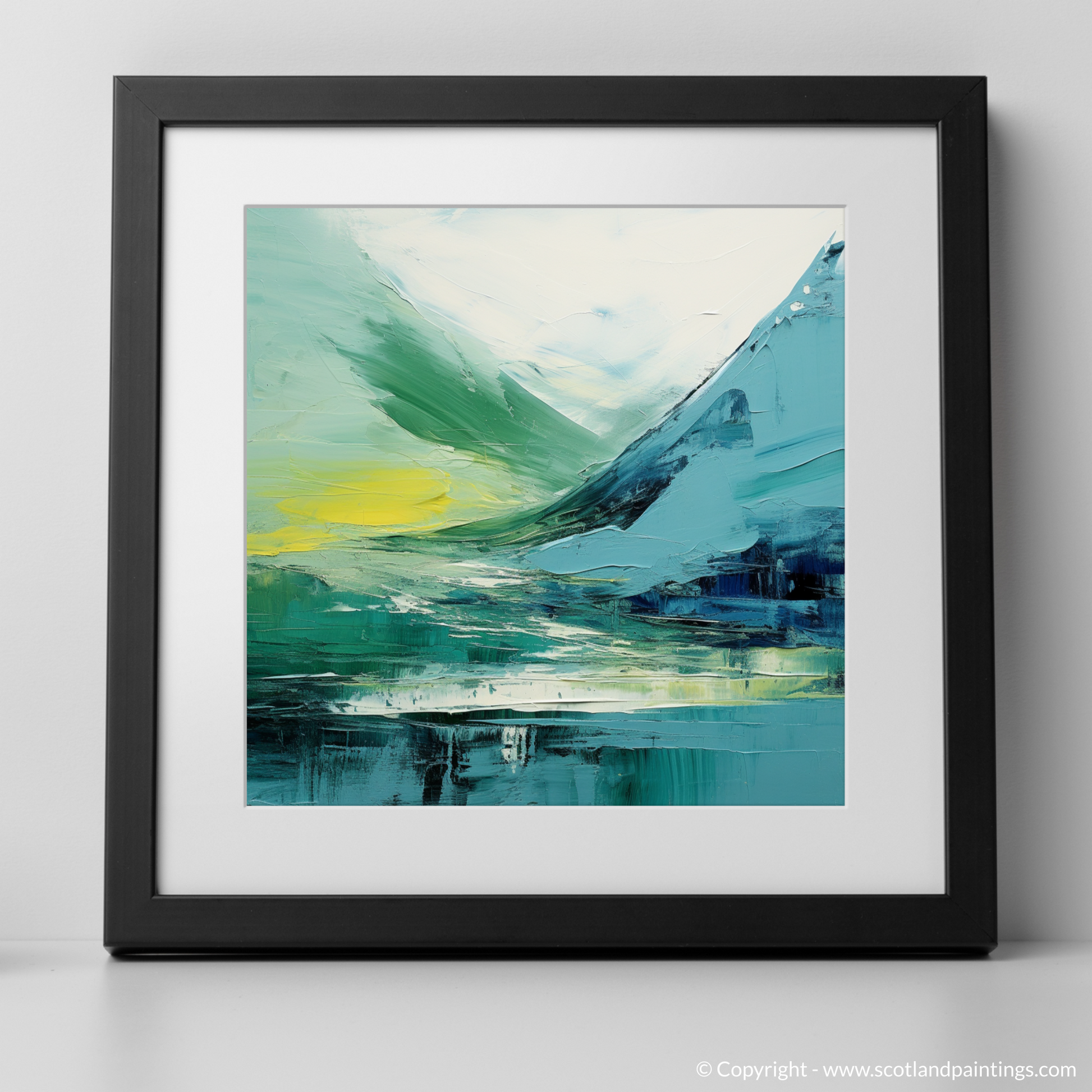 Immerse yourself in the evocative essence of Glencoe, captured in this captivating abstract print that masterfully interplays light and texture. As part of the esteemed 'Scottish Glens' collection, this piece transports viewers to the heart of Argyll and Bute through bold strokes and a harmonious palette.