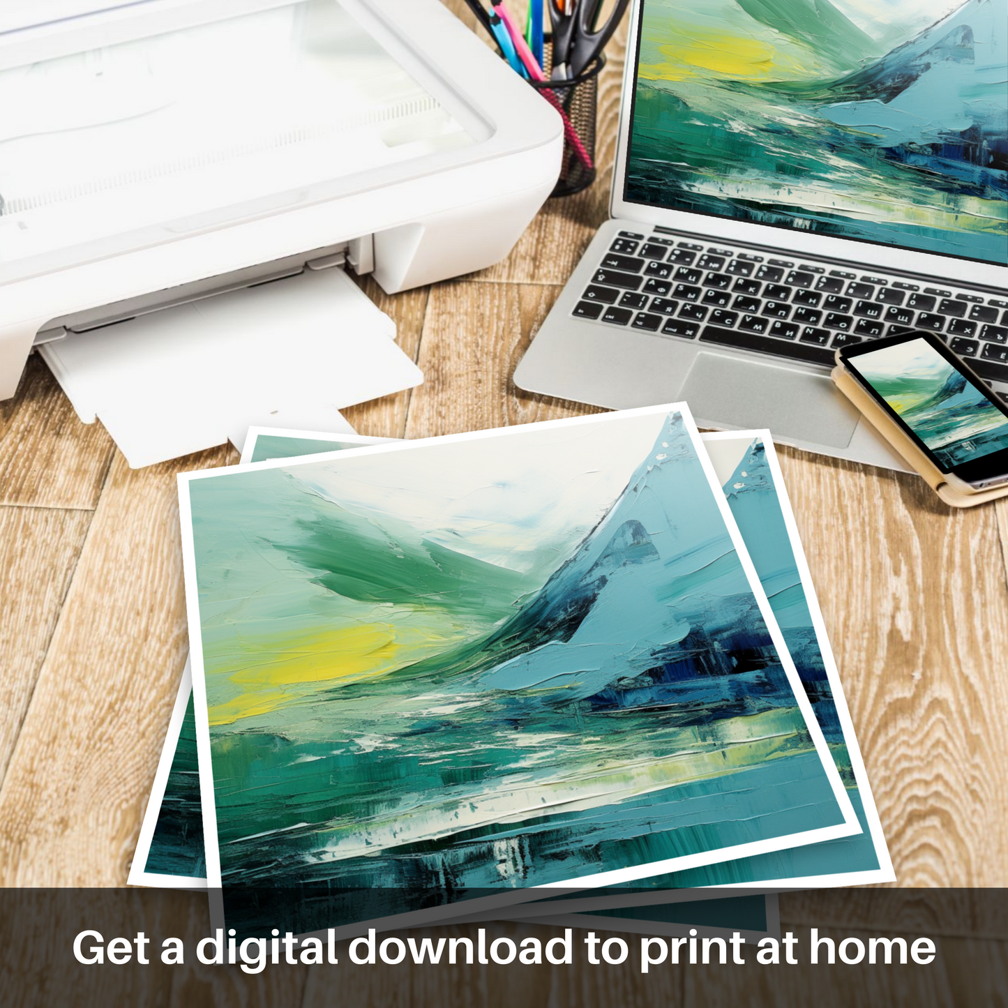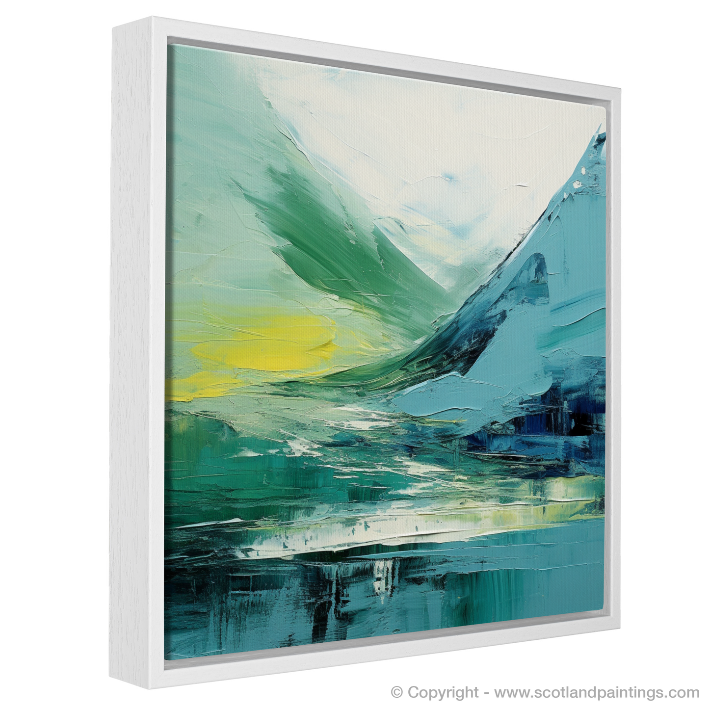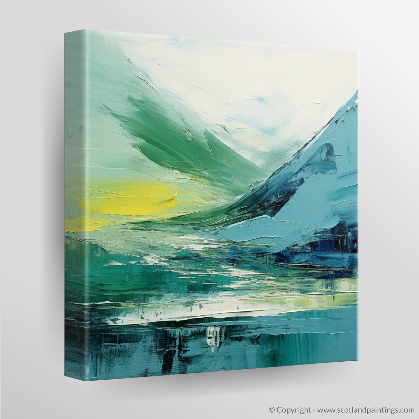 Immerse yourself in the evocative essence of Glencoe, captured in this captivating abstract print that masterfully interplays light and texture. As part of the esteemed 'Scottish Glens' collection, this piece transports viewers to the heart of Argyll and Bute through bold strokes and a harmonious palette.