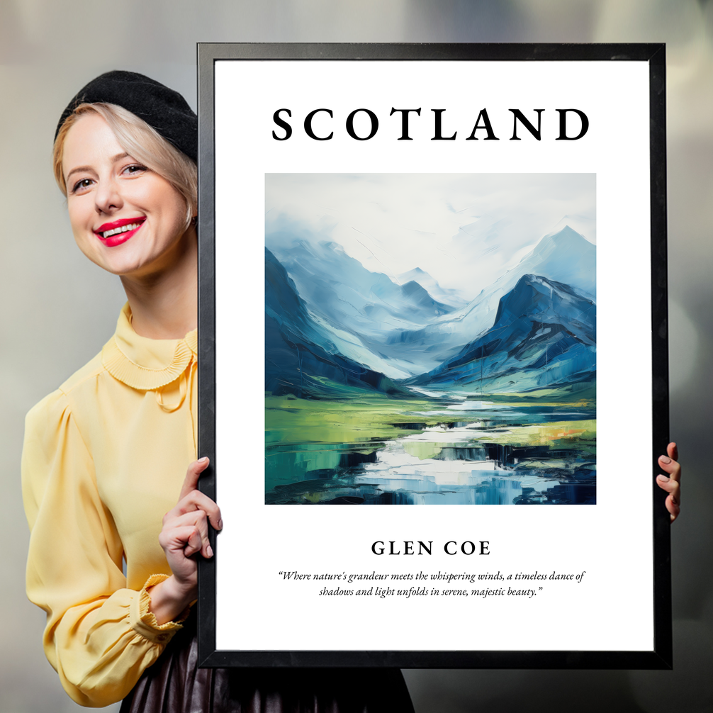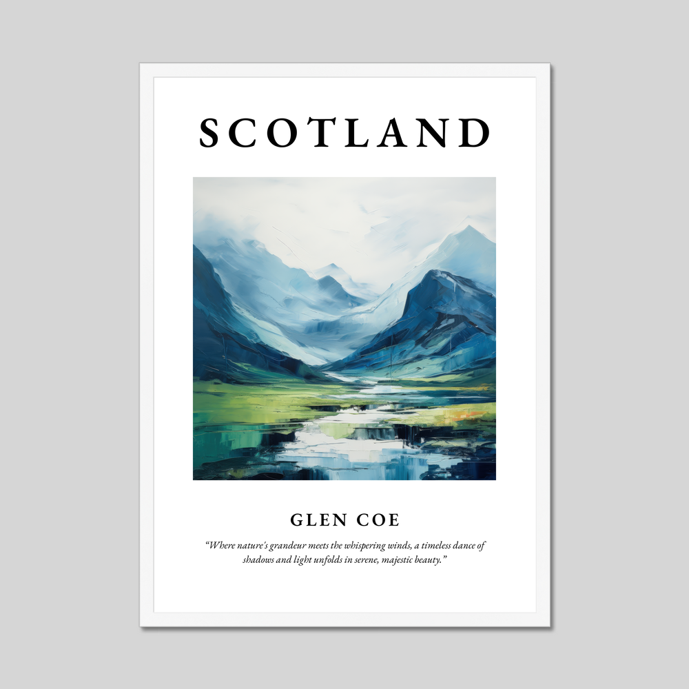 Whether you have a profound connection to Scotland or are simply drawn to the rugged, untouched beauty the Highlands offer, this poster print from our “Scottish Glens” collection is a remarkable piece. It serves as both a celebration of Scotland’s natural wonders and a reminder of the peaceful solitude found amidst the whispering winds and towering peaks of Glen Coe.