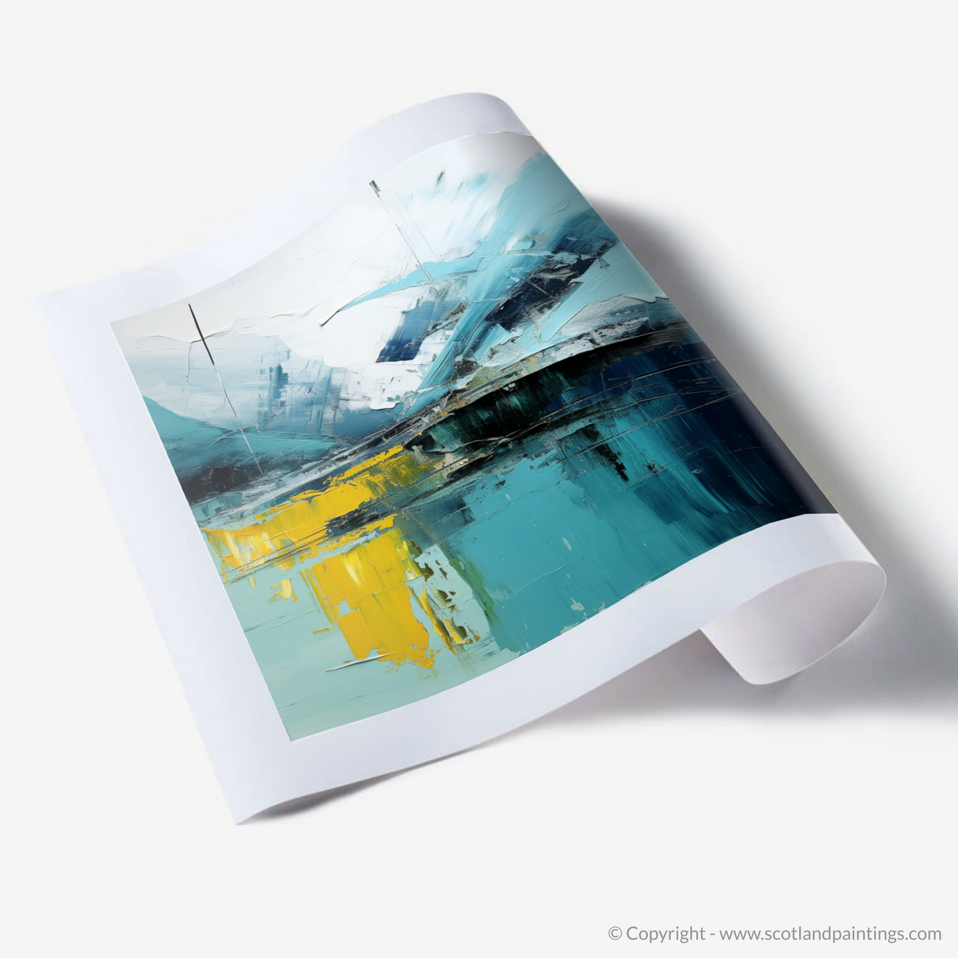Immerse yourself in the rugged beauty of the Scottish Highlands with this captivating abstract print, inspired by the majestic Glencoe in Argyll and Bute. This exquisite creation captivates the viewer with its rich texture and dynamic interplay of colour and form.