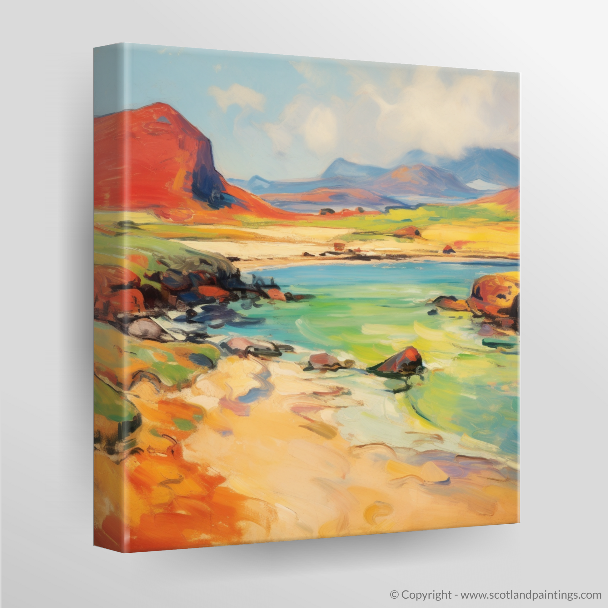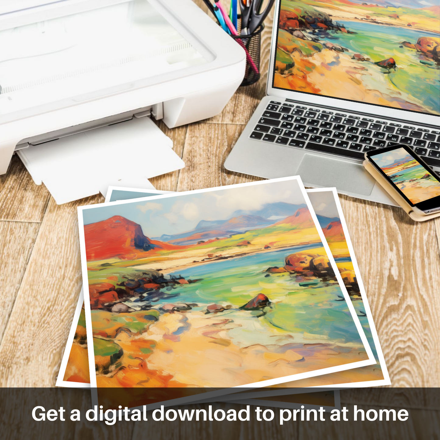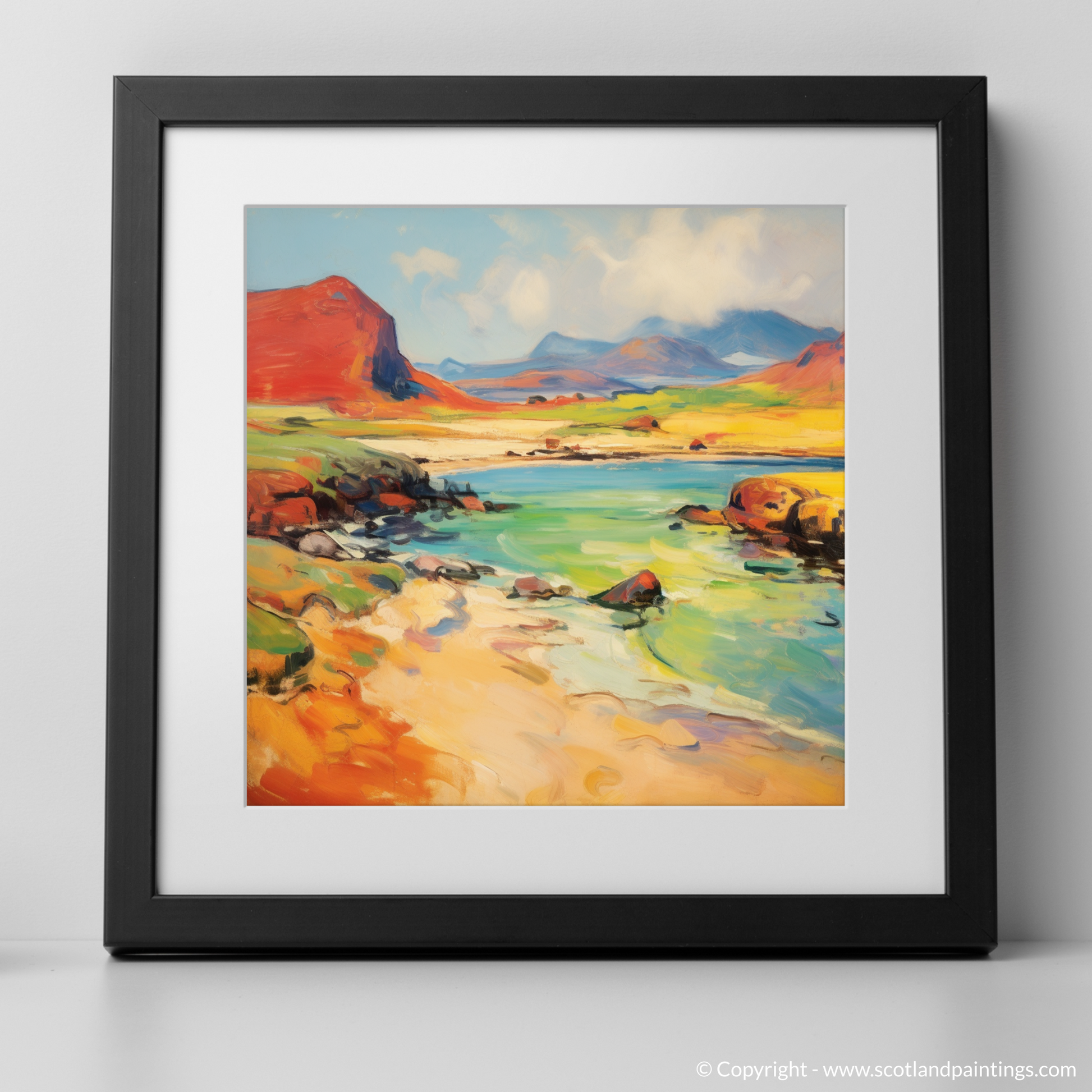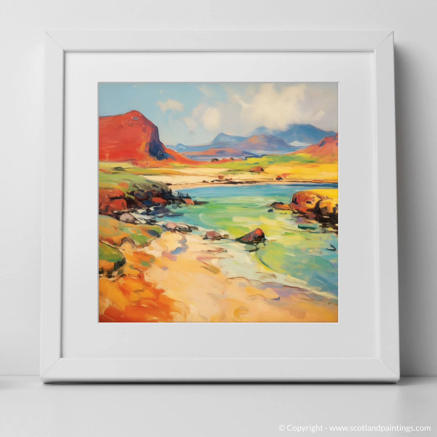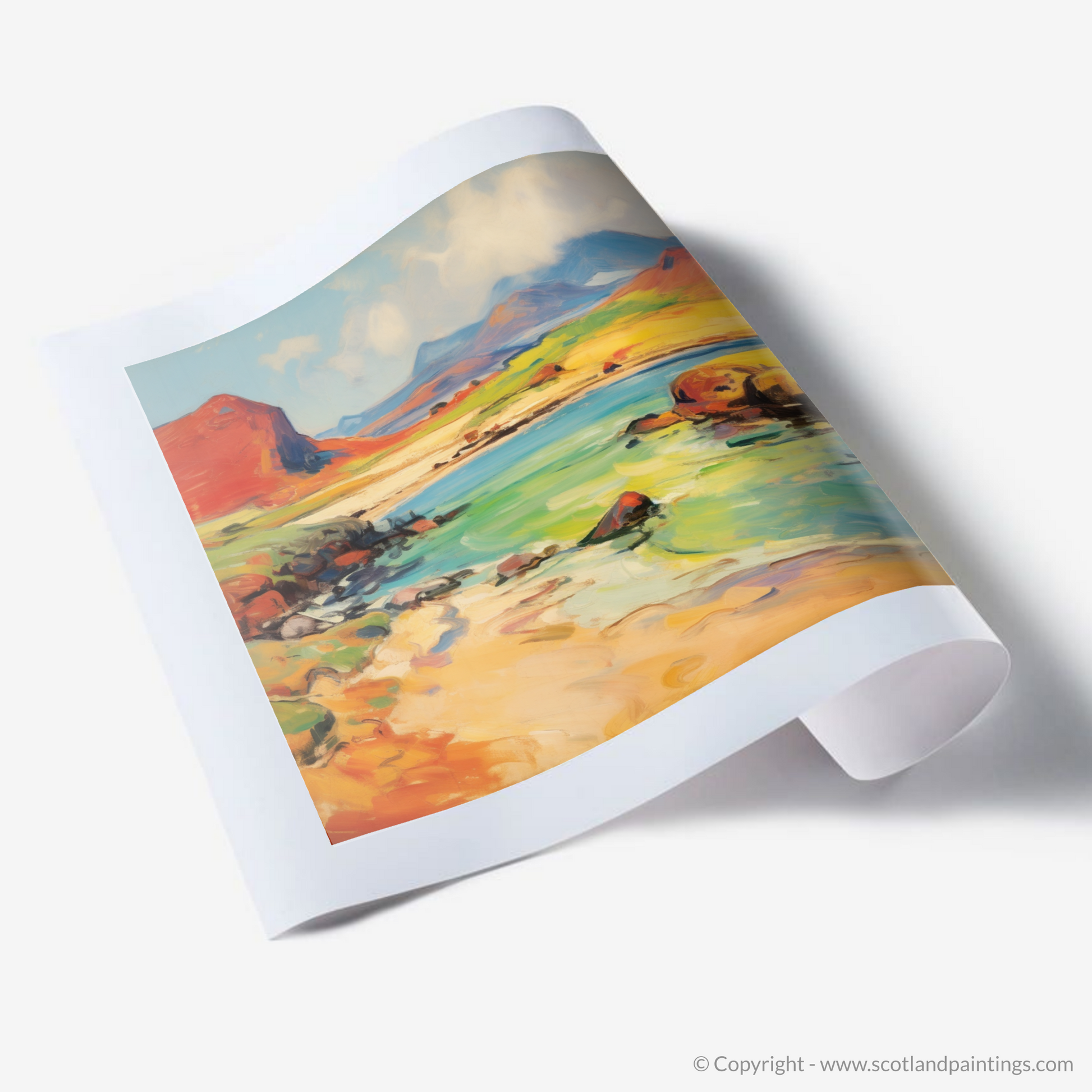 Immerse yourself in the vibrant embrace of golden hour at Mellon Udrigle Beach, masterfully captured in this illustrious print that celebrates the wild and emotive spirit of the Scottish coast. The energetic brushstrokes and bold, expressive colours are reminiscent of Fauvist masters, conveying a vivid landscape alive with the untamed essence of Scotland's natural beauty.