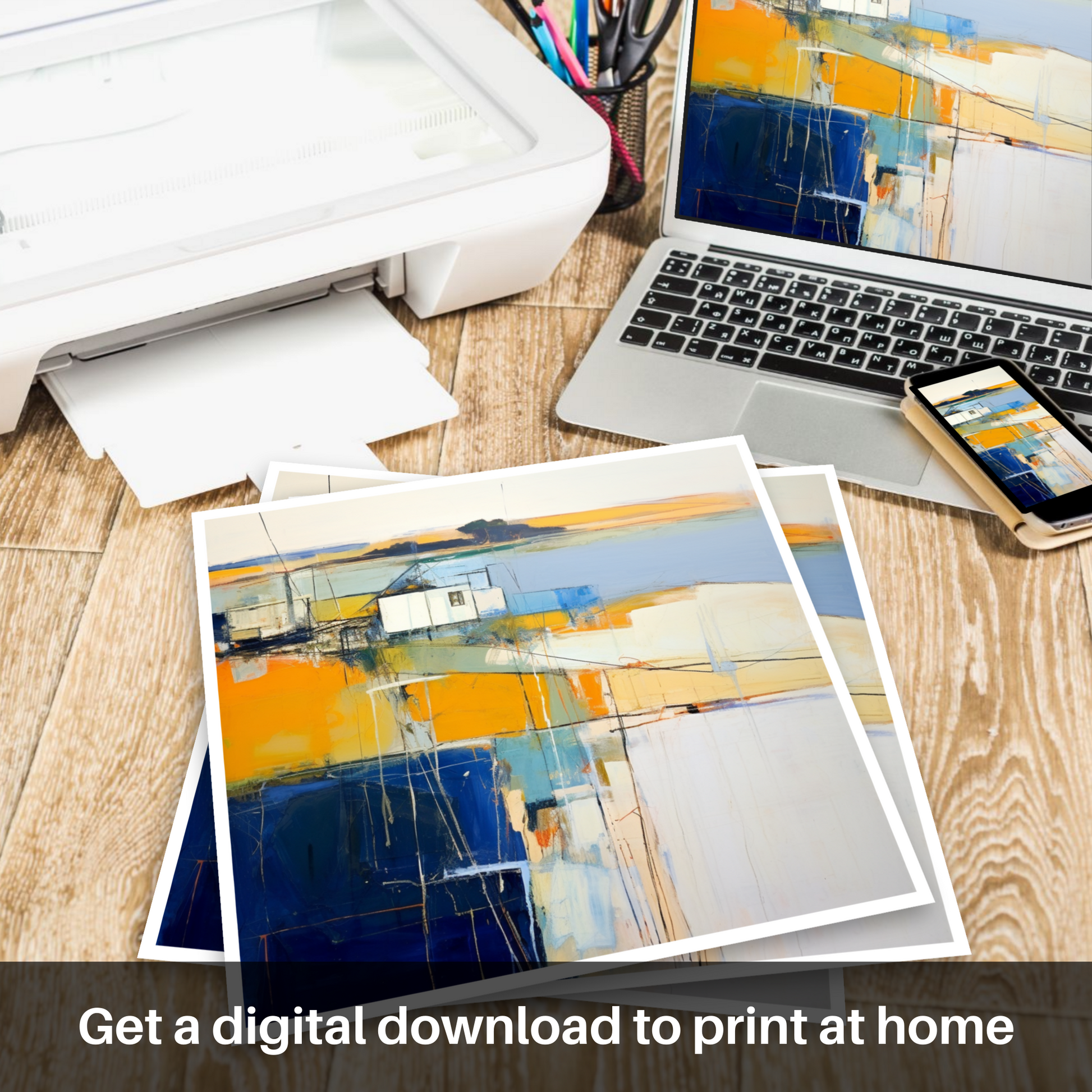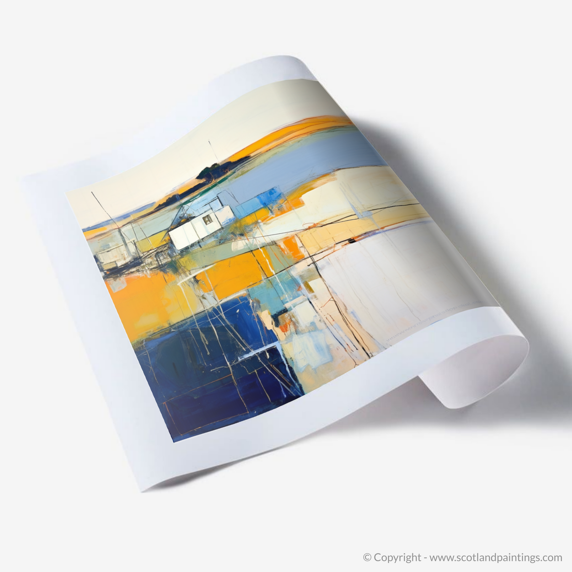 Immerse yourself in the warm, luminous embrace of golden hour at Whitehills Harbour, masterfully translated into a visual symphony through the language of Abstract Impressionism. This evocative print brings the essence of a serene Scottish harbour to life, capturing the interplay of light and reflection as only the boldest hues of the setting sun can inspire.