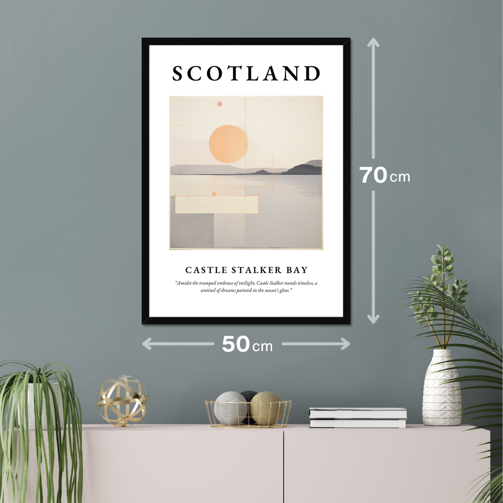 Embrace the serene elegance of Scotland with this captivating 50cm x 70cm framed poster print from our exclusive “Scottish Coves” collection. This stunning artwork encapsulates the timeless beauty of Castle Stalker Bay, presented in a minimalist style that effortlessly combines simplicity with profound depth. Available in black, white, or a natural wood-effect frame, this piece is designed to complement any decor while transporting you to the tranquil shores of Scotland.