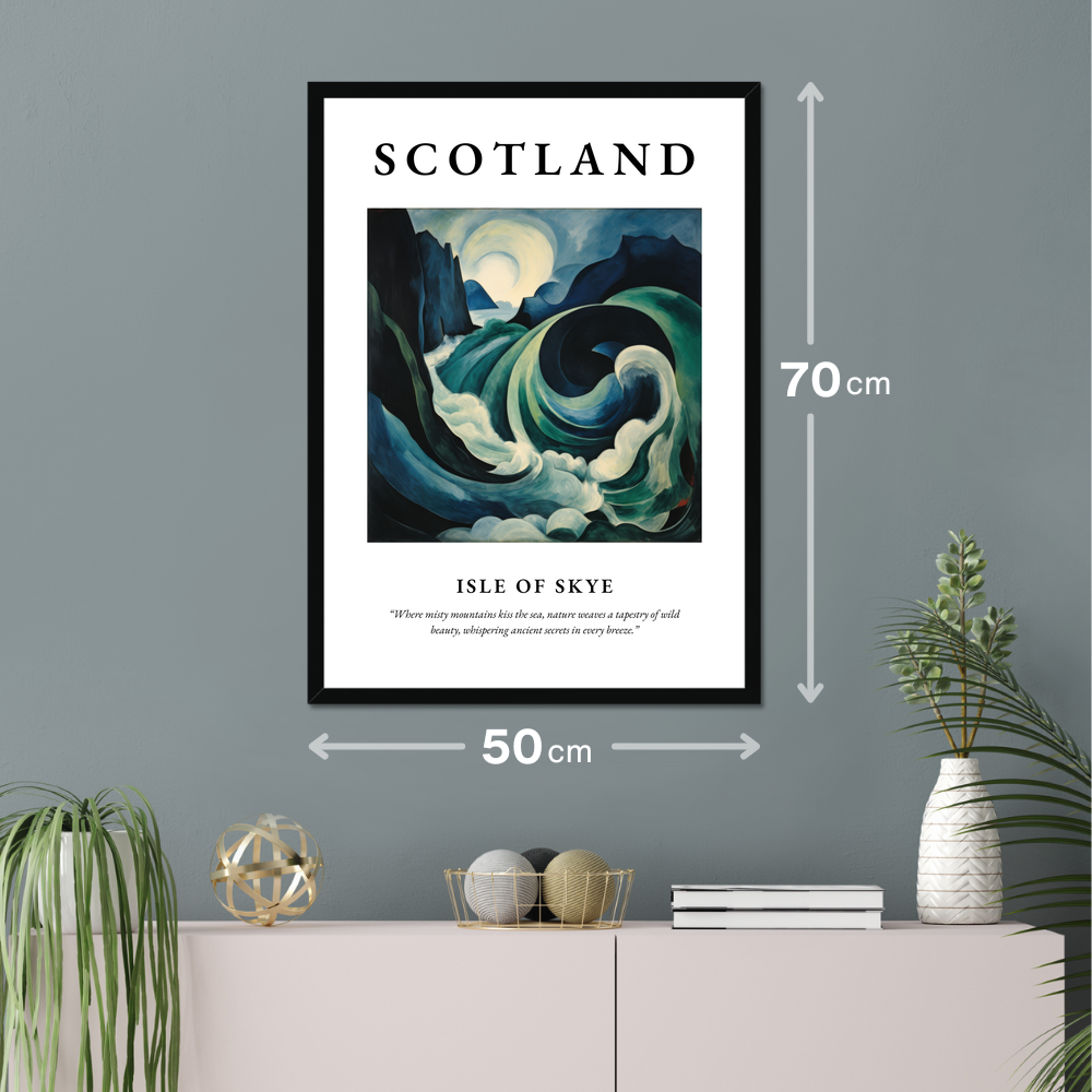 Immerse yourself in the mystical allure of Scotland with our stunning 50cm x 70cm framed poster print, a perfect tribute to the Isle of Skye. Ideal for any art lover or those with a deep connection to this enchanting place, this captivating piece is part of our exclusive “Scottish Islands” collection. Choose from a sleek black, classic white, or natural wood-effect frame to complement any decor, enhancing your space with elegance and charm.