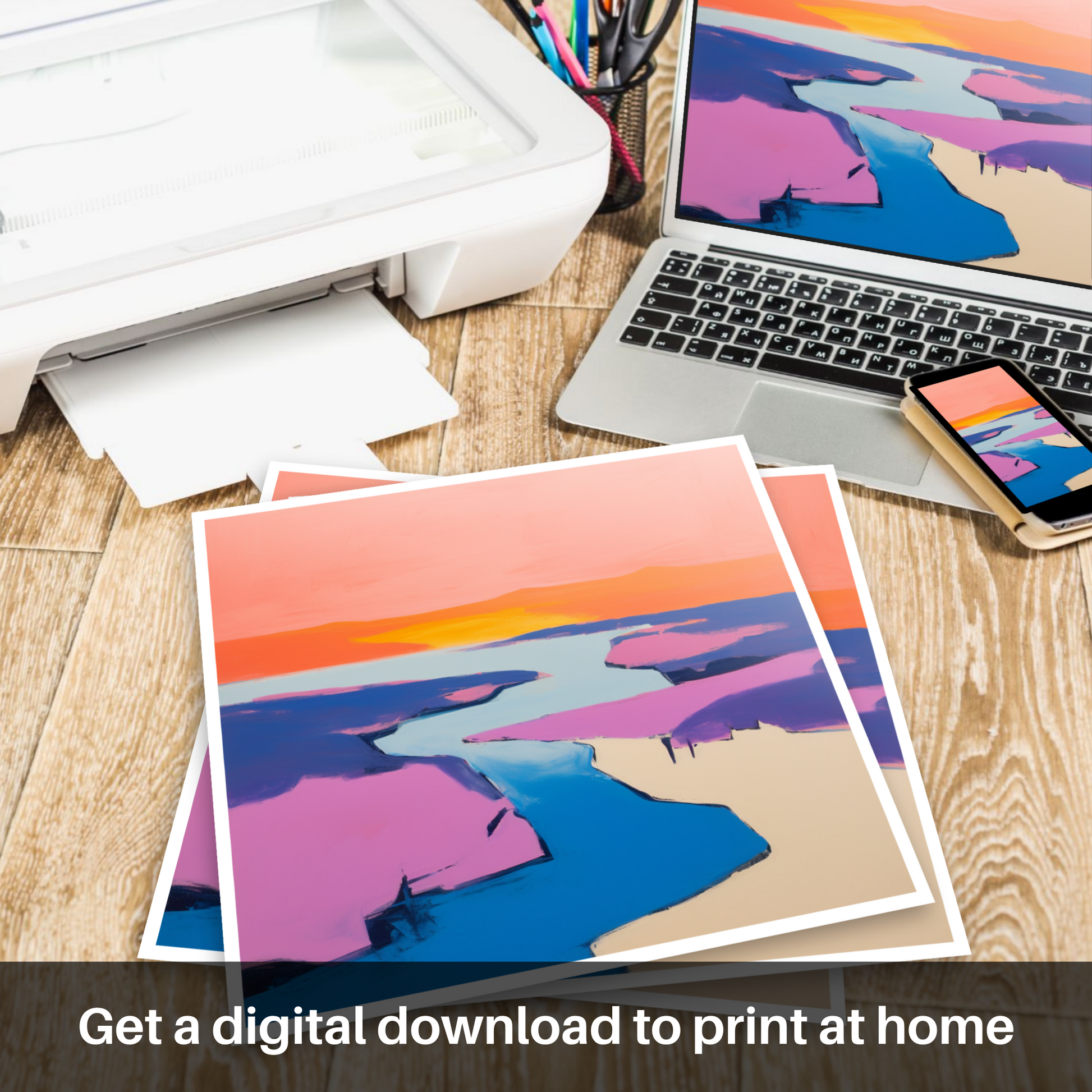 This arresting composition, a part of the 'Scottish Coves' collection, not only serves as a visual escape to the breath-taking vistas of Scotland but also as a testament to the compelling beauty found in the abstract interpretation of nature's wonders. Whether gracing a contemplative space or a vibrant, modern environment, this print invites contemplation and conversation, and is sure to be a treasured addition to any collection.