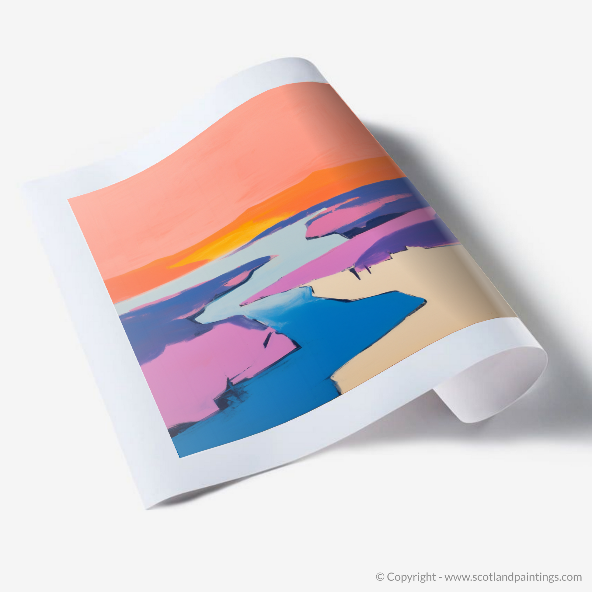 Immerse yourself in the serene beauty of Ardanaiseig Bay, as this enchanting print captures the elusive charm of a Scottish cove at the mesmerizing golden hour. The artwork, brimming with abstract elegance, evokes the vibrant interplay of light and colour that dances across the water and sky during this magical time of day.