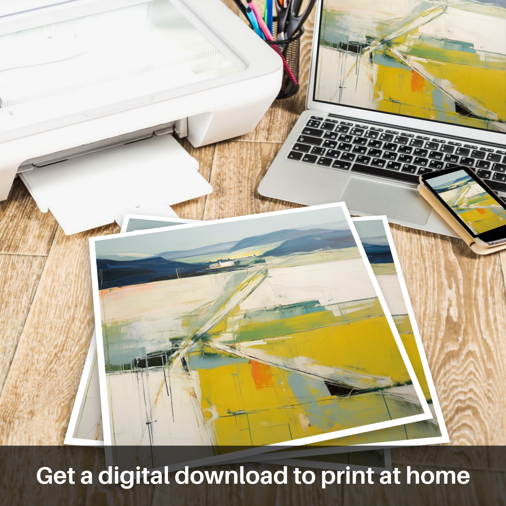 Immerse yourself in the vivid and expressive allure of the Scottish Highlands as encapsulated in this captivating abstract impressionist print. Inspired by the rugged beauty of Cairn Gorm, this piece showcases an intricate fusion of colours and forms that evoke the sweeping landscapes and open skies of this natural haven.