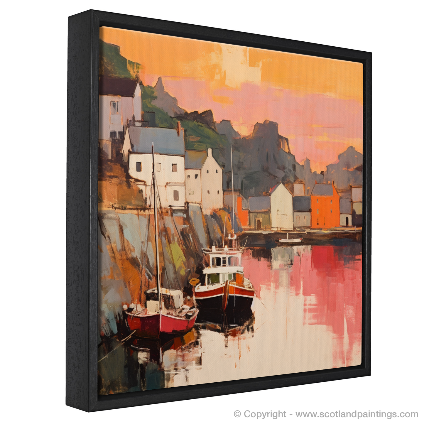 This piece is a part of the 'Scottish Harbours' collection, which celebrates the unique beauty and character of Scotland's coastal treasures. Perfect for those who adore maritime scenes and abstract interpretations, this print is sure to evoke the allure of Scotland's picturesque coastlines and the serene beauty of its sunsets.